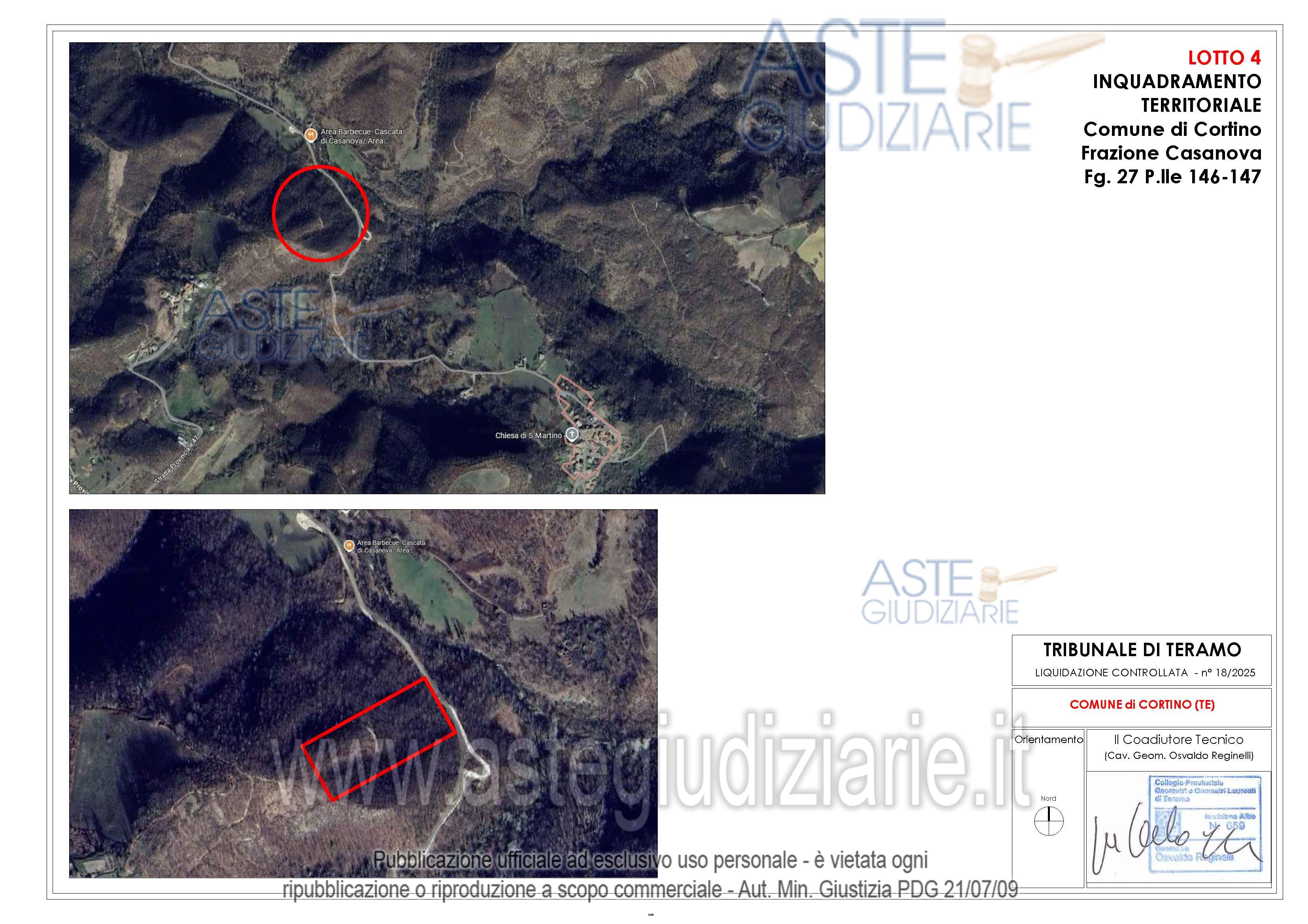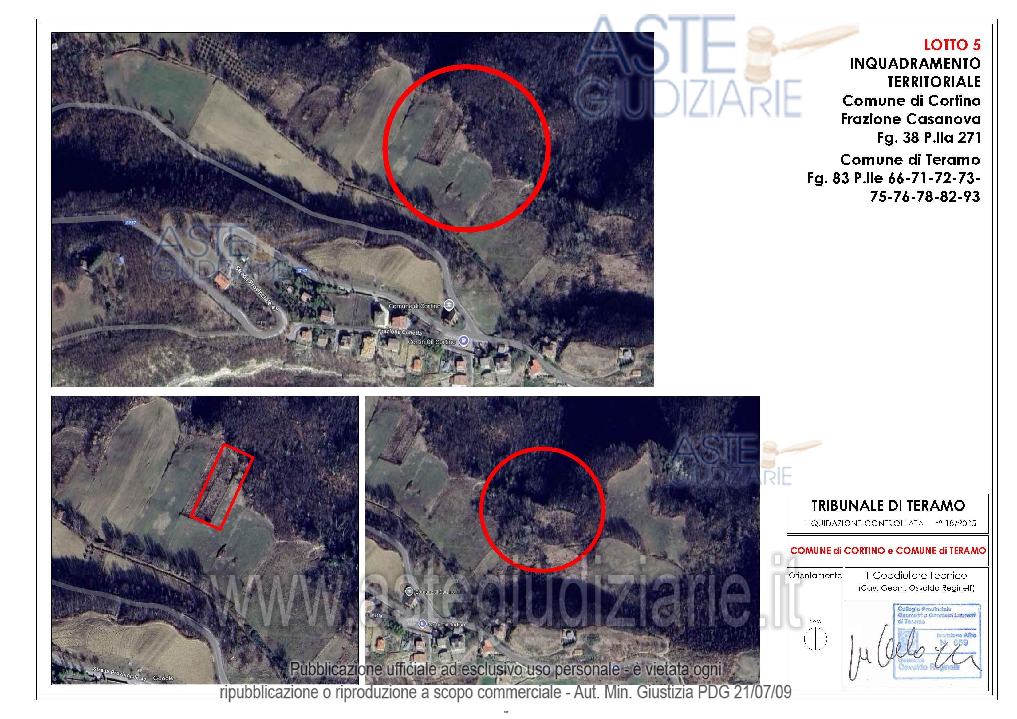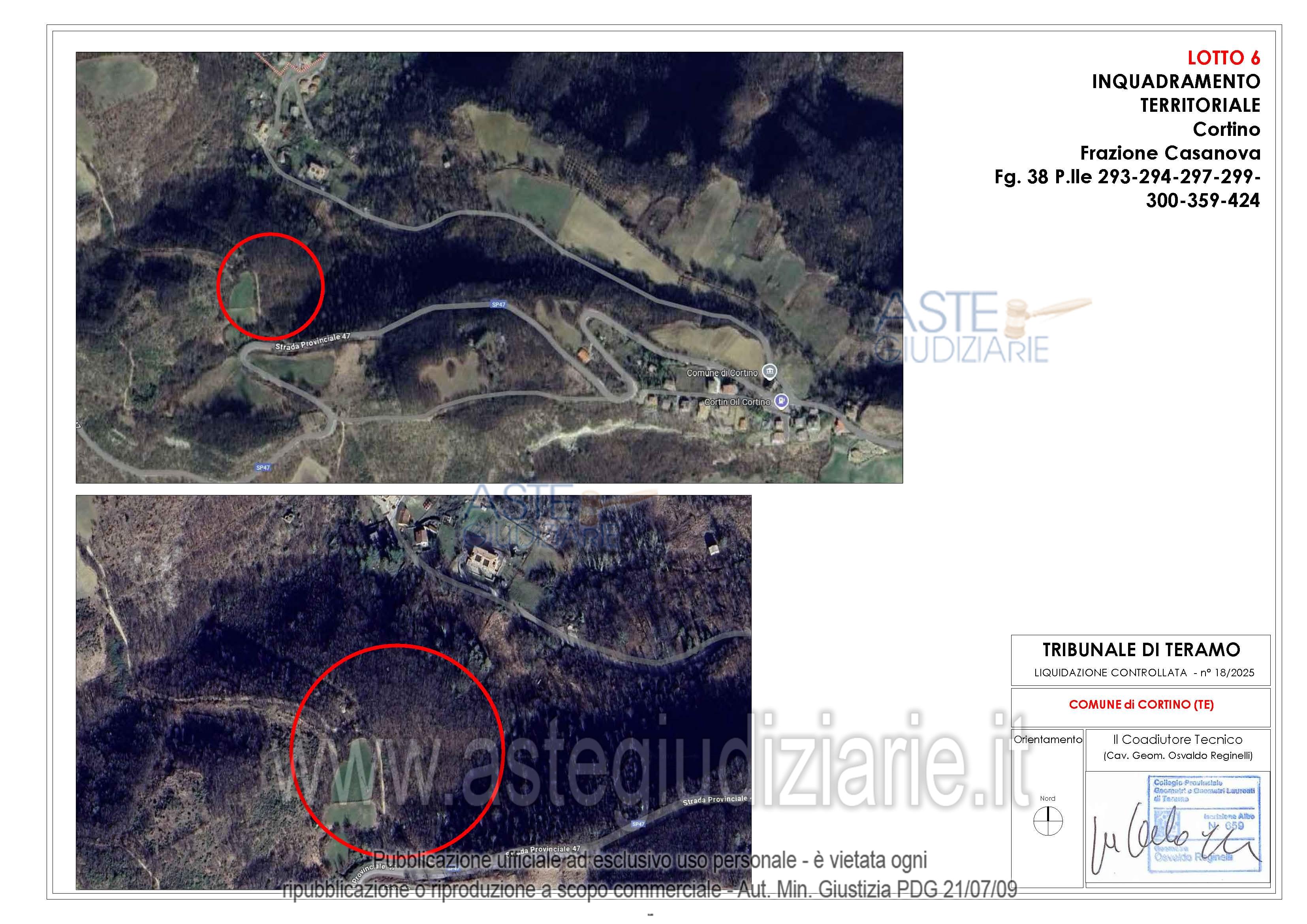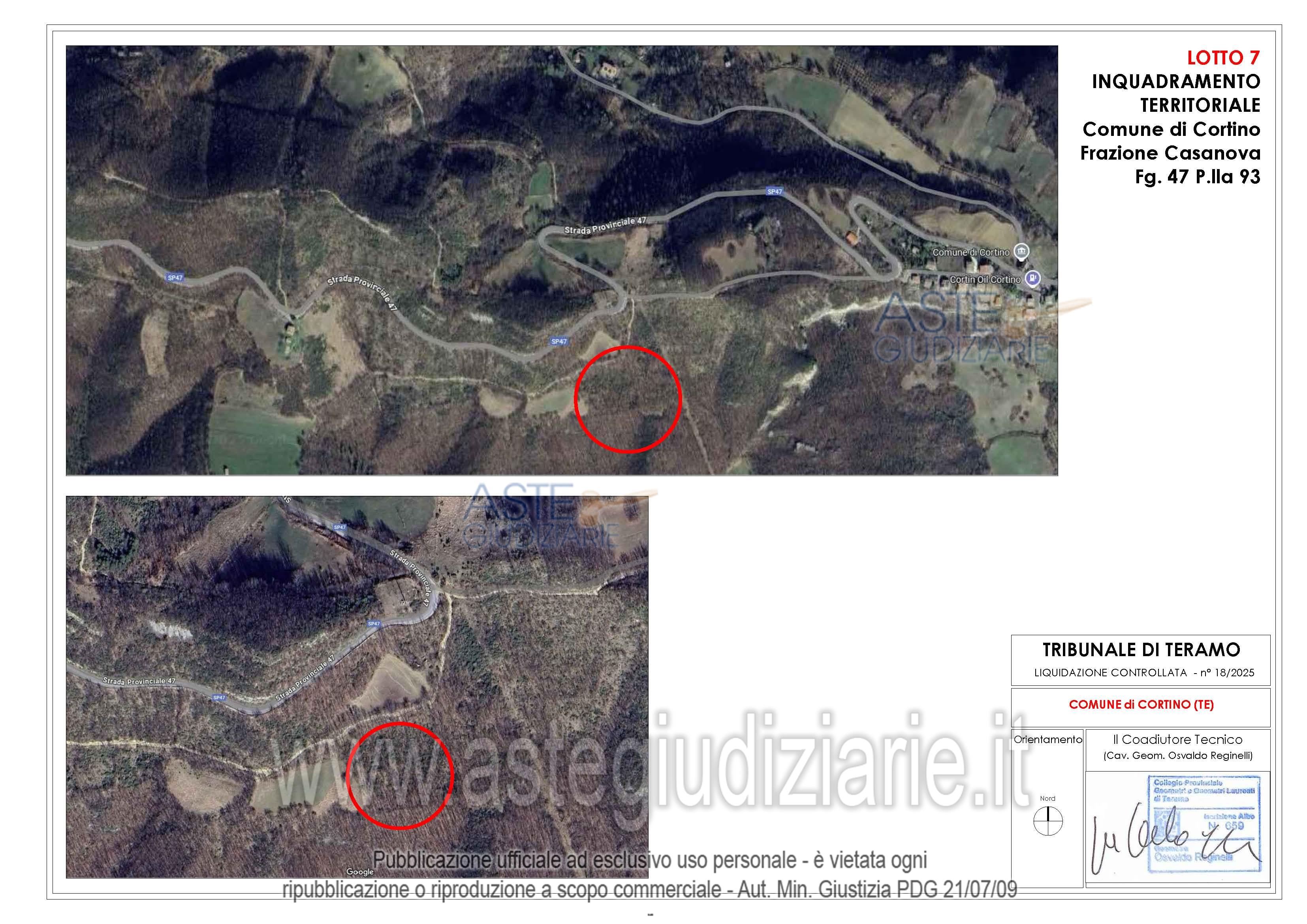 Vendita all'asta Senza incanto, con gara telematica asincrona - LOTTO 02: Appezzamenti di terreno di forma irregolare ubicati in parte in Frazione Casanova nel Comune di Cortino (TE) e in parte nel Comune di Teramo. Prezzo base € 9.730,00 (offerta minima € 7.297,50). Data inizio operazioni di vendita: 21/05/2026 ore 15:00. Giudice Dott. Ninetta D'ignazio. Rif. Tribunale di Teramo - Liquidazione controllata(cci) n. 18/2025
