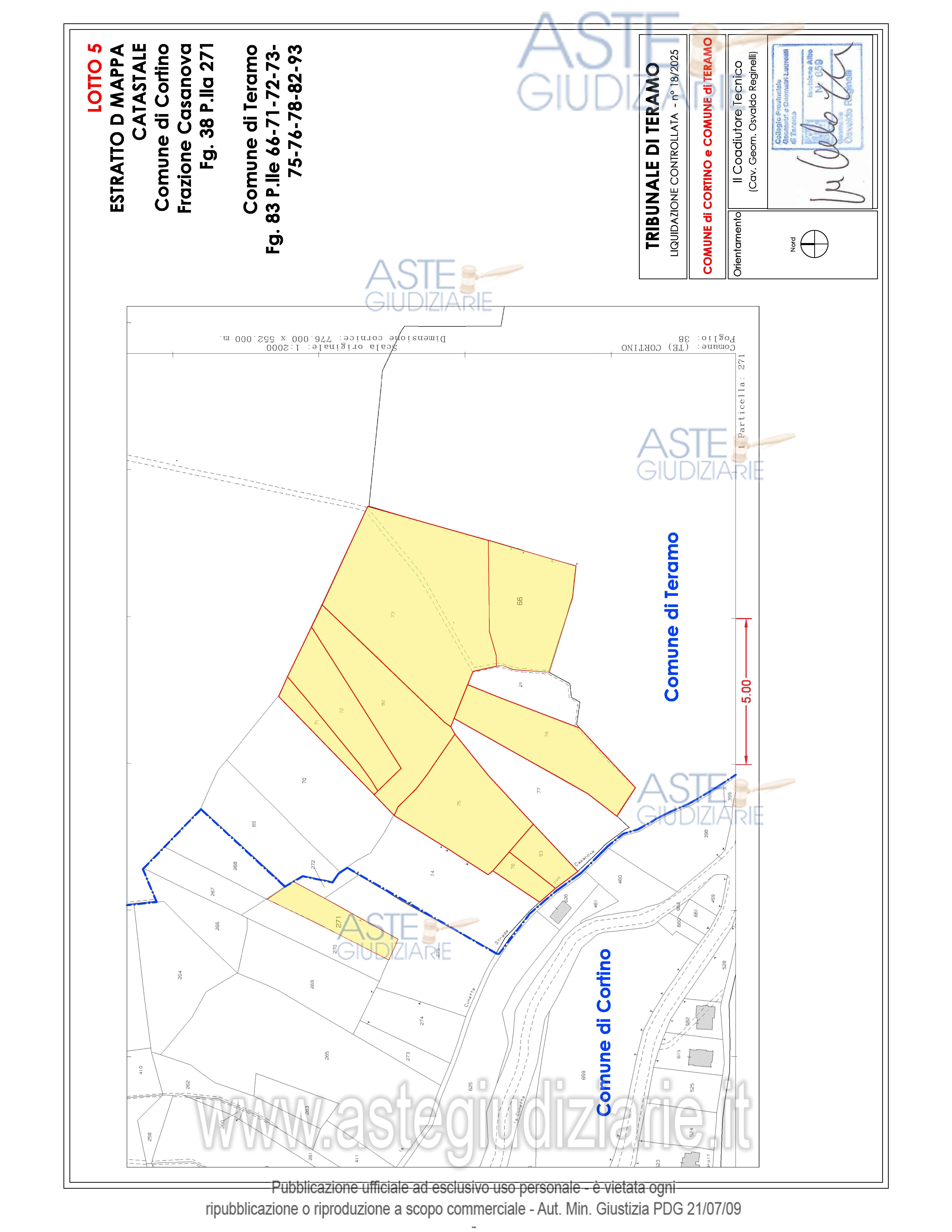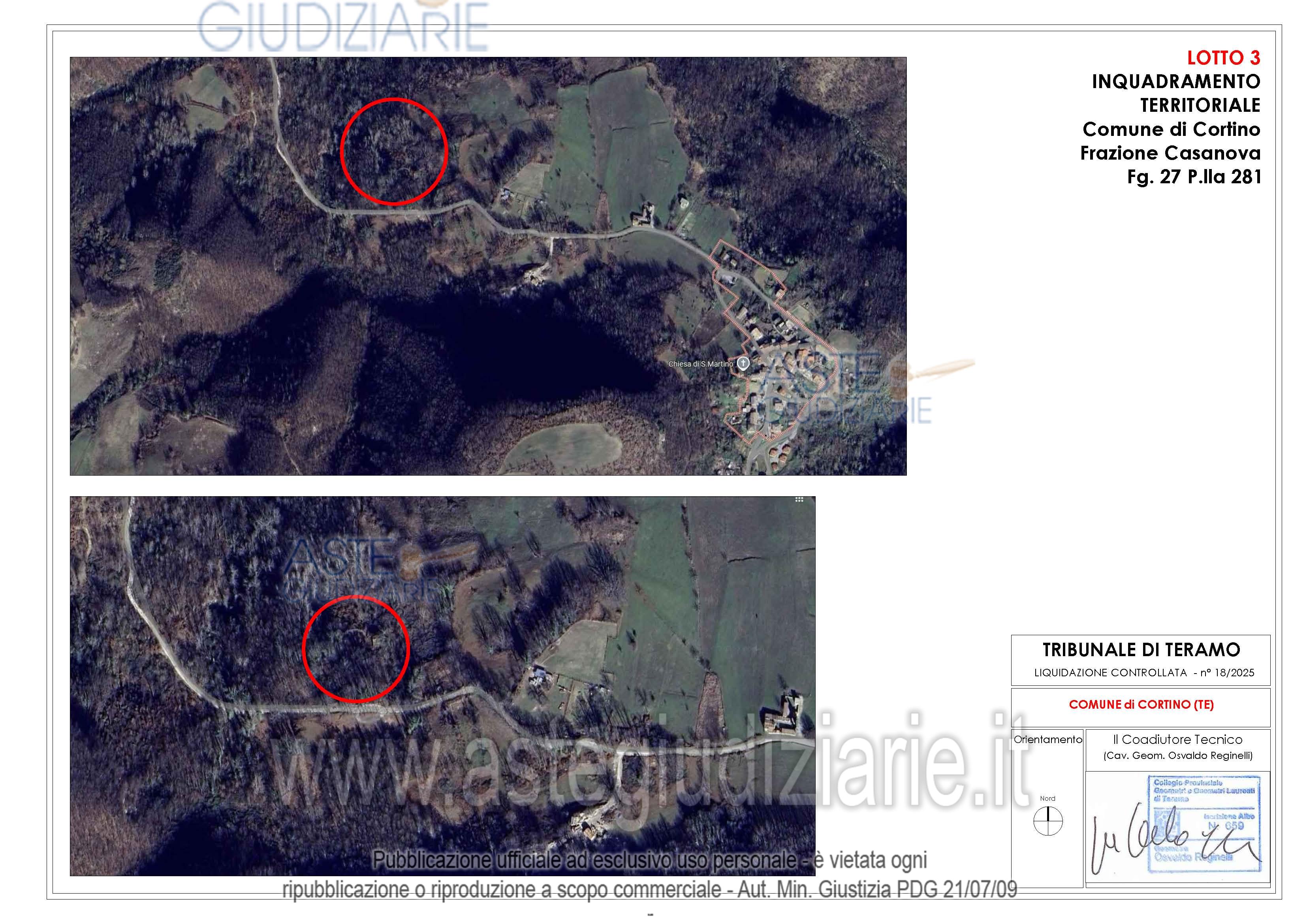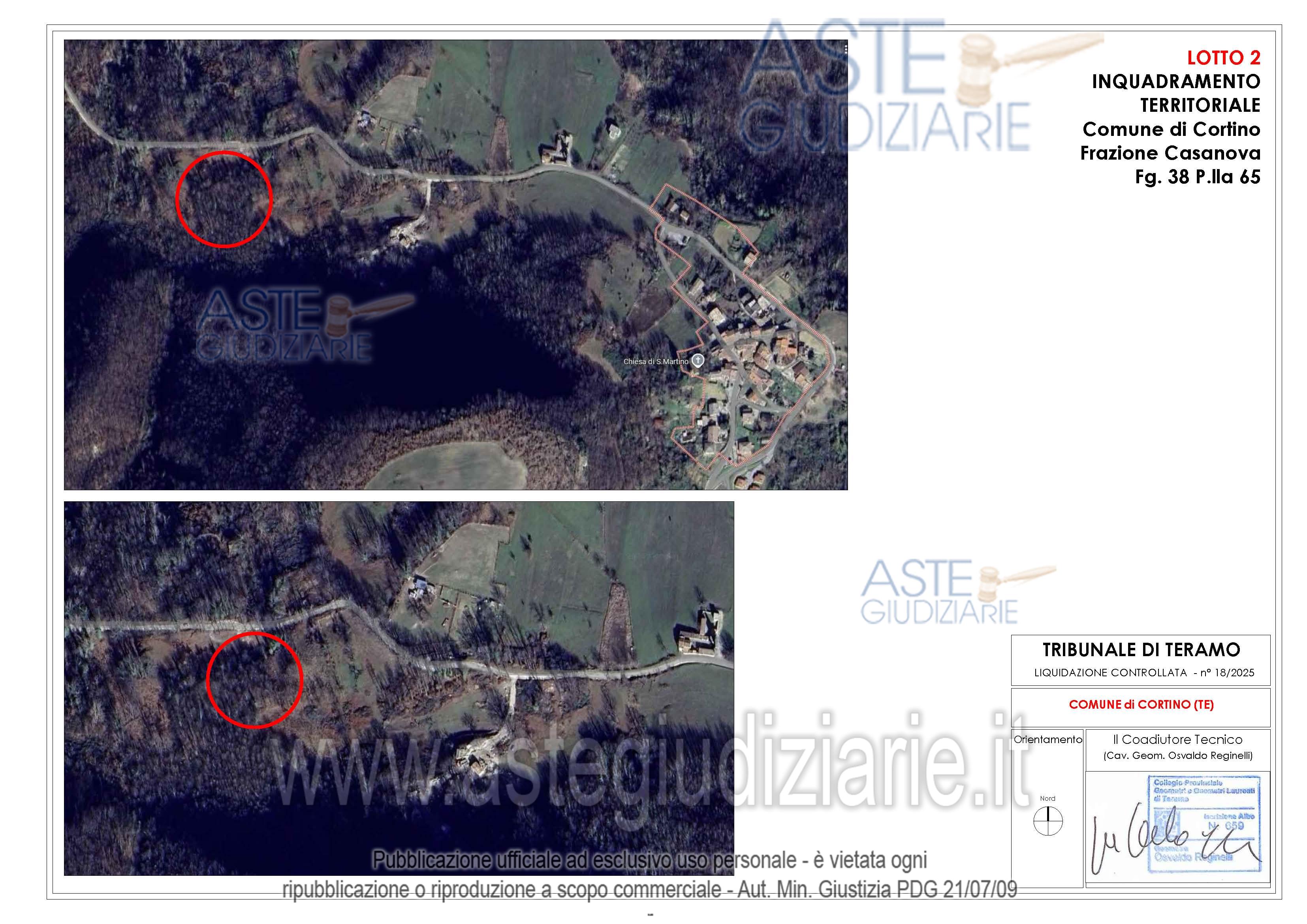 Vendita all'asta Senza incanto, con gara telematica asincrona - LOTTO 02: Appezzamenti di terreno di forma irregolare ubicati in parte in Frazione Casanova nel Comune di Cortino (TE) e in parte nel Comune di Teramo. Prezzo base € 9.730,00 (offerta minima € 7.297,50). Data inizio operazioni di vendita: 21/05/2026 ore 15:00. Giudice Dott. Ninetta D'ignazio. Rif. Tribunale di Teramo - Liquidazione controllata(cci) n. 18/2025