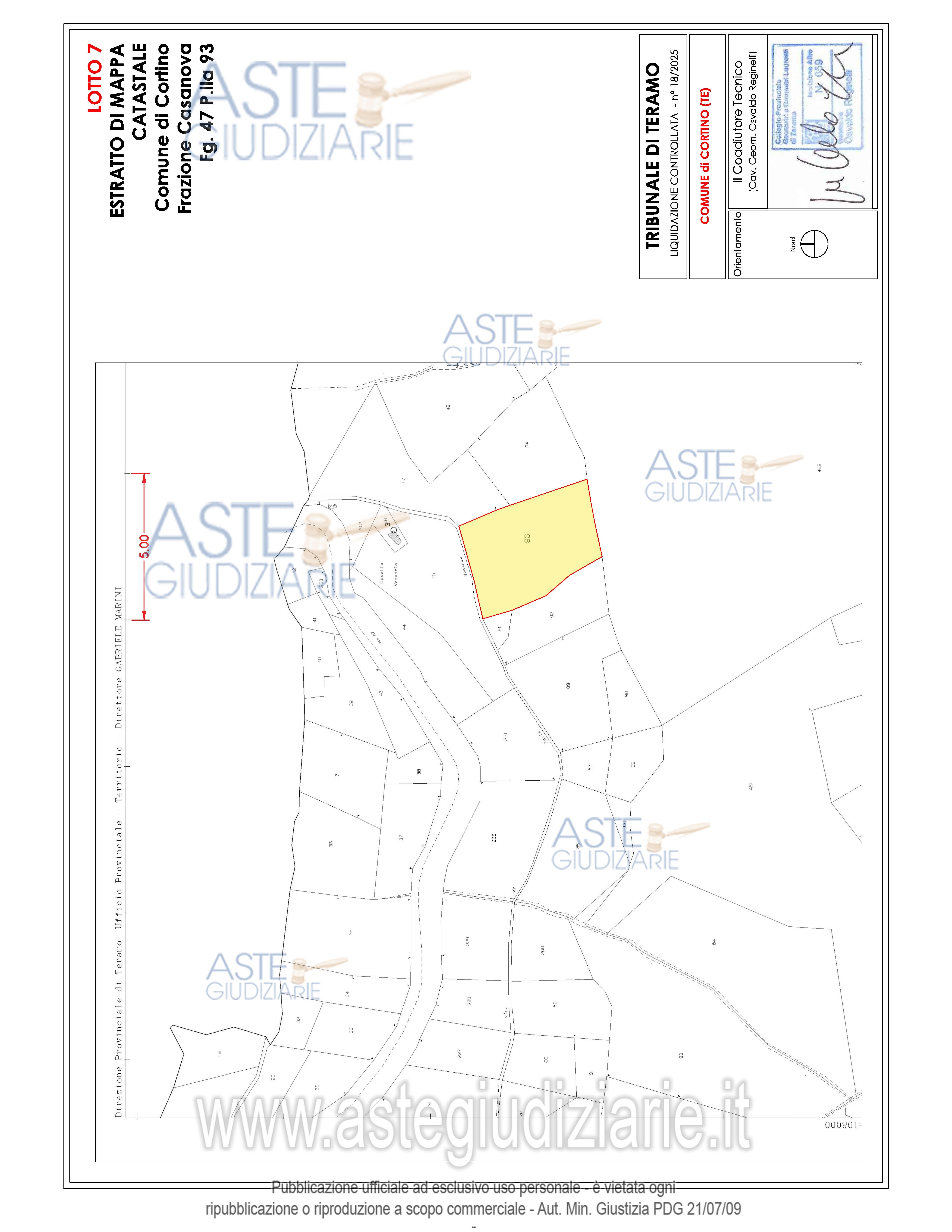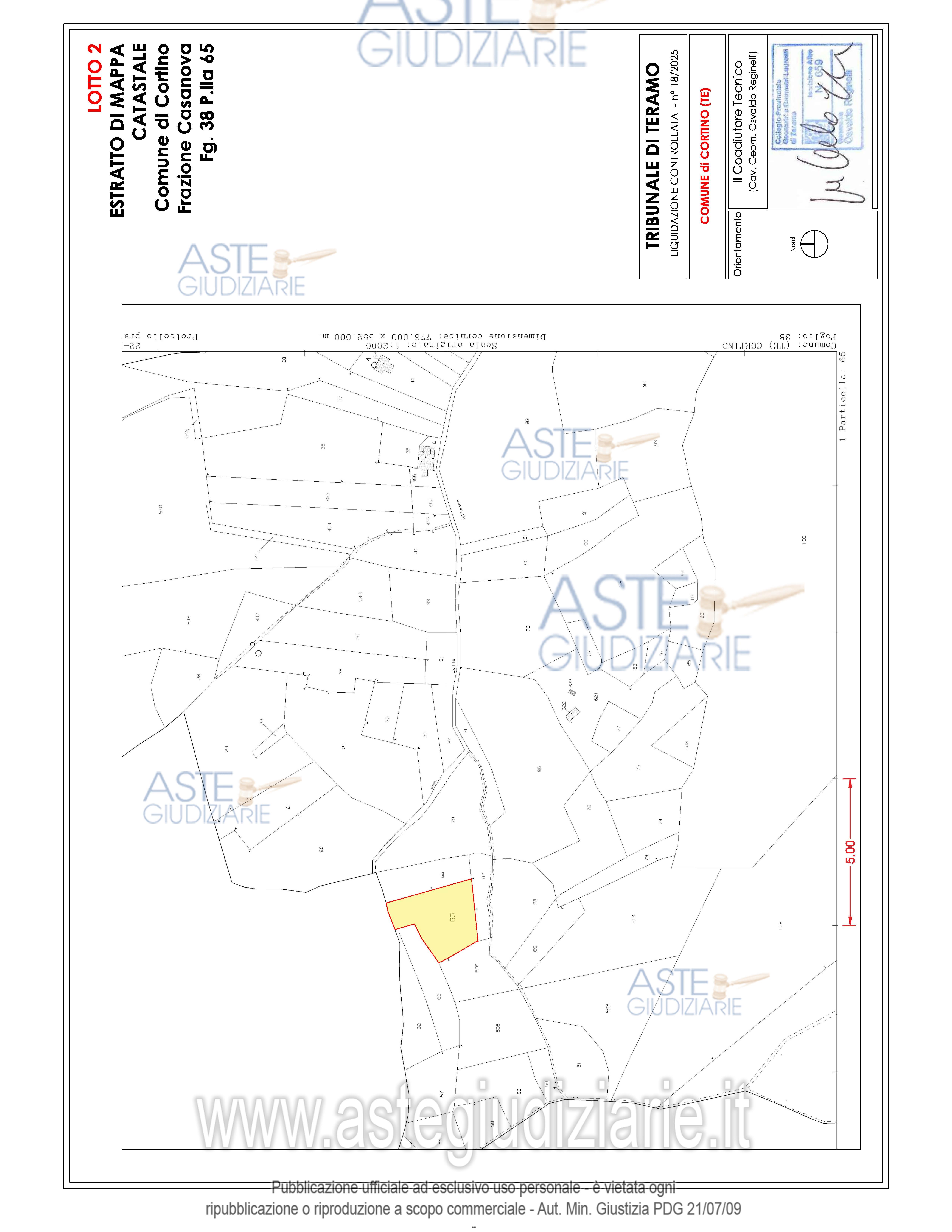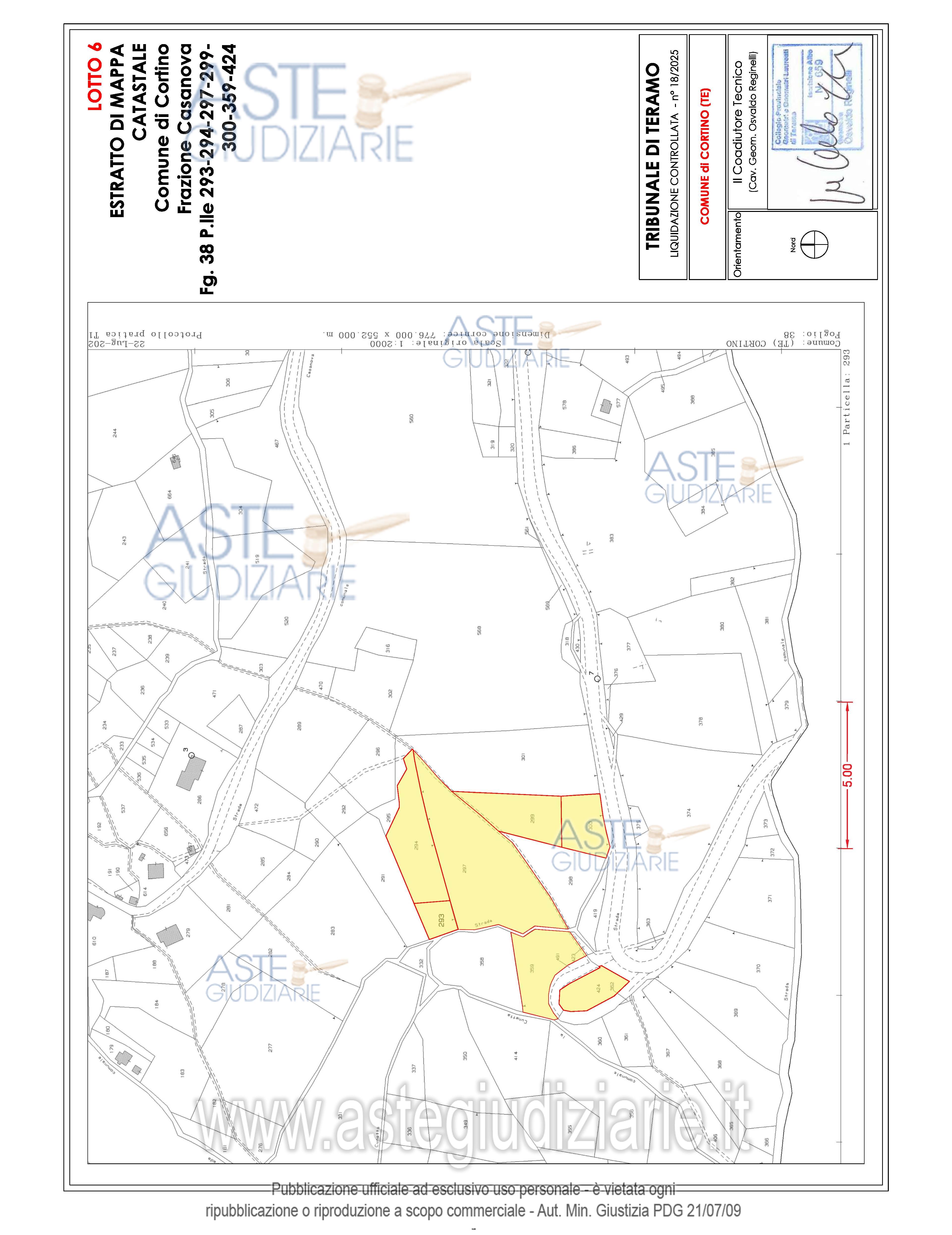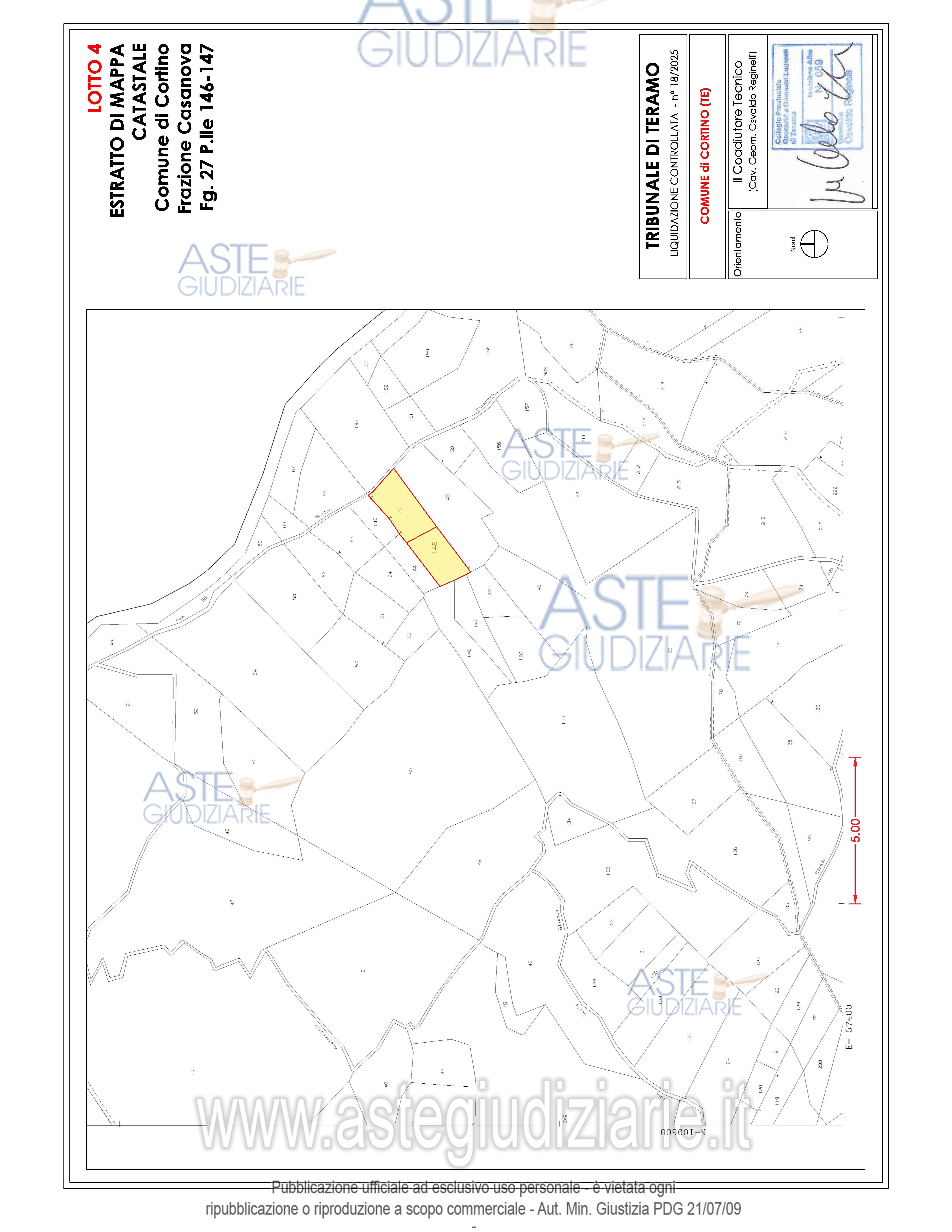 Vendita all'asta Senza incanto, con gara telematica asincrona - LOTTO 02: Appezzamenti di terreno di forma irregolare ubicati in parte in Frazione Casanova nel Comune di Cortino (TE) e in parte nel Comune di Teramo. Prezzo base € 9.730,00 (offerta minima € 7.297,50). Data inizio operazioni di vendita: 21/05/2026 ore 15:00. Giudice Dott. Ninetta D'ignazio. Rif. Tribunale di Teramo - Liquidazione controllata(cci) n. 18/2025