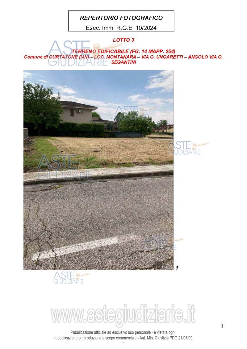 Vendita all'asta Senza incanto, con gara telematica sincrona mista - LOTTO 3: Piena proprietà di terreno edificabile a destinazione residenziale. Prezzo base € 65.504,00 (offerta minima € 49.128,00). Data vendita 25/03/2026 ore 15:00. Giudice Francesca Arrigoni. Professionista delegato alla vendita Not. Gabriele Mercanti - Email "gmercanti@notariato.it". Custode Giudiziario Sovemo Srl Istituto Vendite Giudiziarie Di Mantova - Email "immobiliaremantova@sovemo.com"; Tel. 0376220694. Rif. Tribunale di Mantova - Espropriazione immobiliare (cartabia) n. 10/2024
