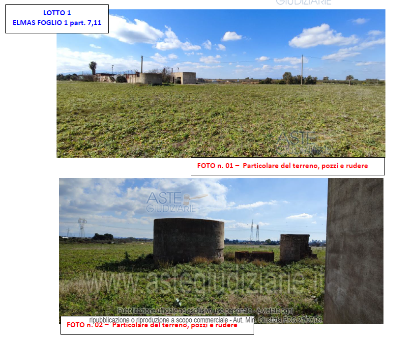 Vendita in attesa dell'emissione del nuovo bando d'asta. LOTTO 1: Terreno attualmente ad uso agricolo, risulta inserito nel PUC in zona urbanistica per insediamenti produttivi commerciali, artigianali e industriali. identificato al catasto Terreni - Fg. 1, Part. 7 e 11.Il terreno confina a NORD con strada comunale via Orso Maria Corbino -- EST con particella 1111 (stessa proprietà), -- SUD con particelle: 72 (stessa proprietà), 11 (stessa proprietà), 836 (proprietà: C. S.N.C.) -- OVEST con particella 1 (proprietà: C. S.N.C.). Ultimo prezzo base € 220.320,00 (offerta minima € 165.240,00). Giudice Valentina Frongia. Professionista delegato alla vendita Dott. Nicola Marcello. Custode Giudiziario Ivg Cagliari - Email "ivg.visiteimmobili@tiscali.it"; Cell. 0702299036. Rif. Tribunale di Cagliari - Esecuzione immobiliare post legge 80 n. 9/2009