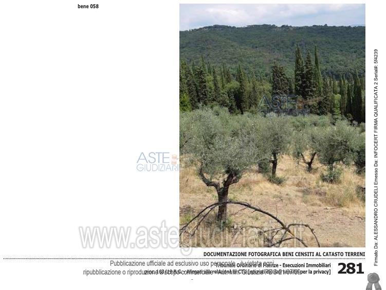 Vendita all'asta Senza incanto, con gara telematica sincrona - LOTTO 5: Piena proprietà di terreni agricoli (beni 10, 11, 12, 13, 35, 36, 37, 64, 69, 92, 93, 94, 100) per una superficie complessiva di 278.050 mq. Prezzo base € 130.000,00 (offerta minima € 97.500,00). Data vendita 31/03/2026 ore 15:30. Giudice Dott. Francesca Romana Bisegna. Professionista delegato alla vendita Dott. Stefano Berti - Email "stefano.berti@studioberti.fi.it". Custode Giudiziario Istituto Vendite Giudiziarie Di Firenze - Email "prenota.fi@isveg.it"; Tel. 0552340830. Rif. Tribunale di Firenze - Esecuzione immobiliare post legge 80 n. 163/2019