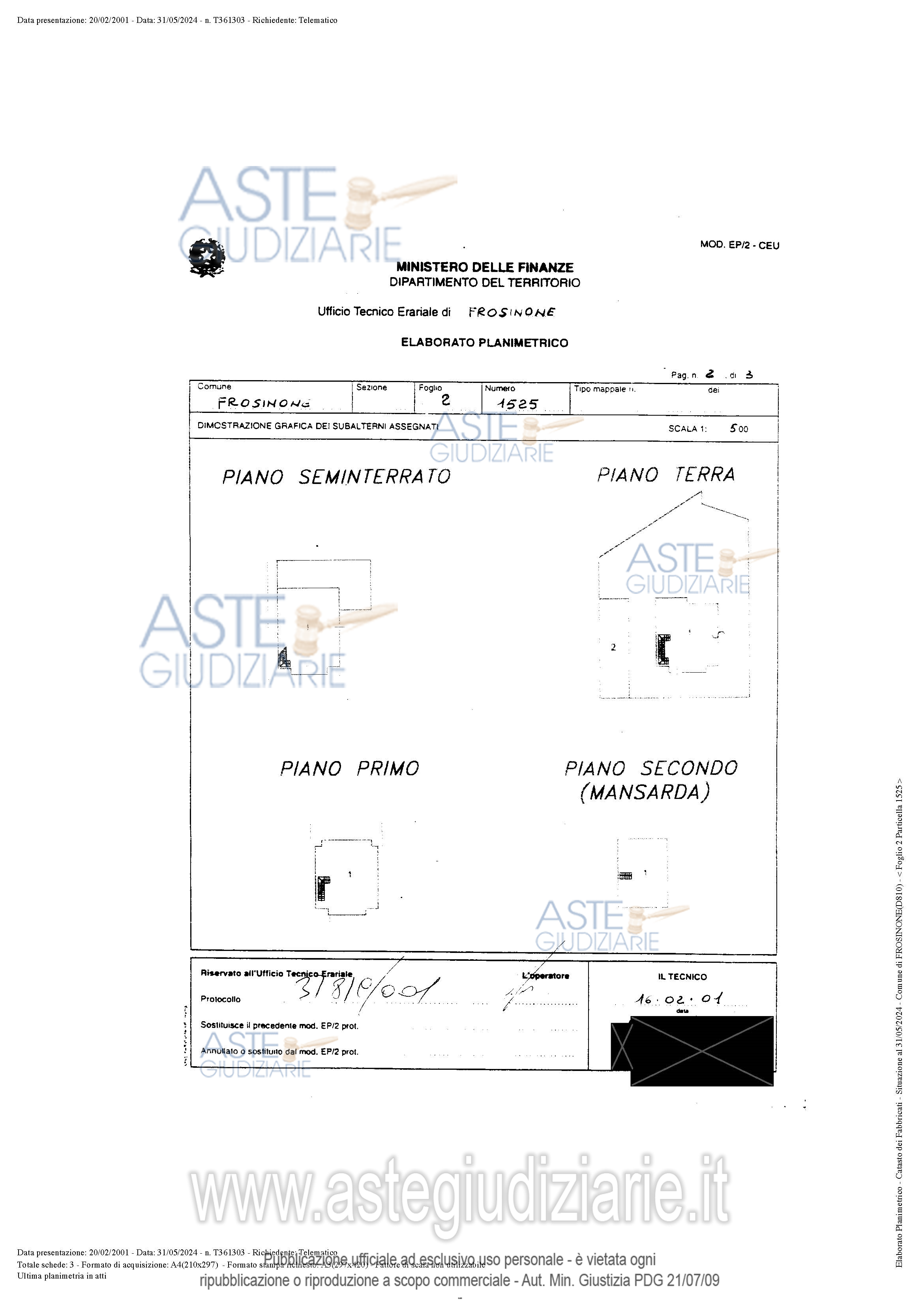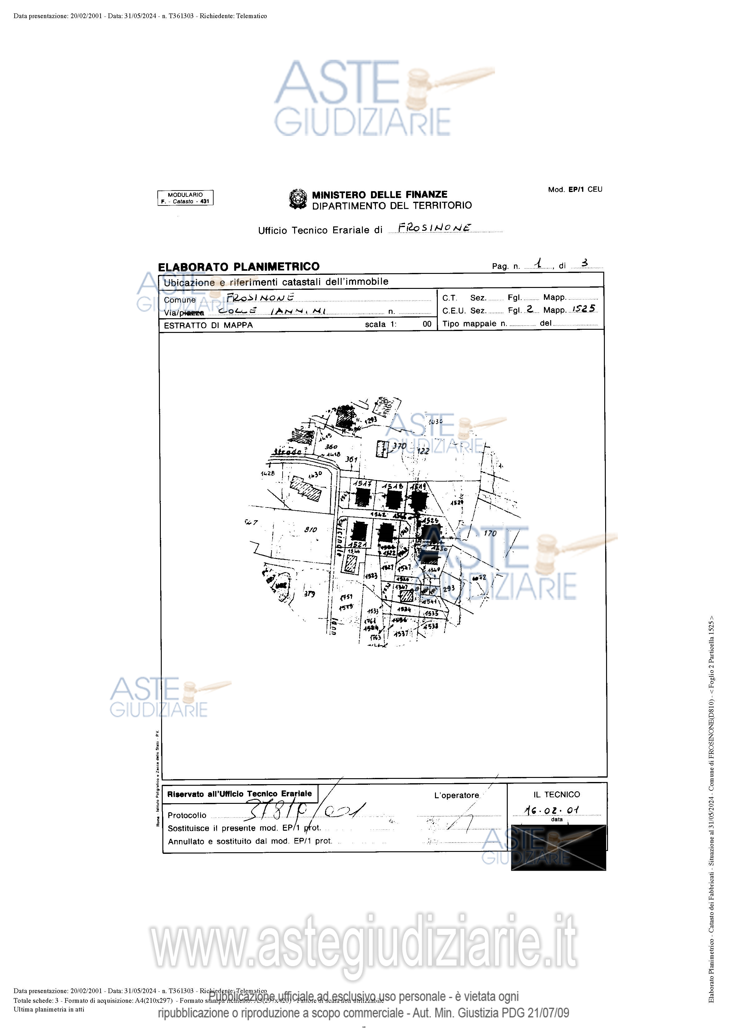 Vendita all'asta Senza incanto, con gara telematica asincrona - LOTTO 3: Lotto 3: Bene 4: diritto di proprietà pari a 1/2 di Area urbana ubicata in Frosinone (FR) – Via Colle Iannini al catasto fabbricati al Fg. 2, Part. 1525, Sub. 2, Categoria F1, al prezzo base di Euro 675,00, -offerta minima Euro 506,25 -rialzo Euro 50,00 G.E. Simona Di Nicola. Prezzo base € 675,00 (offerta minima € 506,25). Data inizio operazioni di vendita: 07/04/2026 ore 15:00. Giudice Simona Di Nicola. Professionista delegato alla vendita Avv. Daniele Mieli - Email "mielidani78@gmail.com"; Cell. 3929797698; Tel. 0775872331. Custode Giudiziario Avv. Daniele Mieli - Email "mielidani78@gmail.com"; Cell. 3929797698; Tel. 0775872331. Rif. Tribunale di Frosinone - Espropriazione immobiliare (cartabia) n. 5/2024
