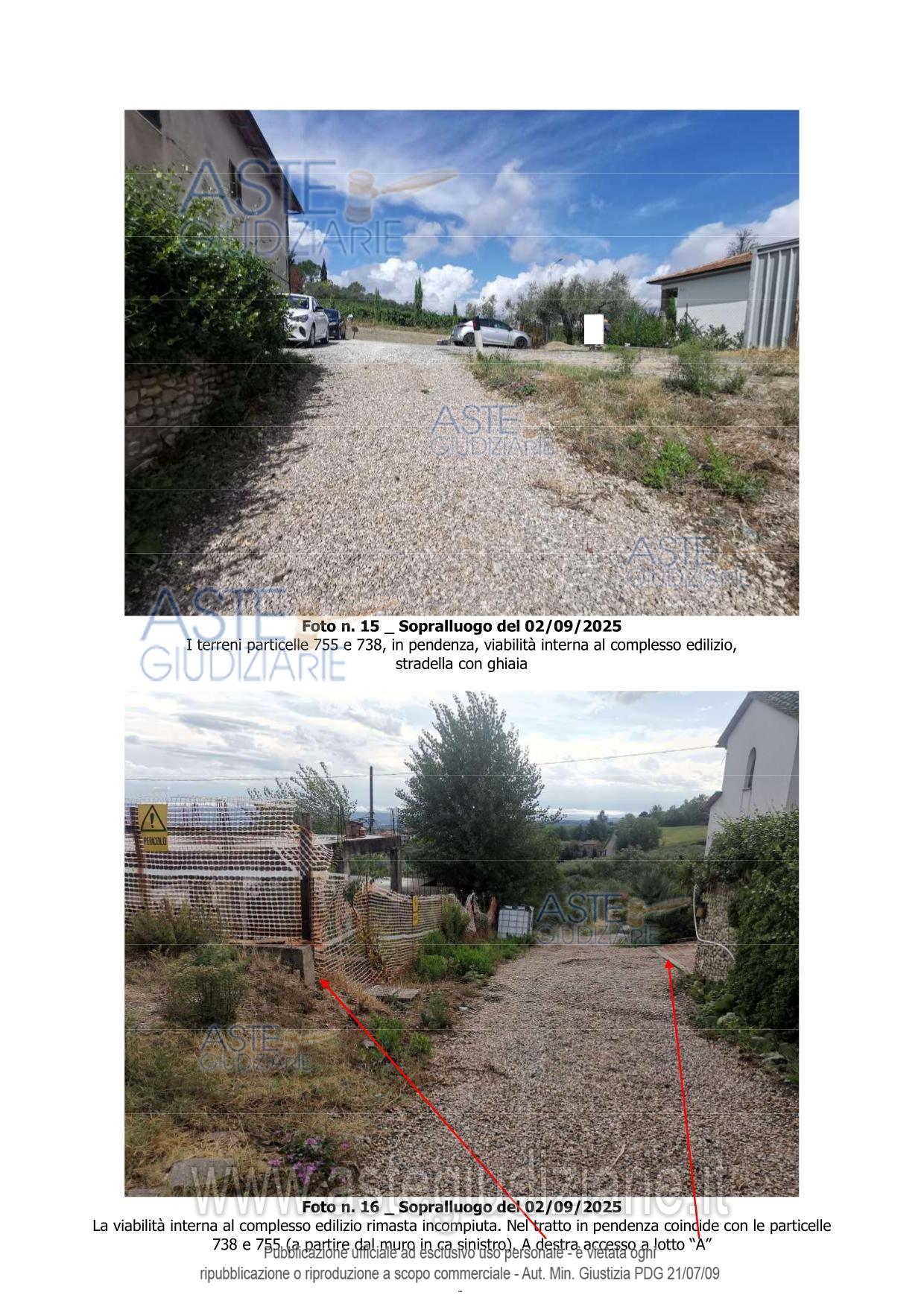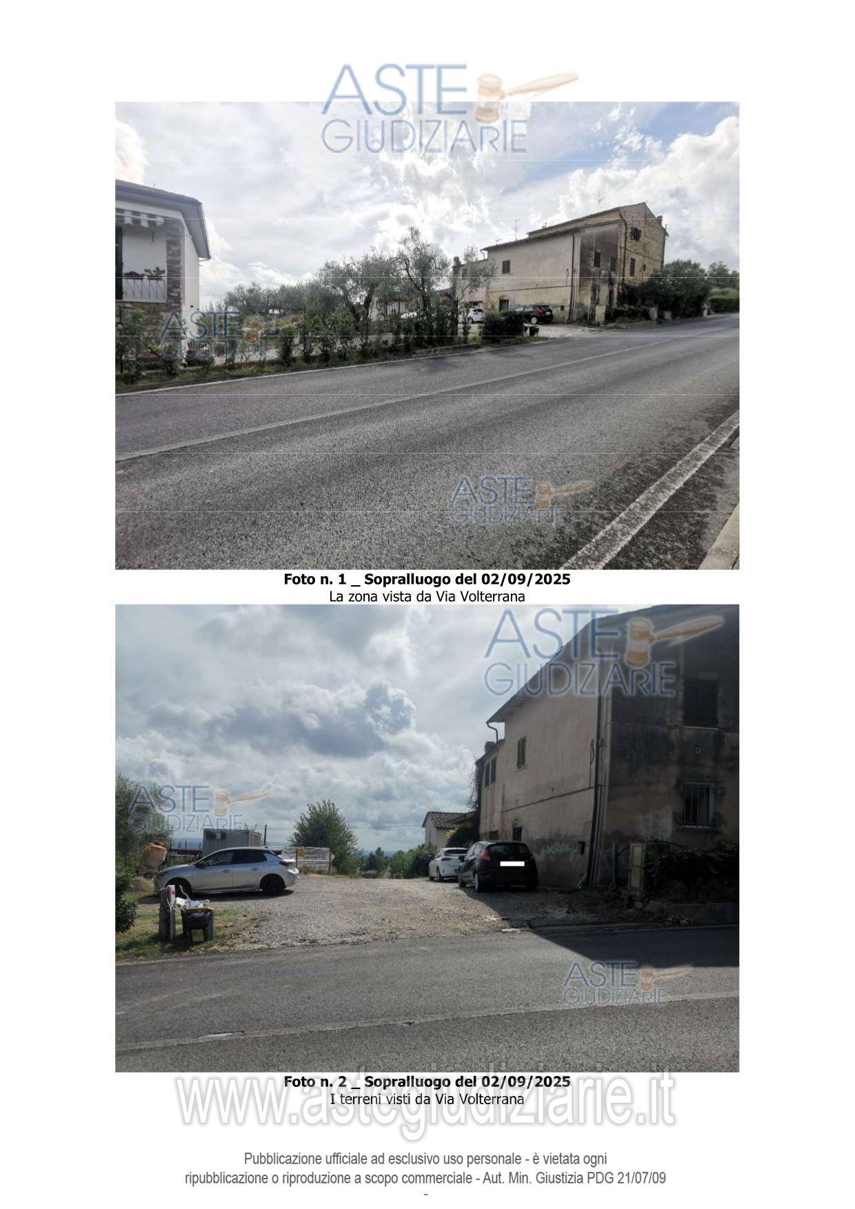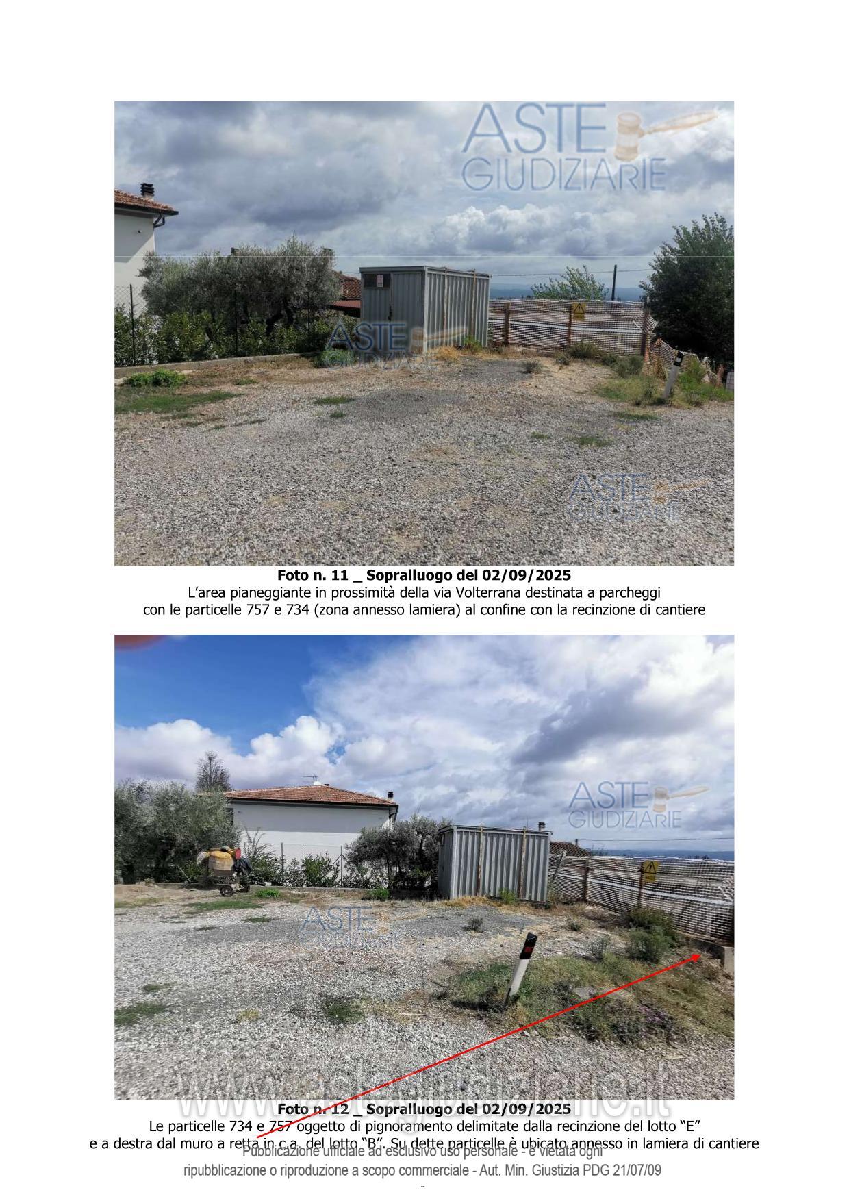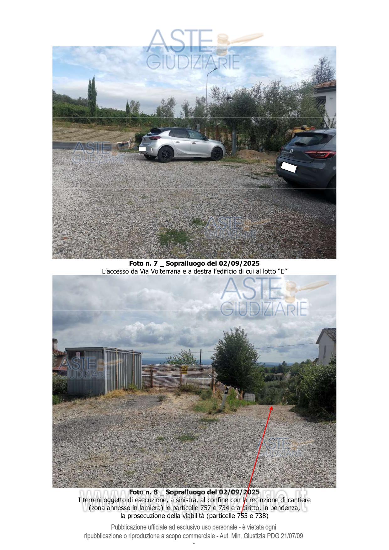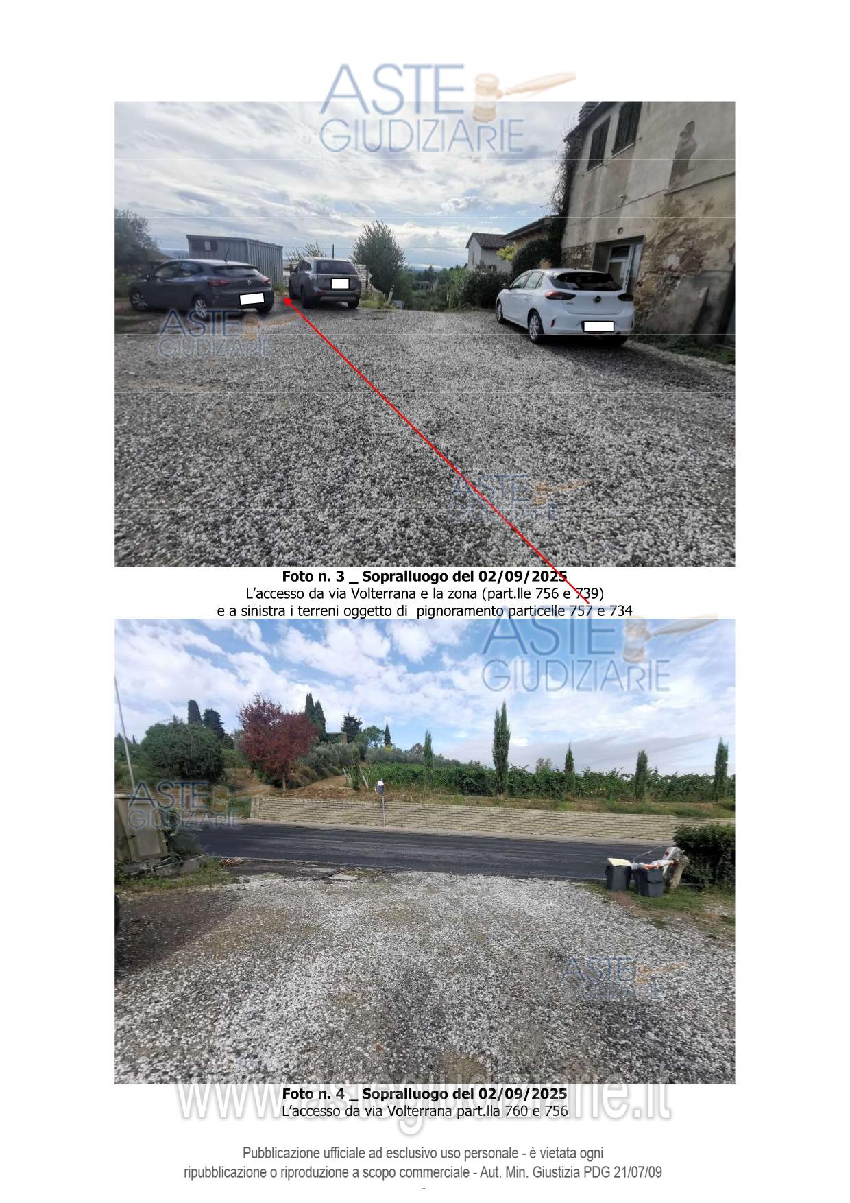 Vendita all'asta Senza incanto, con gara telematica sincrona - LOTTO UNICO: Piena proprietà di 4 appezzamenti di terreno delle superficie di mq 155 di cui n. 2 appezzamenti tra di loro confinanti della superficie catastale di mq 35 da adibire a parcheggi/area di sosta e 2 appezzamenti di terreno tra di loro confinanti della superficie catastale di mq 120 da adibire a viabilità carrabile e pedonale a servizio di un complesso edilizio incompiuto ubicato nel comune di Gambassi Terme in Via Volterrana snc Loc. Santa Maria a Chianni Il Colto. Trattasi di terreni. Prezzo base € 23.000,00 (offerta minima € 17.250,00). Data vendita 30/06/2026 ore 10:30. Giudice: Agata Stanga.