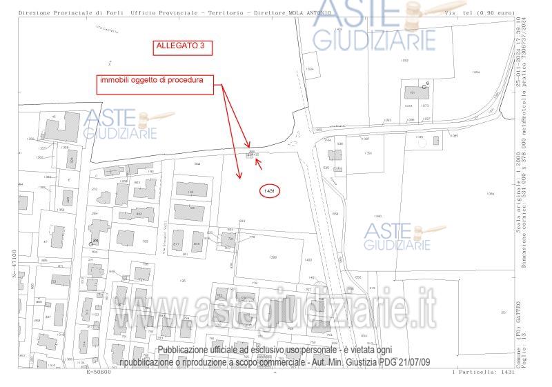 Vendita all'asta Senza incanto, con gara telematica asincrona - LOTTO UNICO: Piena proprietà di un lotto di terreno edificabile, privo di manufatti di qualunque tipo e genere identificato al Catasto Fabbricati del Comune di Gatteo, in via San Rocco, al F. 13 particella 1431, e l’adiacente particella con soprastante manufatto adibito a cabina elettrica identificata al Catasto Fabbricati al F.13 particella 1432, La cabina risulta priva di numerazione civica.