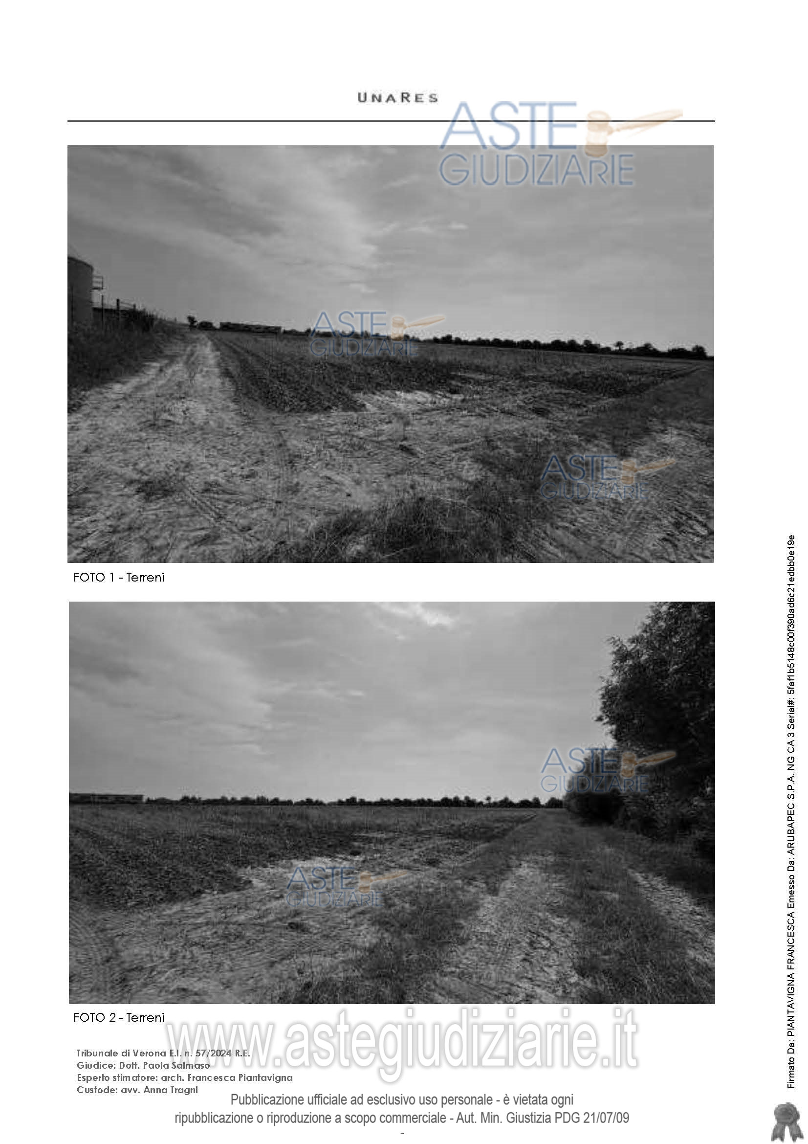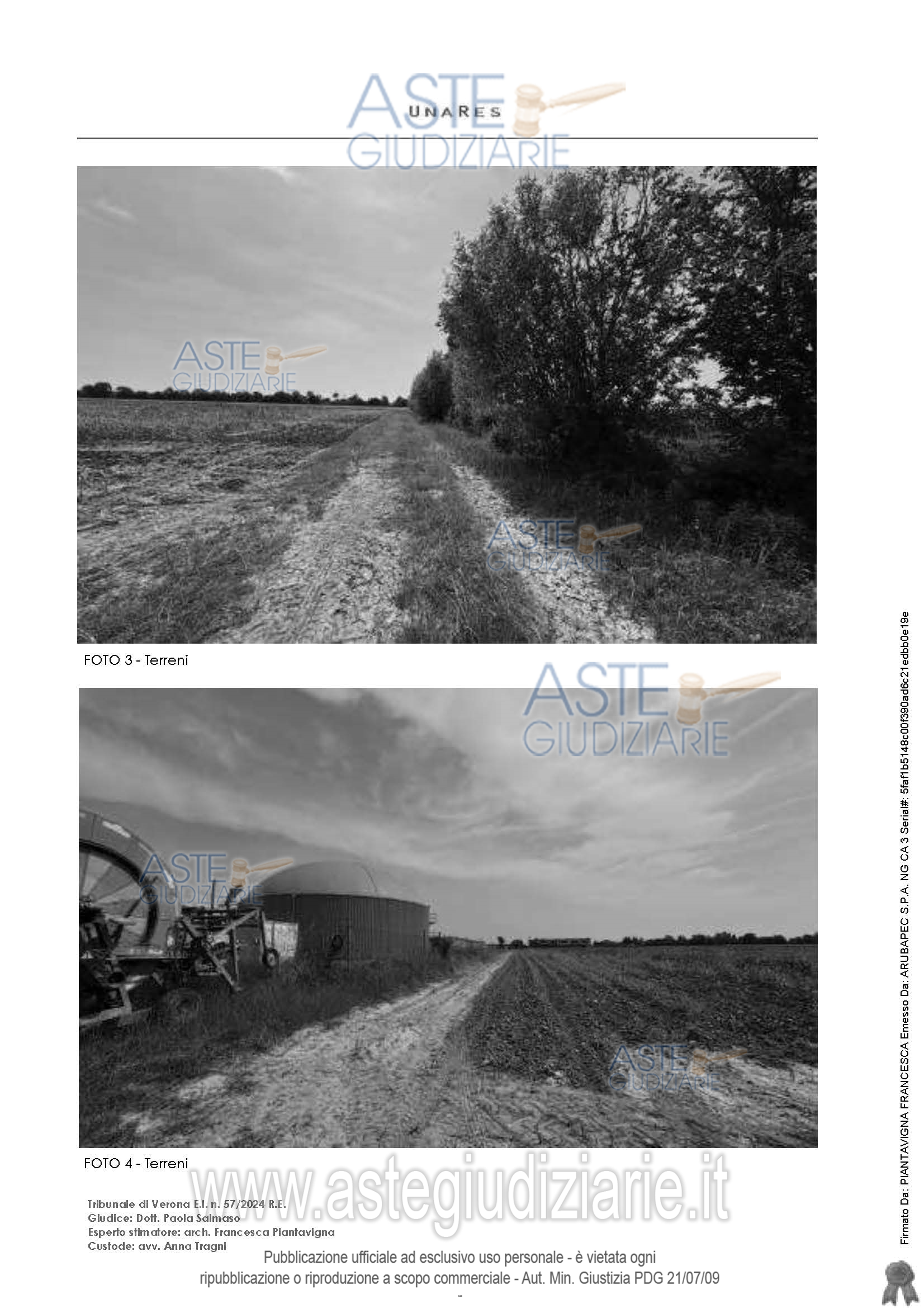 Vendita in attesa dell'emissione del nuovo bando d'asta. LOTTO 3: Lotto 3 - In Comune di Gazzo Veronese (VR), VR), con accesso pedonale e carraio ai beni dalla strada pubblica, via Olmo, piena proprietà di terreni agricoli coltivati di orografia piana, di forma regolare, non recintati di superficie catastale 48.730 mq. Ultimo prezzo base € 83.000,00 (offerta minima € 62.250,00). Giudice Paola Salmaso. Professionista delegato alla vendita Not. Andrea Fantin - Email "notes@notariato.it"; Tel. 0458006661. Custode Giudiziario Avv. Anna Tragni - Email "annatragni@studiofiorinitragni.it"; Tel. 0459856027. Rif. Tribunale di Verona - Espropriazione immobiliare (cartabia) n. 57/2024
