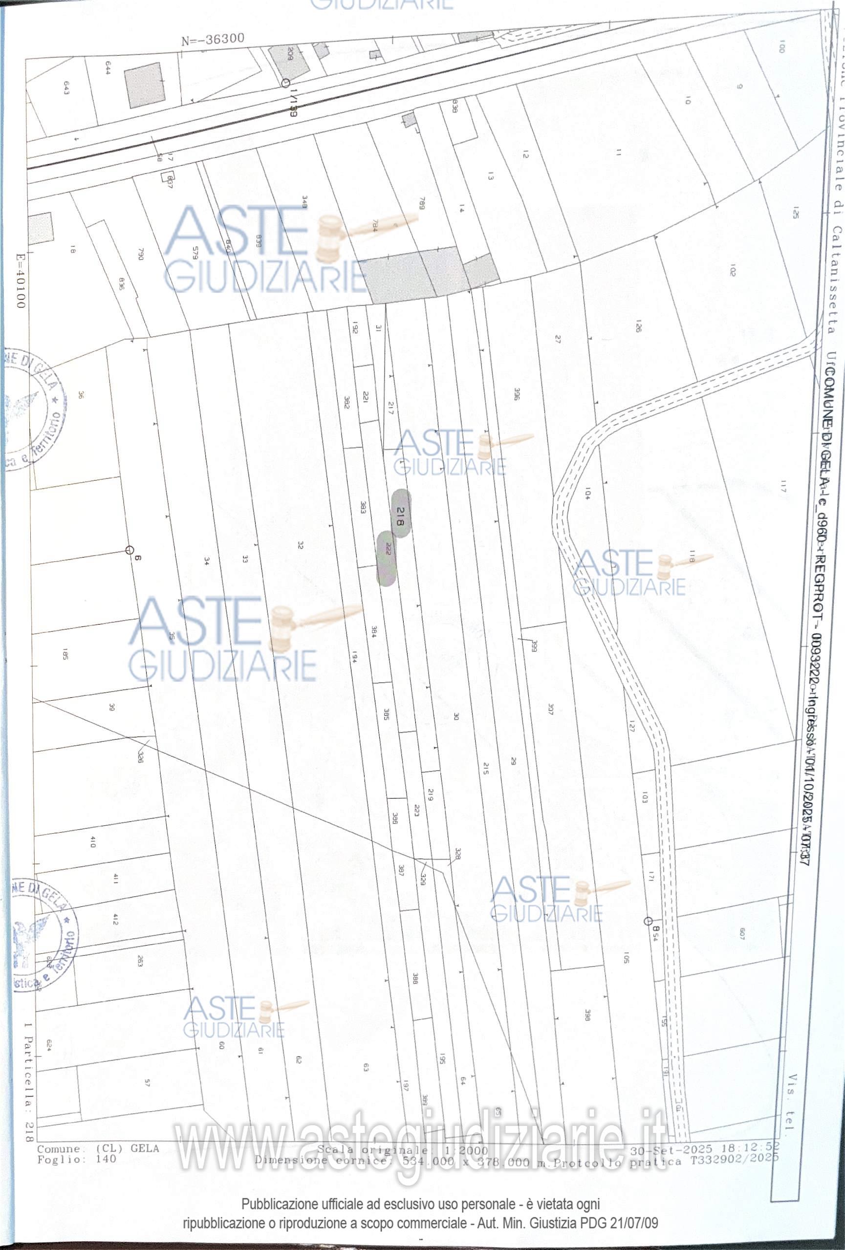 Vendita all'asta Senza incanto, con gara telematica asincrona - LOTTO 100: Diritti di piena proprietà su 1/1 di terreni siti a Gela, in prossimità di Via Butera, di circa 3.179 mq. Prezzo base € 254.320,00 (offerta minima € 190.740,00). Data inizio operazioni di vendita: 14/04/2026 ore 12:00. Giudice Dott. Stefania Sgroi. Curatore Avv. Lucia Antonella Spata. Rif. Tribunale di Gela - Fallimentare (nuovo rito) n. 5/2020
