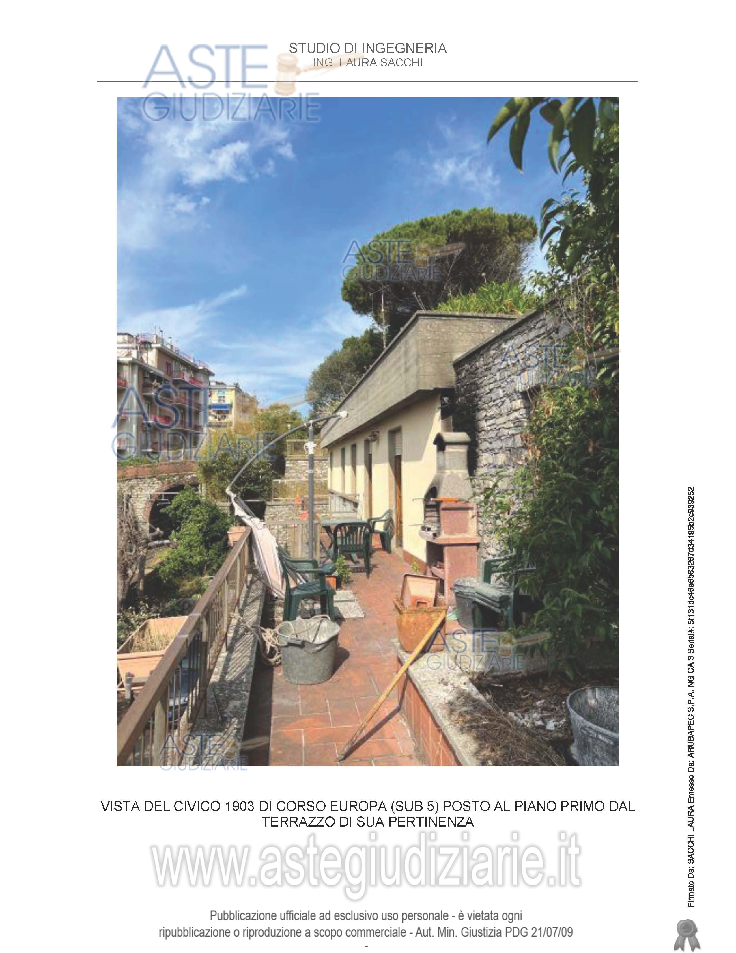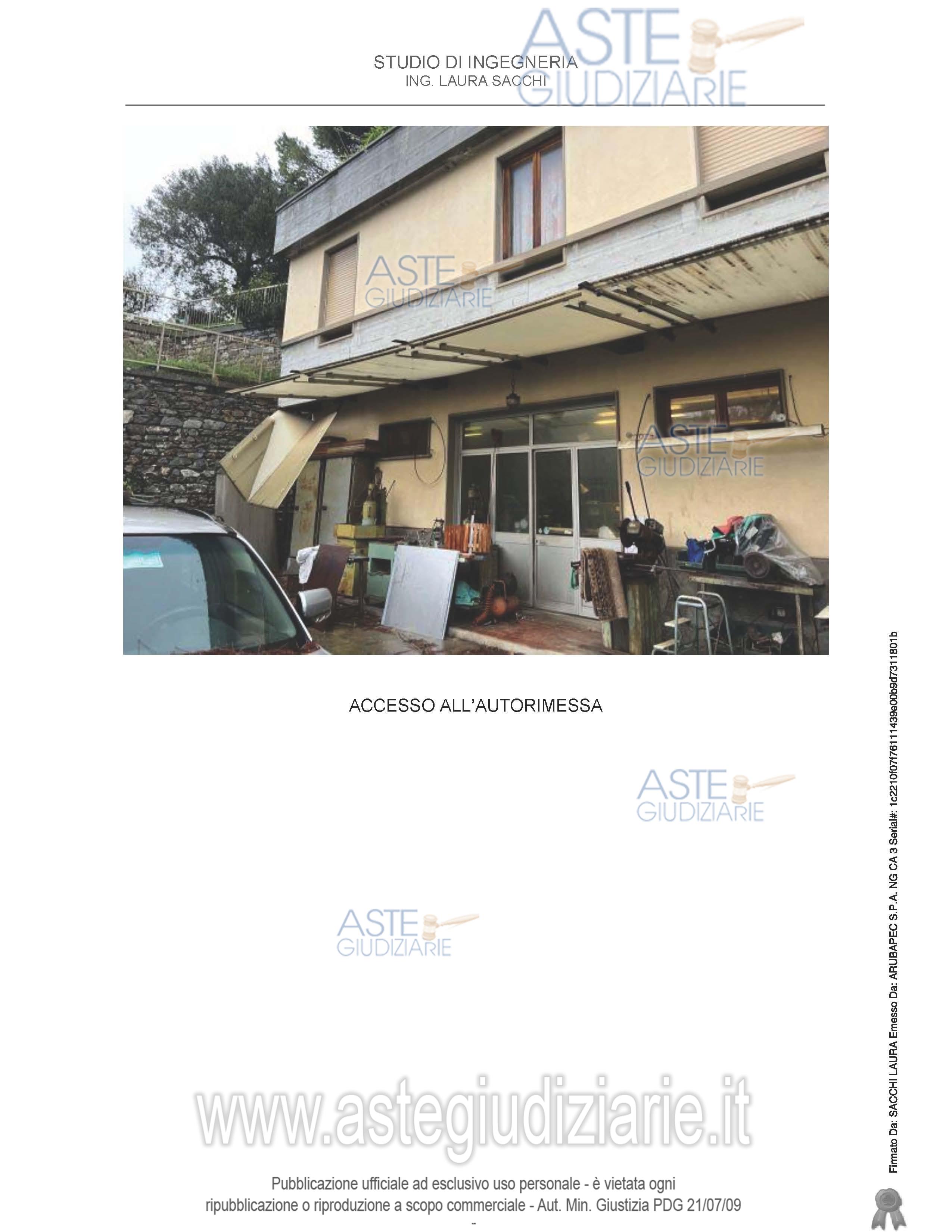 Vendita all'asta Senza incanto, con gara telematica sincrona mista - LOTTO UNICO: LOTTO UNICO in Comune di Genova (GE), Corso Europa civici 1901 e 1903 / Salita Inferiore alla Contadina civici 2 e 4, costituito da edificio bifamiliare, composto da n. 2 appartamenti, n. 1 box interrato, n. 1 autorimessa ed area urbana. Prezzo base € 566.166,75 (offerta minima € 424.625,06). Data vendita 19/12/2025 ore 14:30. Giudice Andrea Balba. Professionista delegato alla vendita Avv. Cristina Carena - Email "cristina.carena@sla-ap.it"; Tel. 010541263. Custode Giudiziario Sovemo Srl - Email "immobiliare@sovemo.com"; Tel. 0105299253. Rif. Tribunale di Genova - Esecuzione immobiliare post legge 80 n. 92/2022