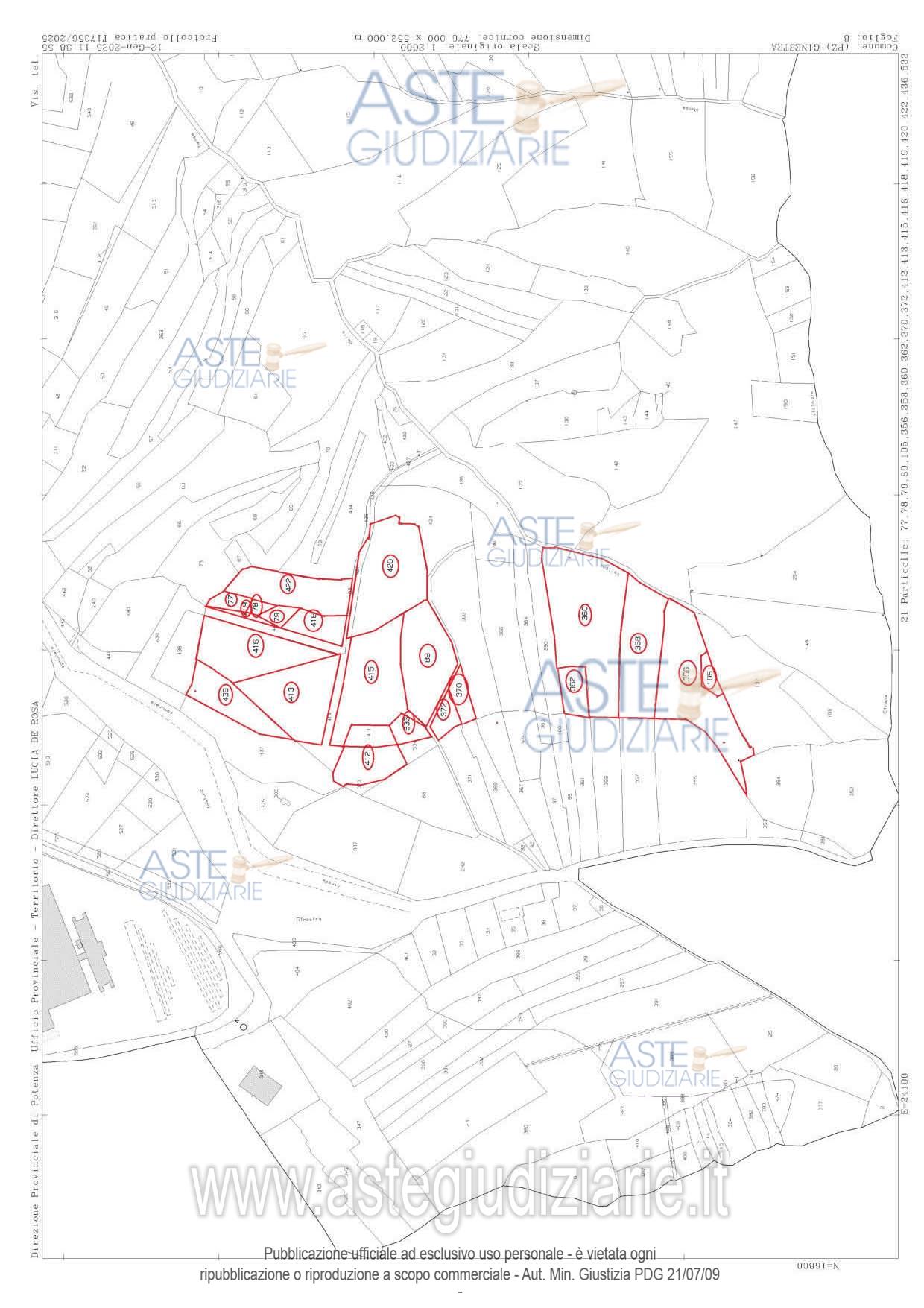 Vendita all'asta Senza incanto, con gara telematica asincrona - LOTTO 4: TERRENI IN AGRO DI GINESTA ALLA CONTRADA MENSA DELLA COMPLESSIVA SUPERFICIE DI MQ. 23.374 ED IN CATASTO TERRENI AL FOGLIO 8 PART.LLE 77-416-418-419-420-78-79-413-415-422-362-356-105-358-360-372-370-89. Prezzo base € 44.176,50 (offerta minima € 33.132,00). Data inizio operazioni di vendita: 16/04/2026 ore 09:30. Professionista delegato alla vendita Avv. Carmela Nole' - Email "avv.carmela.nole@gmail.com"; Cell. 3382323596; Tel. 0972720015. Custode Giudiziario Avv. Carmela Nole' - Email "avv.carmela.nole@gmail.com"; Cell. 3382323596; Tel. 0972720015. Rif. Tribunale di Potenza - Espropriazione immobiliare (cartabia) n. 9/2024