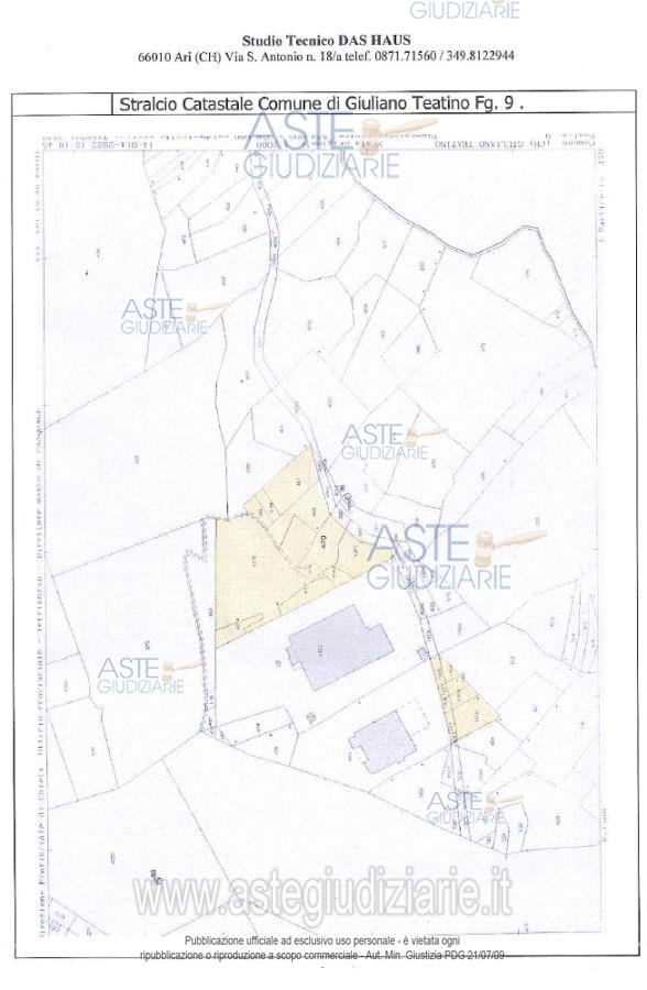 Vendita all'asta Senza incanto, con gara telematica asincrona - LOTTO 1: Full and perfect ownership of the agricultural land with a total surface area of approximately 8,285 square meters, currently abandoned, of irregular shape and with steep slope. Prezzo base € 3.437,00 (offerta minima € 2.578,00). Data inizio operazioni di vendita: 20/01/2026 ore 10:00. In caso di più offerte valide si procederà a gara che inizierà il 20/01/2026 ore 10:00 e terminerà il 22/01/2026 ore 12:00. Rif. Tribunale di Chieti - Liquidazione coatta amministrativa n. 1/2011