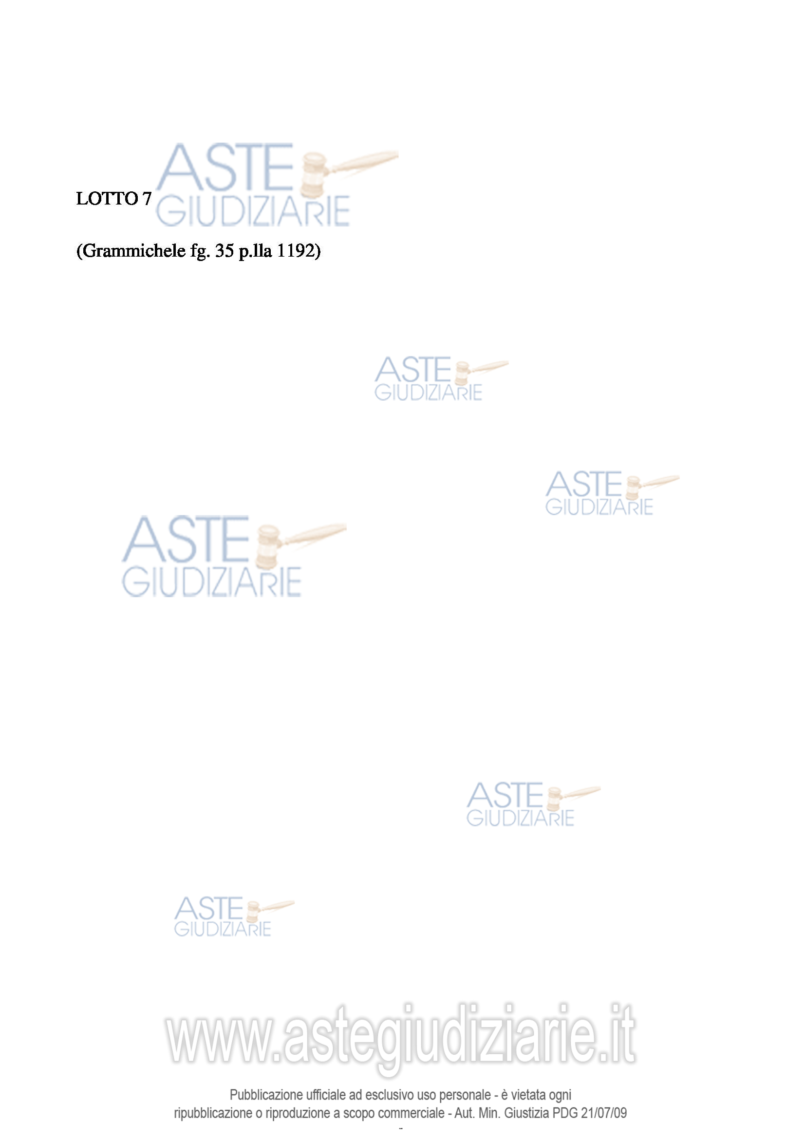Vendita all'asta Senza incanto, con gara telematica sincrona mista - LOTTO 7: Appezzamento incolto senza alcuna costruzione al suo interno, ricadente nell’area periferica del centro urbano di Grammichele, secondo il vigente PRG ricade in area Brt (2), catastalmente identificato al Comune di Grammichele al fg. 35 p.lla 1192, qualità pascolo, classe unica, superficie 156 mq. Prezzo base € 4.387,50 (offerta minima € 3.290,62). Data vendita 10/04/2026 ore 18:00. Professionista delegato alla vendita Avv. Andrea Scollo - Email "scollo.andrea@yahoo.it"; Cell. 3391963273. Custode Giudiziario Avv. Andrea Scollo - Email "scollo.andrea@yahoo.it"; Cell. 3391963273. Rif. Tribunale di Caltagirone - Esecuzione immobiliare post legge 80 n. 1/1996