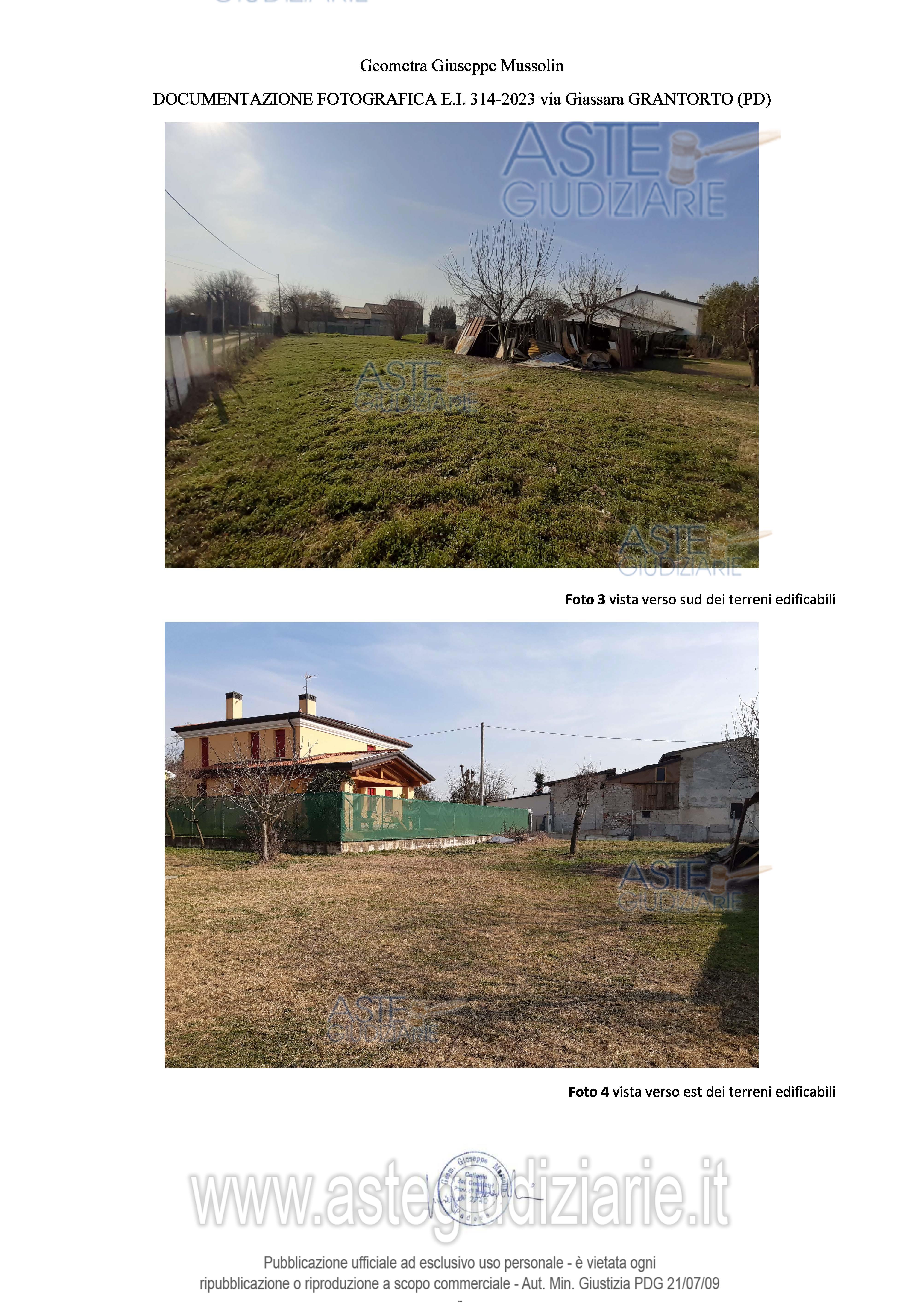 Vendita all'asta Senza incanto, con gara telematica sincrona - LOTTO 1: Lotto 1- terreno edificabile, recintato, in Comune di Grantorto (PD), con accesso da via Giassara e via Vittorio Emanuele II all'altezza del civico n.49, in località semicentrale e con insistenti baracche da rimuovere e precisamente: quota indivisa di 2/3 di piena proprietà e quota di 1/3 di nuda proprietà (fermo restando il diritto di usufrutto in capo a sogg. terzo nato l'1.7.1944) del terreno in parte occupato da stradina di accesso di mq.1.365; piena proprietà di area contigua alla precedente di mq.114. Prezzo base € 36.000,00 (offerta minima € 27.000,00). Data vendita 29/01/2026 ore 10:00. Giudice Rossi. Professionista delegato alla vendita Not. Federico Crivellari - Email "aste@apepnotai.it"; Tel. 049651228. Custode Giudiziario Apep - Email "visita@apepnotai.it"; Tel. 049651228. Rif. Tribunale di Padova - Espropriazione immobiliare (cartabia) n. 314/2023