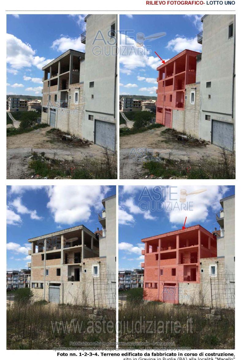 Vendita in attesa dell'emissione del nuovo bando d'asta. LOTTO UNICO: Piena e perfetta proprietà del compendio immobiliare costituito da un terreno con entrostantefabbricato in corso di costruzione . Ultimo prezzo base € 52.868,00 (offerta minima € 39.651,00). Giudice Dott. Michele De Palma. Curatore Avv. Silvia Addante. Rif. Tribunale di Bari - Fallimentare n. 12494/1996