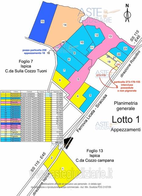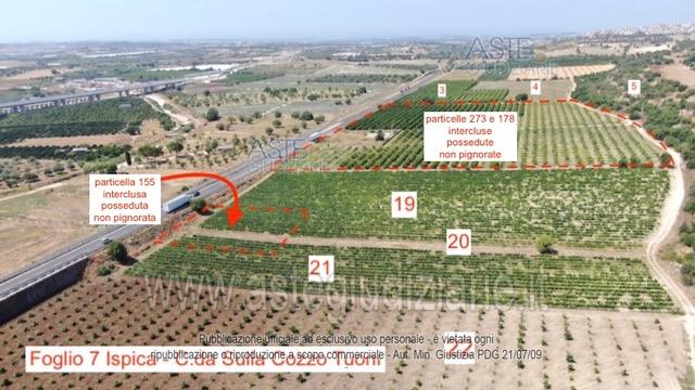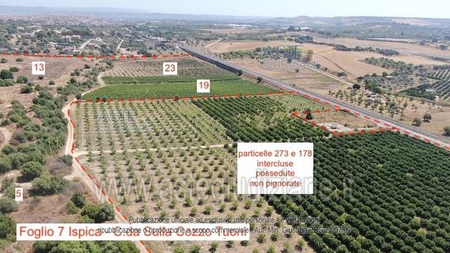 Vendita in attesa dell'emissione del nuovo bando d'asta. LOTTO 1: Piena proprietà di due appezzamenti attigui di terreno compresa la proprietà indivisa di 1/2 della particella 258 al Foglio 7 Ispica, ove è ubicato il pozzo per l’approvvigionamento idrico dei fondi oggetto di vendita. Ultimo prezzo base € 882.000,00 (offerta minima € 661.500,00). Professionista delegato alla vendita Avv. Stefania Spataro. Custode Giudiziario Avv. Stefania Spataro - Email "stefania_spataro1@virgilio.it". Rif. Tribunale di Ragusa - Esecuzione immobiliare post legge 80 n. 67/2020