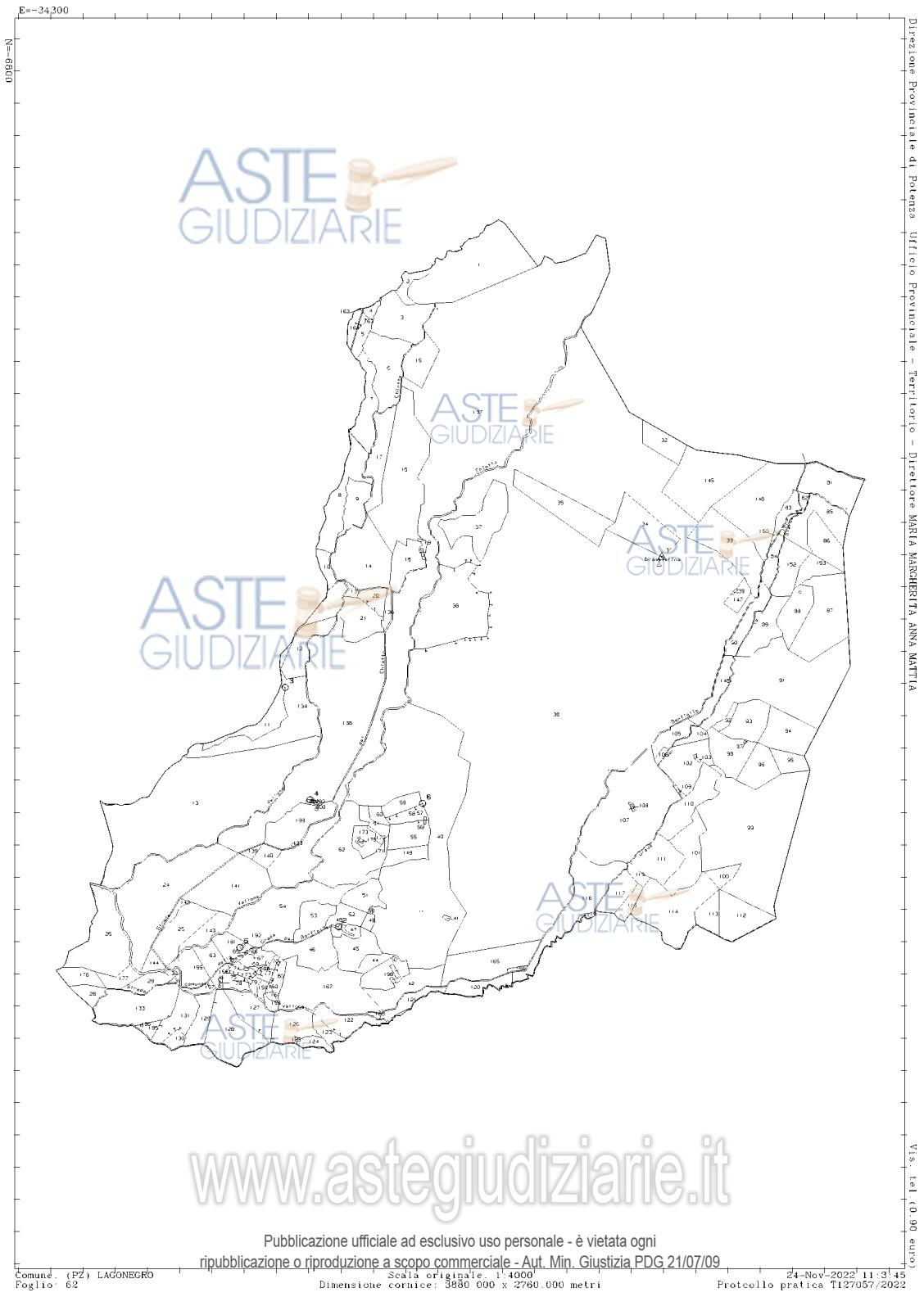 Vendita all'asta Senza incanto, con gara telematica asincrona - LOTTO UNICO: Diritto di piena proprietà di terreni agricoli siti in Lagonegro (PZ), c.da Bonfilio, in Catasto al foglio 62 part. 38-165 ( ex 38/b) e 166 ( ex 38/c) ( in perizia: beni 7-8 e 9 costituenti il lotto 3).Superficie complessiva 997.304 mq. Il fondo è intercluso. Le particelle 165 e 166 ricadono in “zona Agricola E1” mentre la particella 38 ricade “zona Agricola E3” per la maggiore consistenza e “zona Agricola E2 – E1” per la restante superficie del vigente strumento urbanistico. Prezzo base € 188.475,00 (offerta minima € 141.356,25). Data inizio operazioni di vendita: 24/02/2026 ore 12:00. Professionista delegato alla vendita Avv. Barbara Pisoni - Email "studiolegalepisoni@gmail.com"; Cell. 3383615162; Tel. 097322688. Custode Giudiziario Avv. Barbara Pisoni - Email "studiolegalepisoni@gmail.com"; Cell. 3383615162; Tel. 097322688. Rif. Tribunale di Lagonegro - Esecuzione immobiliare post legge 80 n. 29/2008