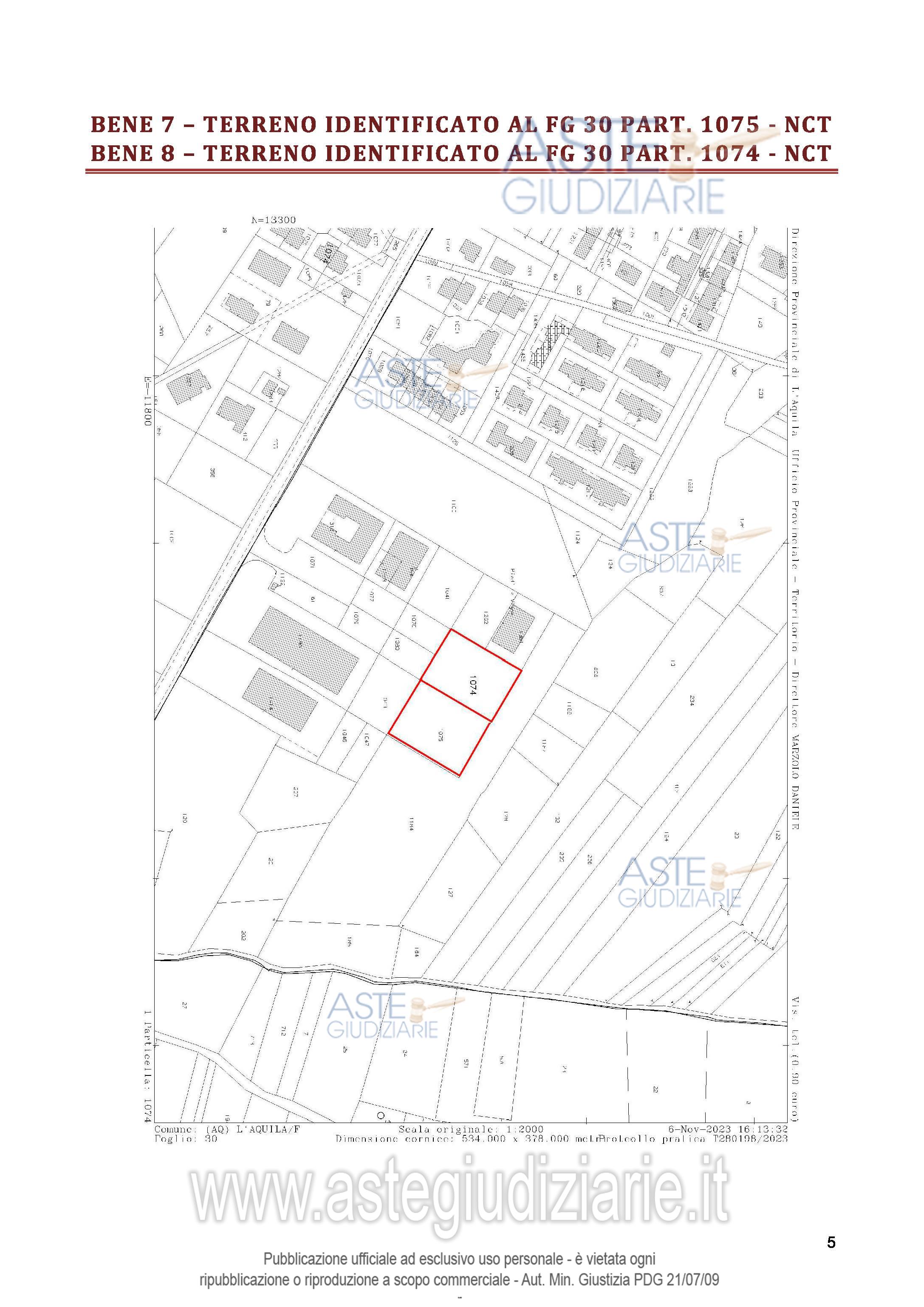 Vendita all'asta Senza incanto, con gara telematica asincrona - LOTTO 5: Piena proprietà di terreno. Diritti pari ad un mezzo di terreno. Prezzo base € 35.653,76 (offerta minima € 26.740,32). Data inizio operazioni di vendita: 30/10/2025 ore 10:00. Giudice Maura Manzi. Professionista delegato alla vendita Dott. Guglielmo Calvi Moscardi. Custode Giudiziario Dott. Istituto Vendite Giudiziarie Abruzzo - Email "ivgavezzano@gmail.com". Rif. Tribunale di L'Aquila - Esecuzione immobiliare post legge 80 n. 41/2016