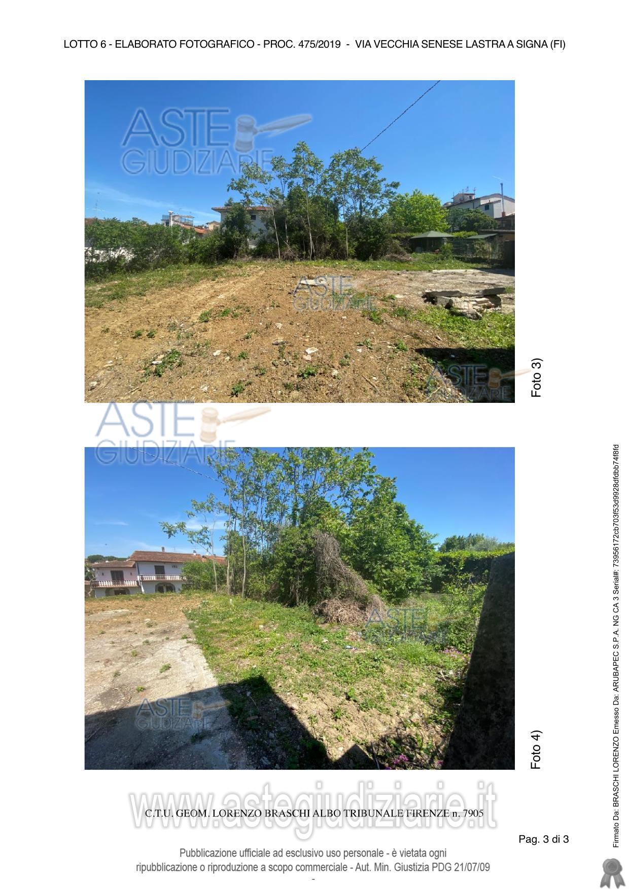 Vendita all'asta Senza incanto, con gara telematica sincrona - LOTTO 6: Due appezzamenti di terreno agricolo proprietà di tre appezzamenti di terreno agricolo adiacenti ed a giacitura pianeggiante per una superficie complessiva di m2350. Prezzo base € 6.120,00 (offerta minima € 4.590,00). Data vendita 07/07/2026 ore 09:00. Giudice Francesca Romana Bisegna. Professionista delegato alla vendita Maria Chiara Cerbioni - Email "m.cerbioni@virgilio.it". Custode Giudiziario Istituto Vendite Giudiziarie Di Firenze - Email "prenota.fi@isveg.it"; Tel. 0552340830. Rif. Tribunale di Firenze - Esecuzione immobiliare post legge 80 n. 475/2019