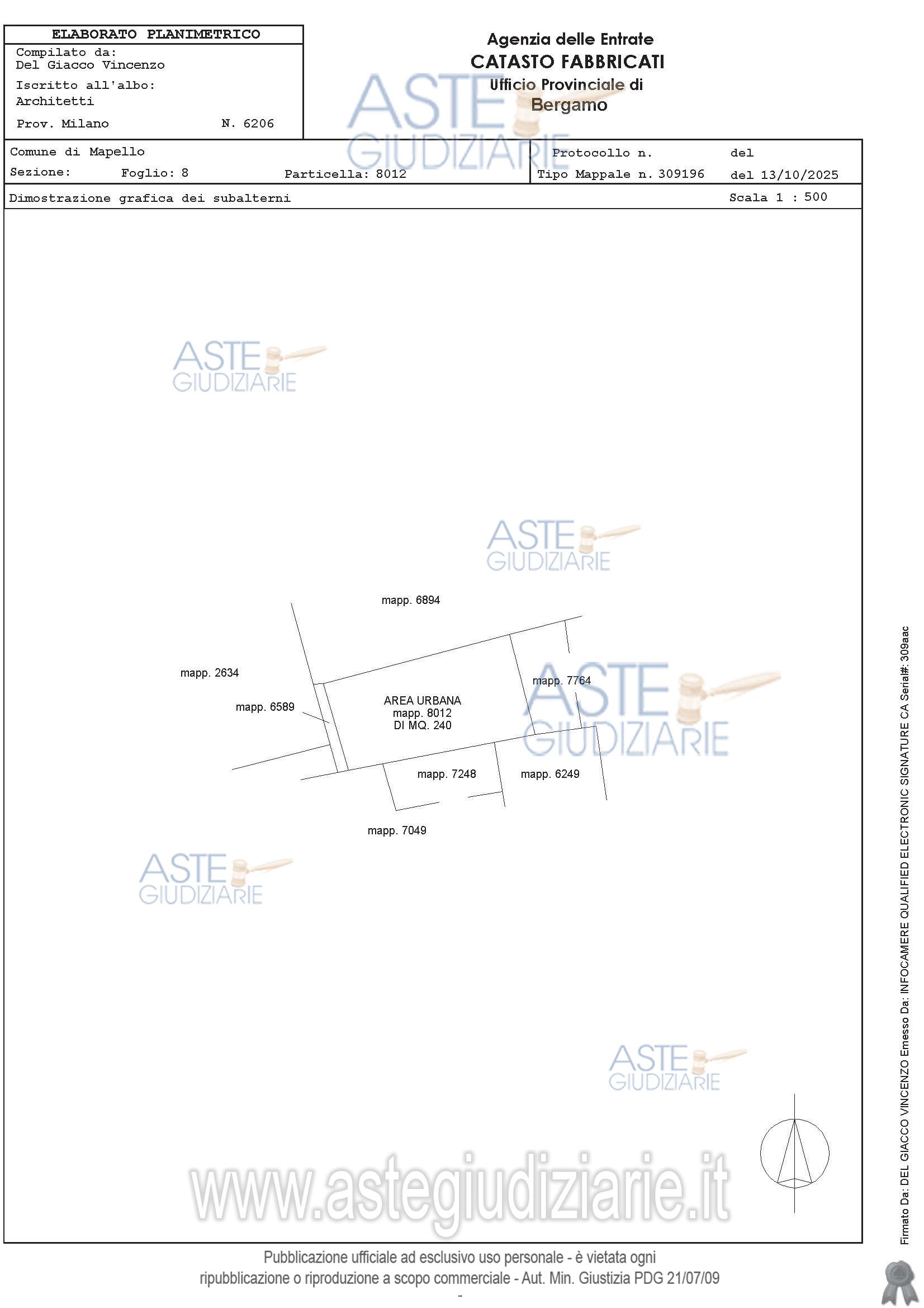 Vendita all'asta Senza incanto, con gara telematica asincrona - LOTTO UNICO: Piena ed esclusiva proprietà di terreni siti nel comune di Mapello, Via Madre Teresa di Calcutta. Trattasi di terreni pressoché pianeggianti, in leggero declivio liberi da materiali e/o altro, posti in area residenziale delimitati da recinzioni di altre proprietà e da pannelli di recinzione tipo da cantiere verso la Via Madre Teresa di Calcutta. Allo stato attuale si presentano con sistemazione a prato. Superficie complessiva di circa mq 348,00. Prezzo base € 25.198,50 (offerta minima € 18.898,88). Data inizio operazioni di vendita: 05/05/2026 ore 10:00. Giudice Luca Verzeni. Professionista delegato alla vendita Dott. Giovanni Colombi - Email "esecuzionibg@scalvediesoci.com"; Tel. 035217566. Custode Giudiziario Dott. Giovanni Colombi - Email "esecuzionibg@scalvediesoci.com"; Tel. 035217566. Rif. Tribunale di Bergamo - Espropriazione immobiliare (cartabia) n. 56/2025