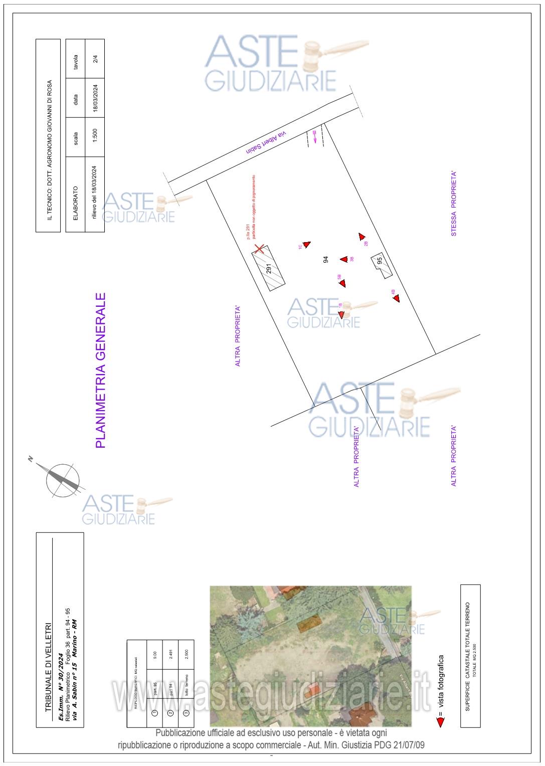 Vendita in attesa dell'emissione del nuovo bando d'asta. LOTTO 2: Piena proprietà di fabbricato con terreno annesso, ubicato nel territorio comunale di Marino. Piena proprietà di terreno agricolo con qualità di coltura catastale "vigneto" e "pascolo", ubicato in Marino. Ultimo prezzo base € 640.000,00 (offerta minima € 480.000,00). Professionista delegato alla vendita Avv. Francesco Novara - Email "francesconovara@inwind.it". Custode Giudiziario Avv. Francesco Novara - Email "francesconovara@inwind.it". Rif. Tribunale di Velletri - Espropriazione immobiliare (cartabia) n. 30/2024