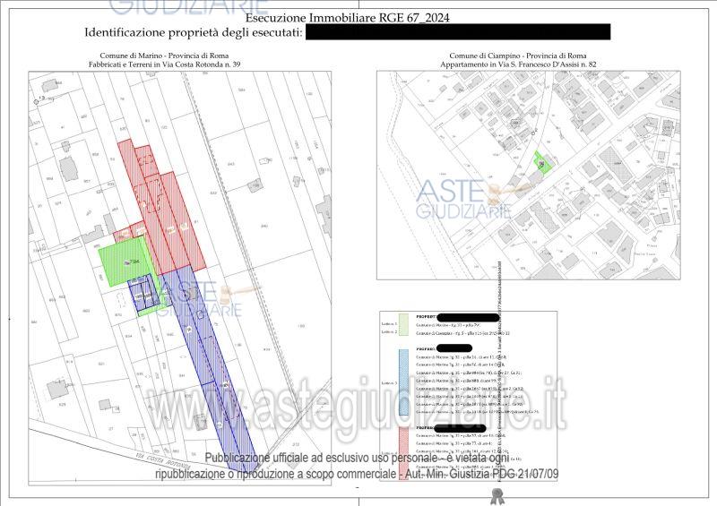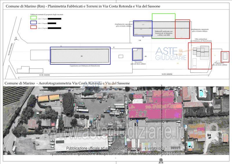 Vendita all'asta Senza incanto, con gara telematica asincrona - LOTTO 3: N.8 terreni agricoli di 6113,00 mq ubicati a Marino (RM) - Via Costa Rotonda n. 39, località Frattocchie, qualità vigneto. Privi di colture e urbanizzati con piazzali, strade e aree a servizio della zona industriale, oltre che alcuni manufatti, realizzati senza alcun titolo edilizio. Su tali terreni insistono n.1 capannone industriale di circa 450,00 mq, un manufatto di circa 170 mq e n.1 capannone industriale di circa 1.050 mq, privi di titolo edilizio. Prezzo base € 80.000,00 (offerta minima € 60.000,00). Data inizio operazioni di vendita: 27/02/2026 ore 10:30. Giudice Dott. Raffaella Calvanese. Professionista delegato alla vendita Avv. Sara Di Geronimo. Custode Giudiziario Avv. Sara Di Geronimo - Email "info@studiodigeronimo.com"; Tel. 0694018070. Rif. Tribunale di Velletri - Espropriazione immobiliare (cartabia) n. 67/2024
