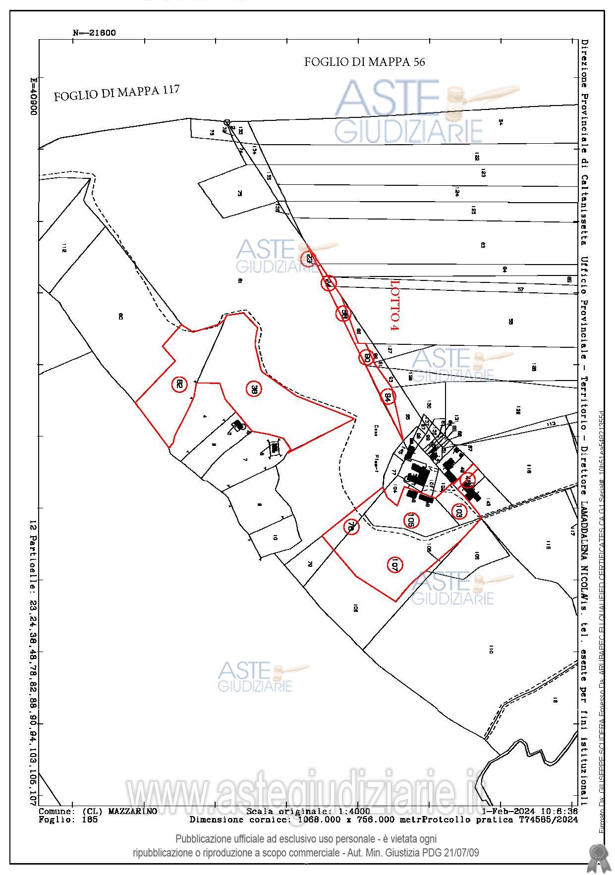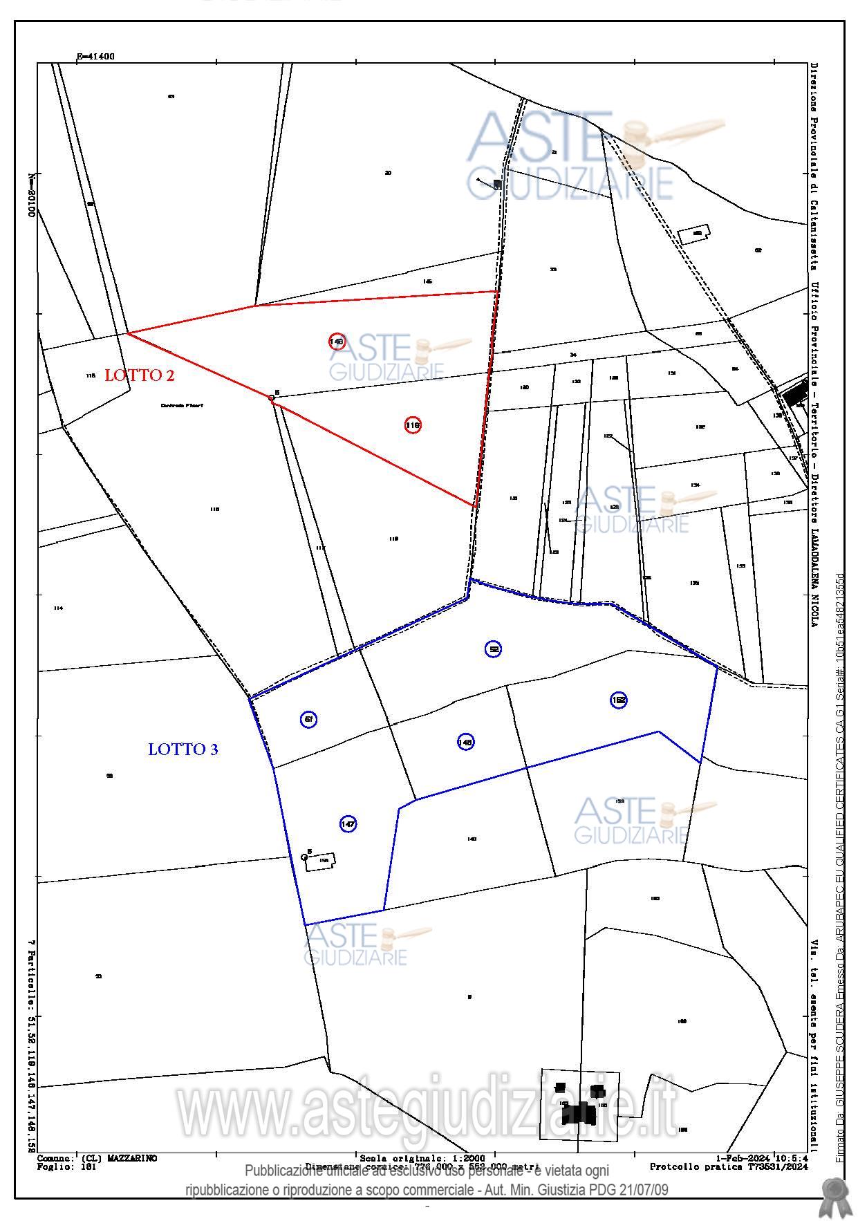 Vendita all'asta Senza incanto, con gara telematica sincrona mista - LOTTO 3: Piena proprietà appezzamenti di terreno in Mazzarino (CL), c.da Ficari Sottano, superficie ha 3.81.84, in catasto al foglio 181 - p.lla 52, vigneto, classe 02, mq. 8.200; mandorleto, classe 02, mq. 3.680; - p.lla 147, vigneto, classe 02, mq. 734; seminativo, classe 04, mq. 8.432; - p.lla 148, vigneto, classe 02, mq. 3.300; seminativo, classe 04, mq. 1.224; - p.lla 51, seminativo, classe 04, mq. 4.840; - p.lla 152, vigneto, classe 02, mq. 5.183; uliveto, classe 02, mq. 2.591. Prezzo base € 17.507,81 (offerta minima € 13.130,85). Data vendita 14/07/2026 ore 17:00. Giudice: Dott. Patrizia Castellano.