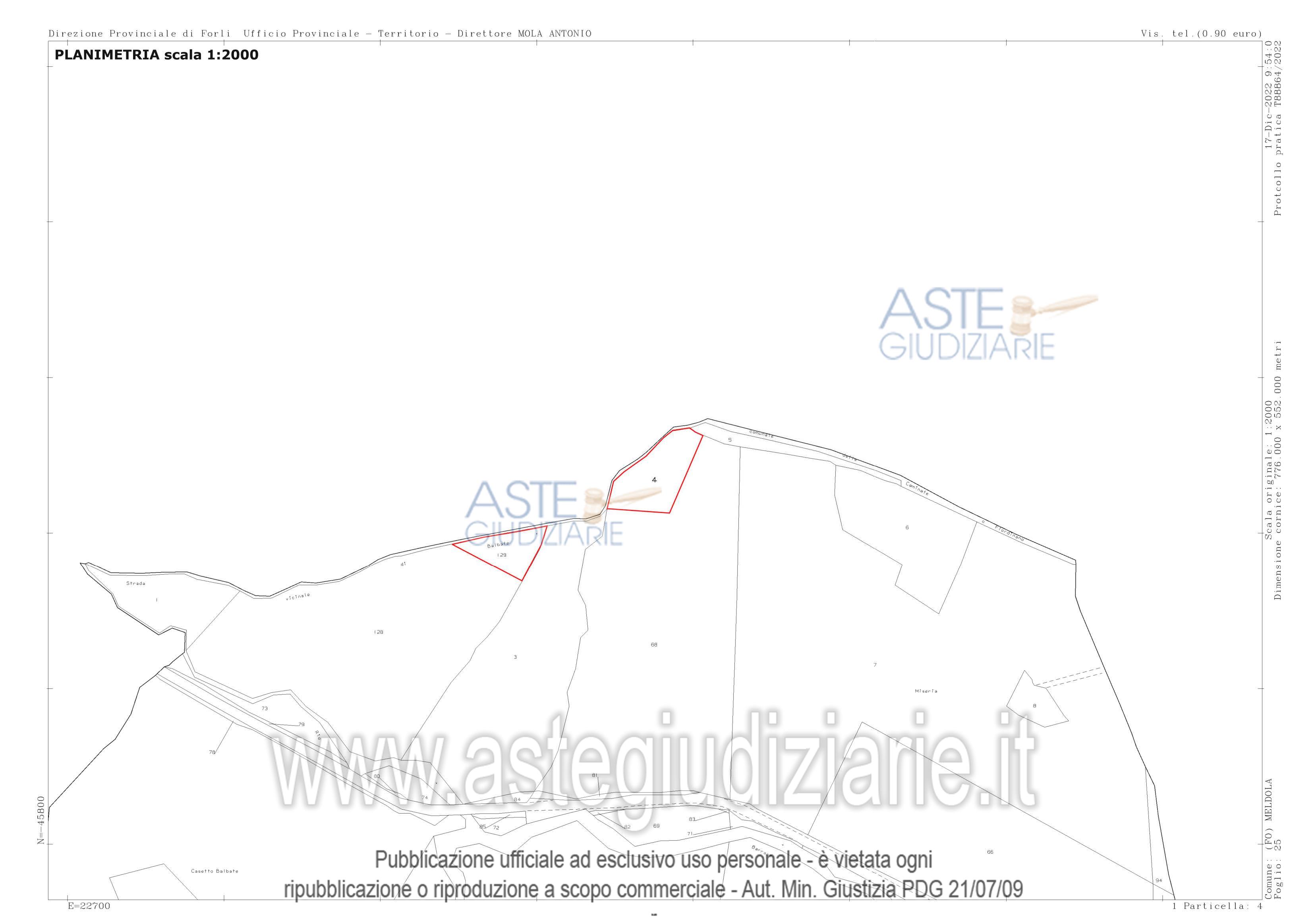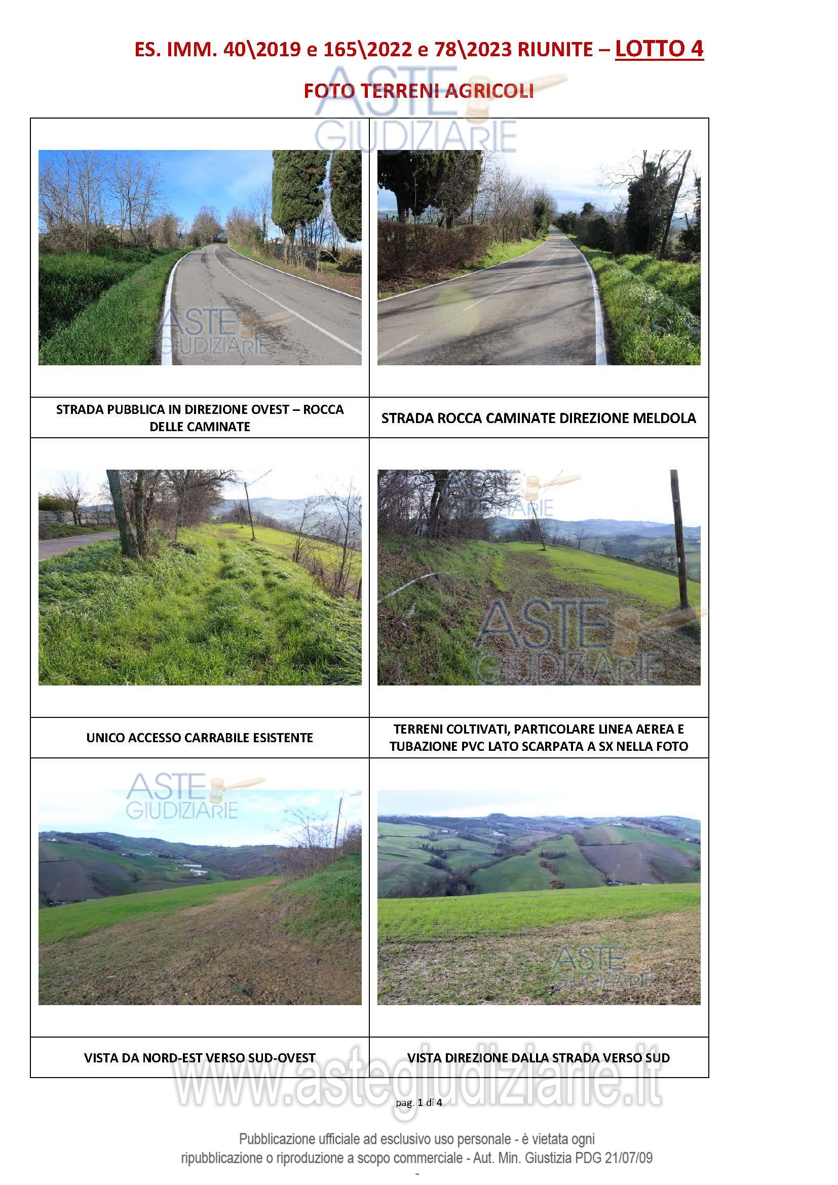 Vendita all'asta Senza incanto, con gara telematica asincrona - LOTTO 4: Trattasi di terreni agricoli coltivati a seminativo ed in parte da terreni incolti in quanto non coltivabili stante la morfologia del terreno, in tutto (terreni coltivabili e non) per una superficie catastale di mq. 43.309. Per i terreni agricoli si farà riferimento alla superficie catastale ed alle singole coltivazioni in atto che risultano le seguenti: seminativo mq. 34.000, incolto sterile/scarpata/calanco mq. 9.309. Prezzo base € 50.250,00 (offerta minima € 37.687,50). Data inizio operazioni di vendita: 11/03/2026 ore 10:00. Giudice Fabio Santoro. Professionista delegato alla vendita Avv. Sonia Valeriani - Email "soniavaleriani83@gmail.com"; Cell. 3482928148. Custode Giudiziario Avv. Sonia Valeriani - Email "soniavaleriani83@gmail.com"; Cell. 3482928148. Rif. Tribunale di Forlì - Esecuzione immobiliare post legge 80 n. 40/2019