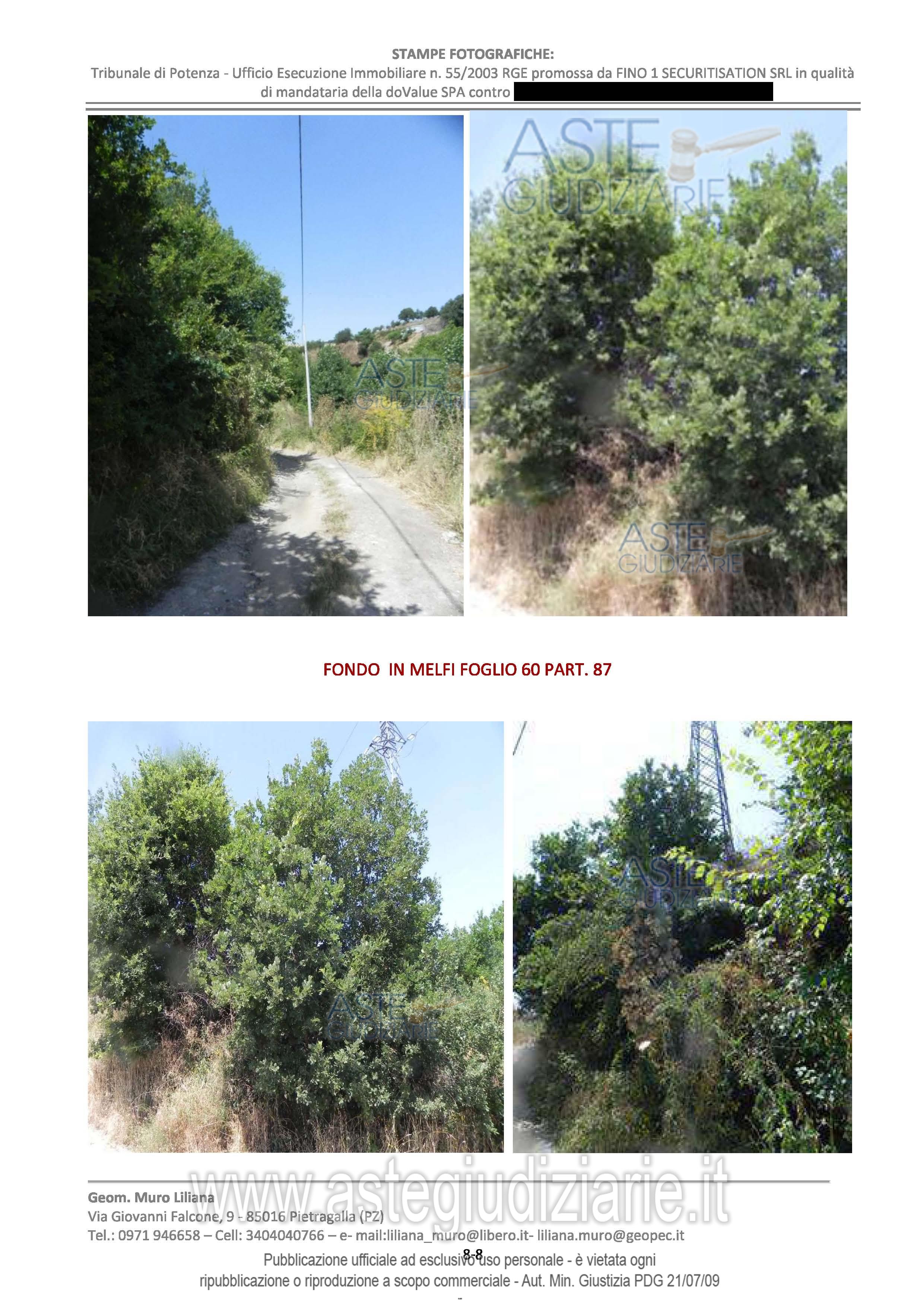 Custode Giudiziario: Avv. Antonio Calice - Email "studiocalice@virgilio.it"; Tel. 0972/720015; Cell. 335/6090455.
