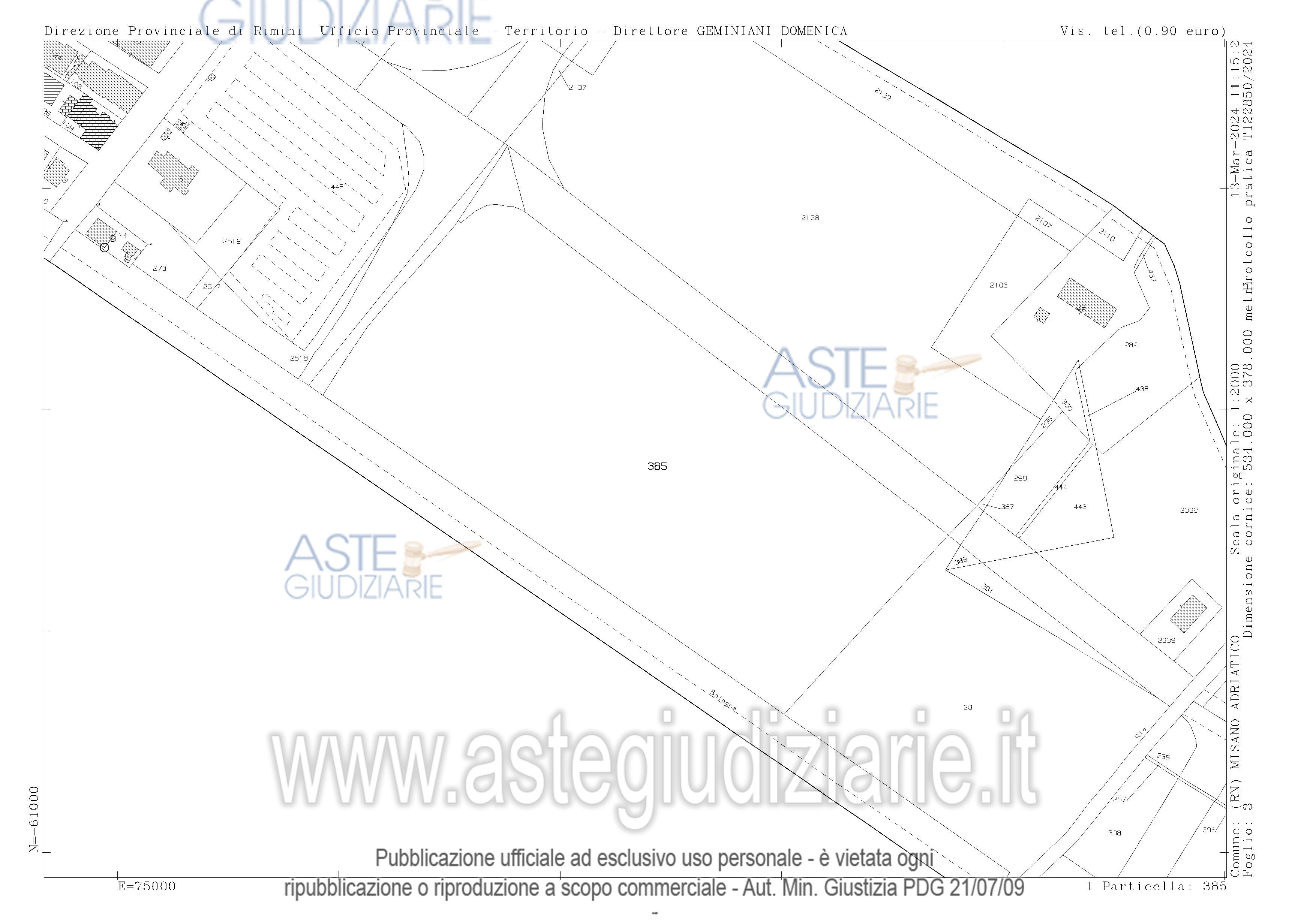 Vendita all'asta Senza incanto, con gara telematica asincrona - LOTTO UNICO:  Piena proprietà di vasto appezzamento di terreno frontistante la spiaggia, composto da due blocchi di terreno separati da una pubblica via avente una superficie catastale complessiva di catastali mq. 88.348. Prezzo base € 2.187.000,00 (offerta minima € 1.640.250,00). Data inizio operazioni di vendita: 12/11/2025 ore 09:30. Professionista delegato alla vendita Avv. Massimo Battistini - Email "avvocatobattistini@gmail.com"; Cell. 3407626575. Custode Giudiziario  Avv. Massimo Battistini - Email "avvocatobattistini@gmail.com"; Cell. 3407626575.  Rif. Tribunale di Rimini - Espropriazione immobiliare (cartabia) n. 110/2023