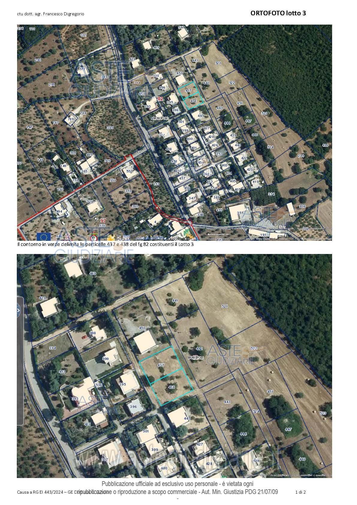 Vendita all'asta Senza incanto, con gara telematica asincrona - LOTTO 3: Piena proprietà del terreno edificabile di 1.200 mq. Prezzo base € 34.500,00 (offerta minima € 25.875,00). Data inizio operazioni di vendita: 14/05/2026 ore 10:00. Giudice Dott. Chiara Cutolo. Professionista delegato alla vendita Avv. Rosa Rella - Email "rossella_rella@yahoo.it". Custode Giudiziario Avv. Rosa Rella - Email "rossella_rella@yahoo.it". Rif. Tribunale di Bari - Espropriazione immobiliare (cartabia) n. 443/2024