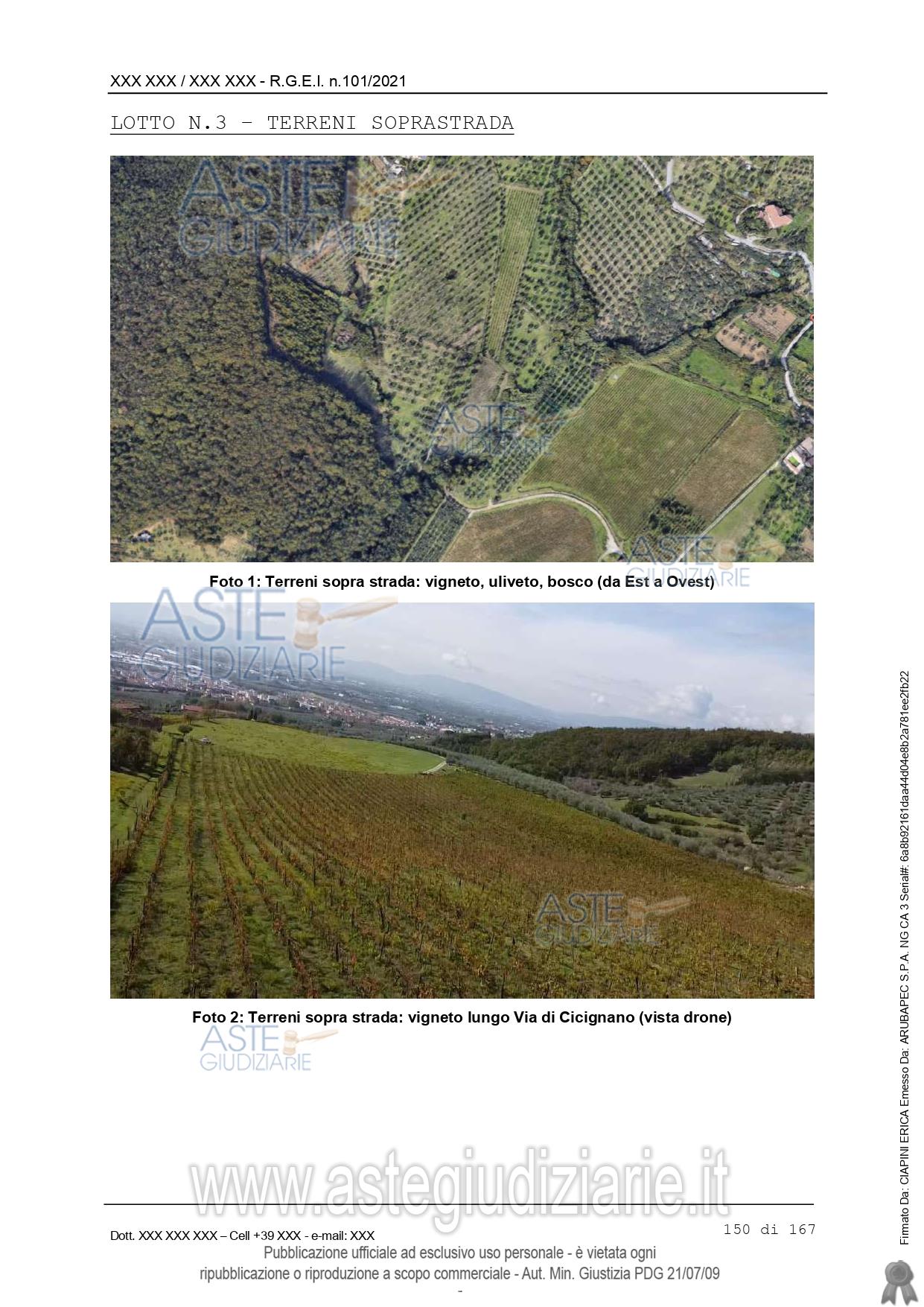 Vendita all'asta Senza incanto, con gara telematica sincrona - LOTTO 3: LOTTO 3: Piena proprietà di appezzamenti di terreno agricolo, in parte coltivati con uliveti e vigneti ed in parte incolti e con zone boschive, di forma irregolare e giacitura in parte in pendenza, della superficie catastale complessiva di mq. 101.360. Prezzo base € 119.940,00 (offerta minima € 89.955,00). Data vendita 13/05/2026 ore 10:00. Giudice Elisabetta Donelli. Professionista delegato alla vendita Not. Gaia Nardone - Email "gaianardone@notariato.it"; Tel. 0574611242. Custode Giudiziario Pietro De Bernardi - Email "pratoimmobiliari@isveg.it"; Tel. 057424123. Rif. Tribunale di Prato - Esecuzione immobiliare post legge 80 n. 101/2021