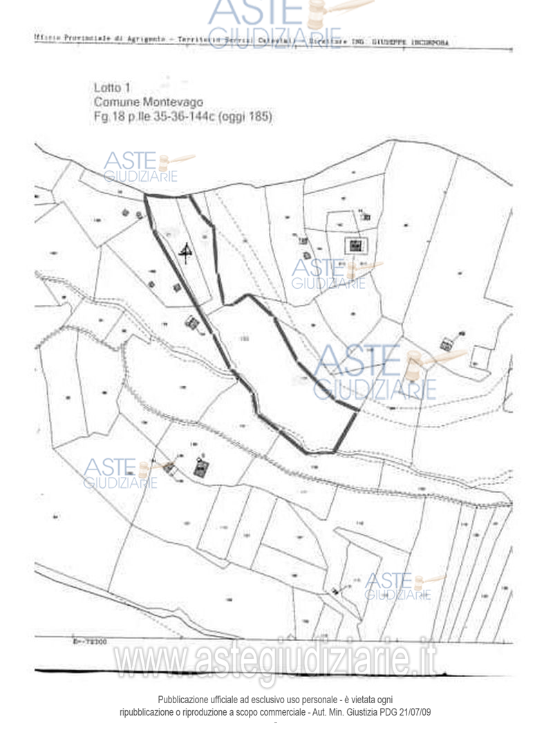 LOTTO 1: Droit de propriété pour la part équivalente à ½ de l'ensemble du terrain en grande partie non cultivé et avec quelques oliviers sporadiques, situé dans la Contrada Grotta-Serafino-Portella, à environ 2,70 km à l'ouest du centre de Montevago. Il est à noter qu'une partie de la parcelle 36 est actuellement occupée par la voirie. Ultimo prezzo base € 1.000,00 (offerta minima € 750,00). Vente en attente de l’émission d’un avis nouveau. Giudice Valentina Stabile. Curatore Giacomo Campo. Rif. Tribunale di Sciacca - Fallimentare (nuovo rito) n. 4/2012