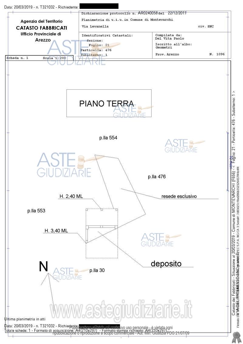 Vendita all'asta Senza incanto, con gara telematica sincrona mista - LOTTO UNICO: piena proprietà su appezzamento di terreno edificabile con annessa porzione di tettoia agricola, nonché di una capanna costituita da pannelli prefabbricati, posti in Comune di Montevarchi (AR), frazione di Levanella (in prossimità della Via del Pateresso). Il lotto è identificato come lotto “14/B” nel Piano Attuativo, relativo all’area di trasformazione AT_R36 “Valdilago”, della superficie complessiva di mq 1.112,00 , circa ed una superficie utile lorda di mq 986. Prezzo base € 22.650,00 (offerta minima € 16.987,00). Data vendita 29/01/2026 ore 09:00. Giudice Elisabetta Rodinò Di Miglione. Professionista delegato alla vendita Avv. Barbara Rossi - Email "barbararossi.avv@gmail.com"; Cell. 3470072193; Tel. 0575041800. Custode Giudiziario Avv. Istituto Vendite Arezzo - Siena - Email "visite.ivg@gmail.com"; Cell. 3397337017; Tel. 0577318111. Rif. Tribunale di Arezzo - Esecuzione immobiliare post legge 80 n. 158/2018