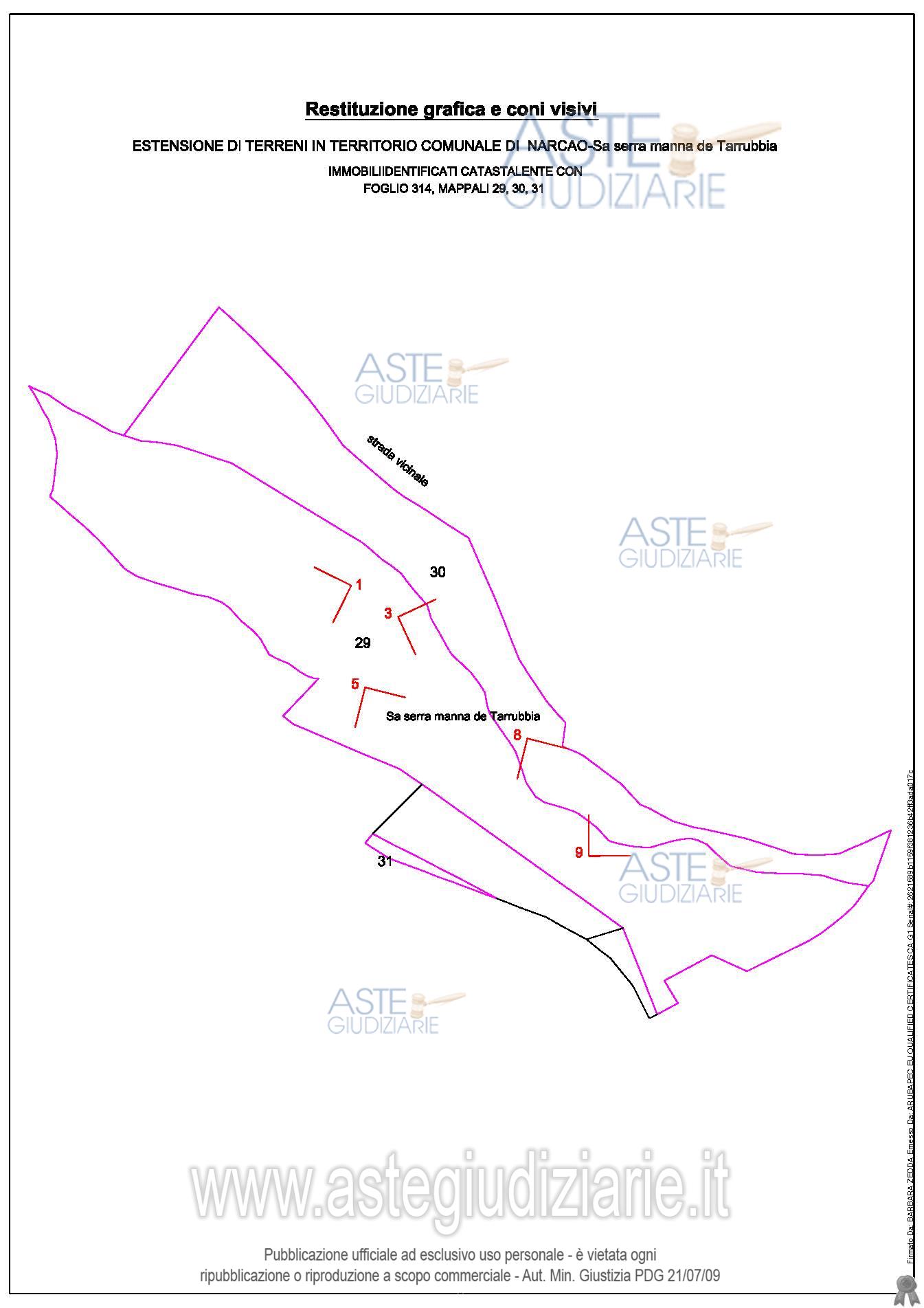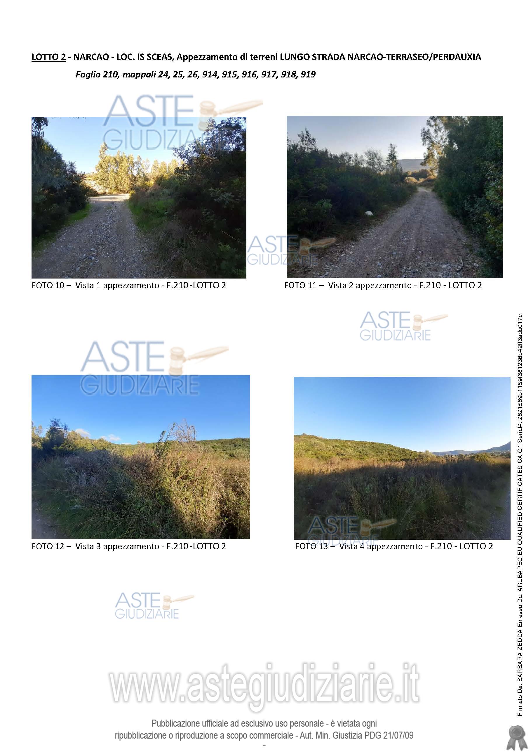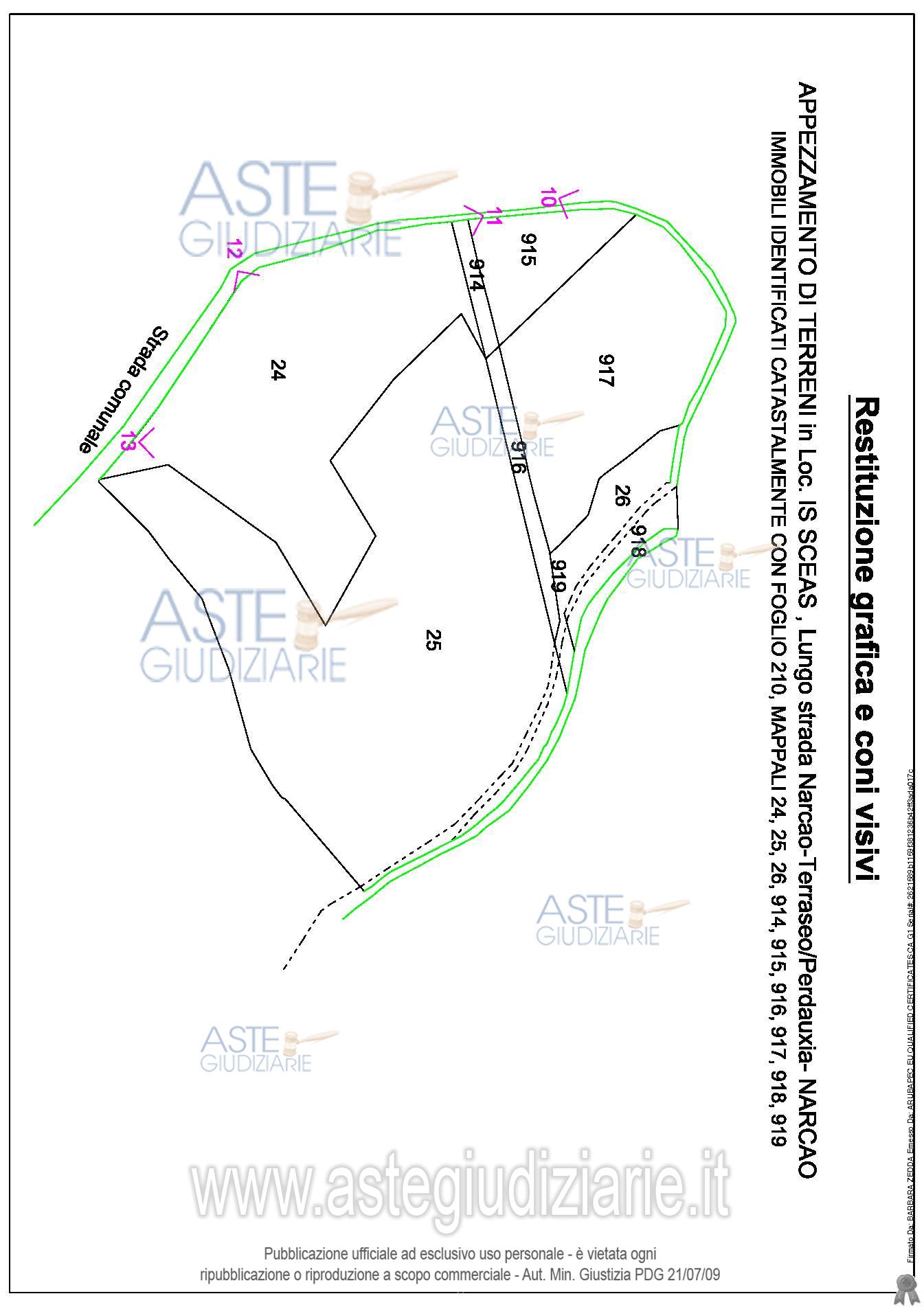 Vendita all'asta Senza incanto, con gara telematica asincrona - LOTTO 2: Lungo Strada Narcao-Terraseo/Perdauxia quota pari a all’intero del diritto di proprietà su appezzamento costituito da 8 terreni agricoli. Prezzo base € 17.904,00 (offerta minima € 13.428,00). Data inizio operazioni di vendita: 09/06/2026 ore 09:00. Giudice Francesco De Giorgi. Professionista delegato alla vendita Giuditta Grilletti - Email "ufficiouniconotai@pec.it"; Tel. 07060222574. Custode Giudiziario Ivg Cagliari - Email "ivg.visiteimmobili@tiscali.it"; Tel. 0702299036. Rif. Tribunale di Cagliari - Esecuzione immobiliare post legge 80 n. 471/2009
