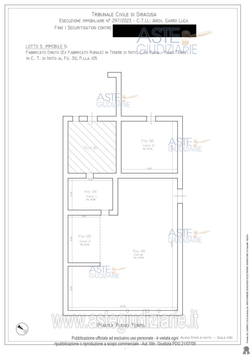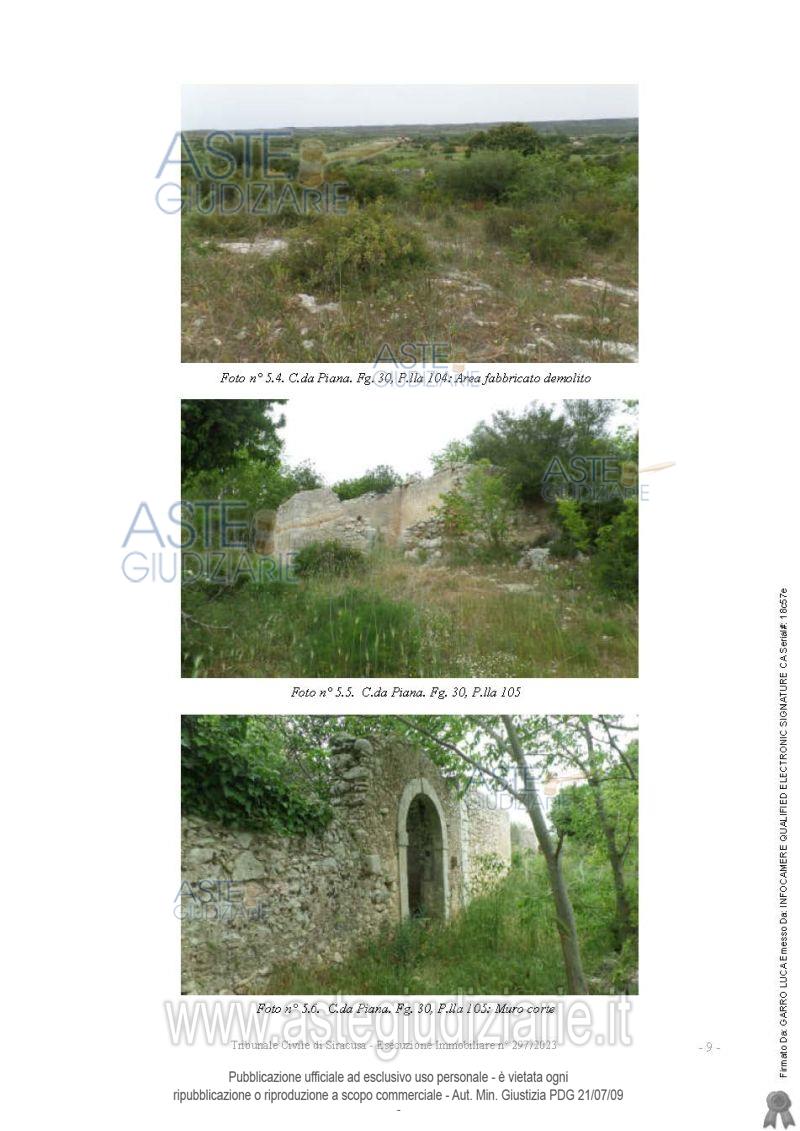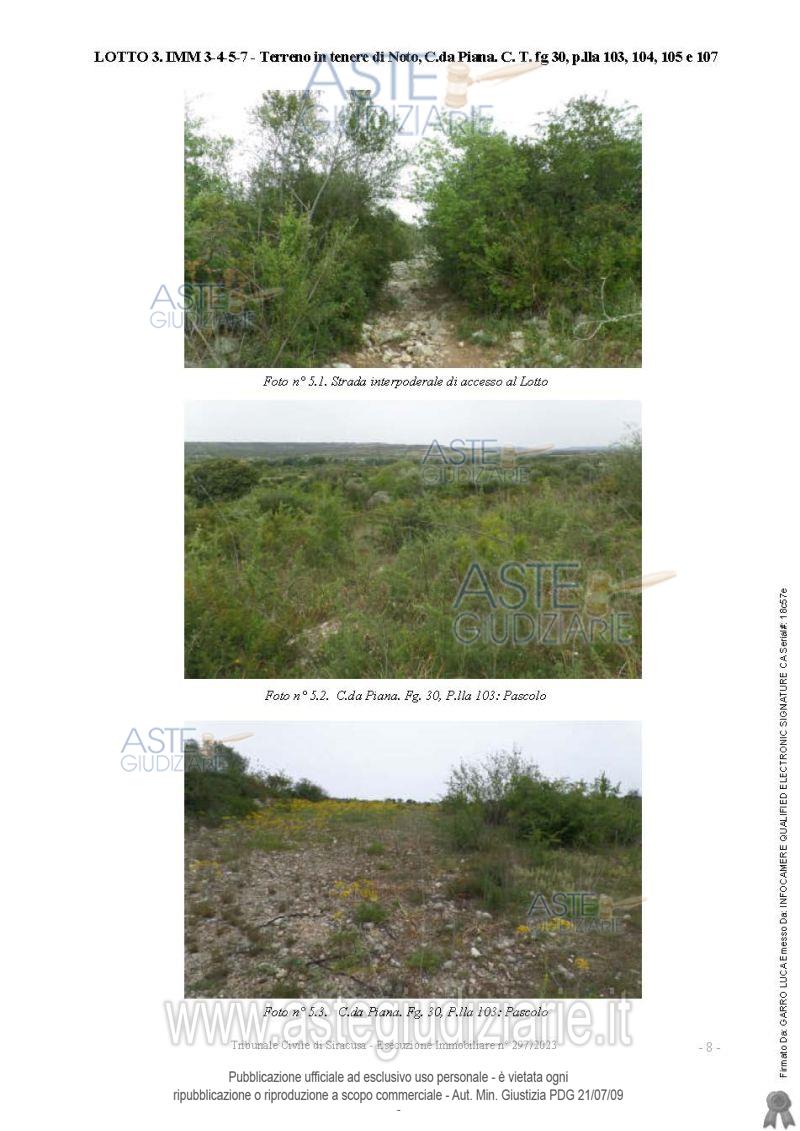 Vendita all'asta Senza incanto, con gara telematica sincrona mista - LOTTO 2: LOTTO 2: Terreno in Noto (SR), C.da Piana, C.T. foglio 30 p.lla 103, mq 73.100, pascolo, p.lla 104, mq 150, area di fabbricato demolito (ex fabbricato rurale), p.lla 105, mq 400, fabbricato diruto (ec fabbricato rurale) e p.lla 107, mq 22 fabbricato diruto (ex fabbricato rurale). Prezzo base d’asta € 21.975,00. Valore minimo dell'offerta a pena di inefficacia della stessa ex art. 571 c.p.c. € 16.481,25. Minima offerta in aumento € 2.000,00. Prezzo base € 21.975,00 (offerta minima € 16.481,25). Data vendita 16/01/2026 ore 12:00. Professionista delegato alla vendita Avv. Tania Cavalieri - Email "avv.taniacavalieri@gmail.com". Custode Giudiziario Avv. Tania Cavalieri - Email "avv.taniacavalieri@gmail.com". Rif. Tribunale di Siracusa - Espropriazione immobiliare (cartabia) n. 297/2023