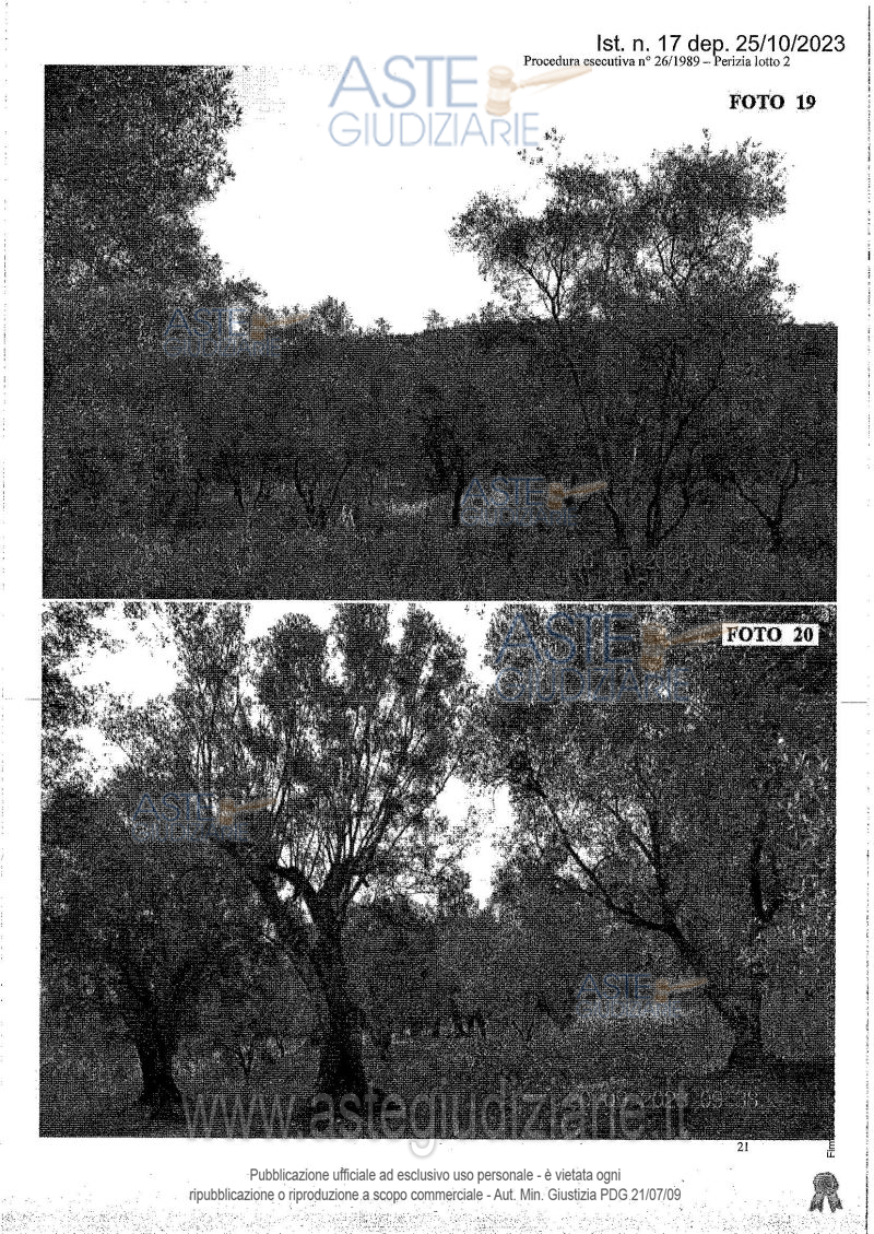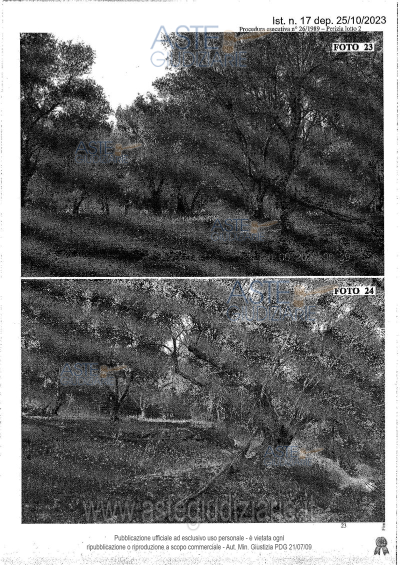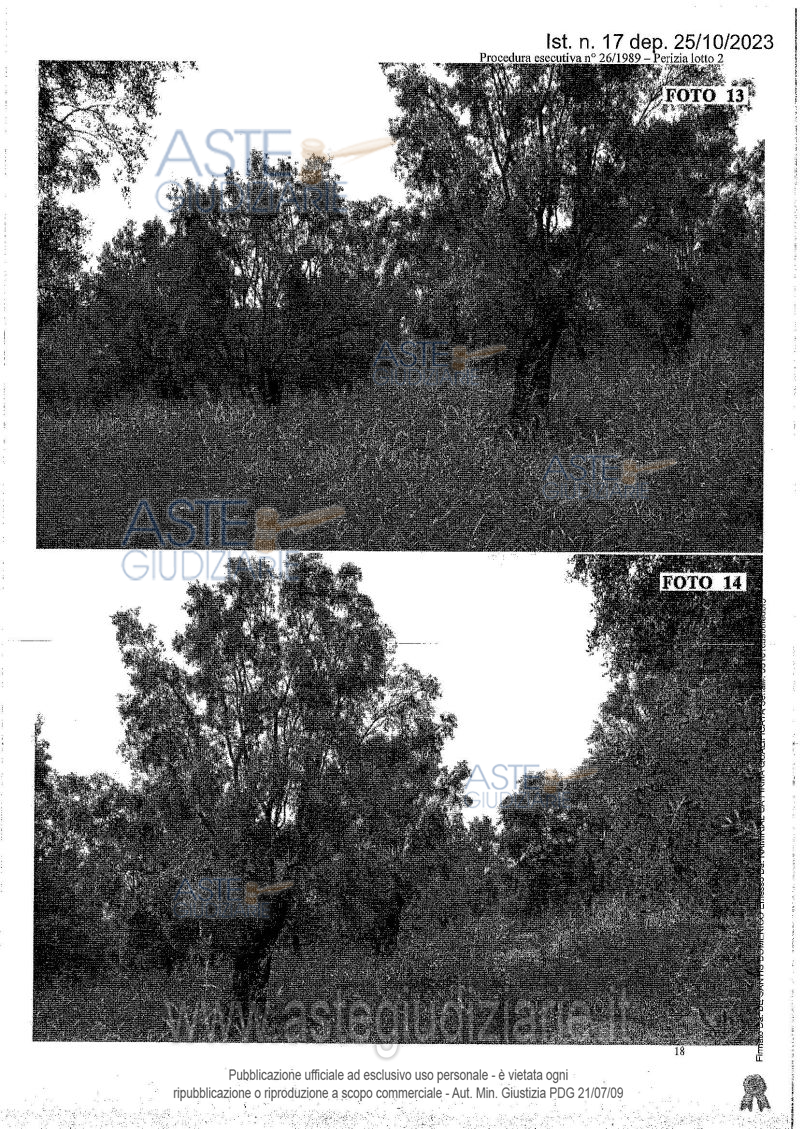 Vendita all'asta Senza incanto, con gara telematica asincrona - LOTTO 2: Fondo agricolo di superficie complessiva pari a 214.310 mq. 11 fondo è ubicato a circa 1 Km da Castellace Nuovo; per potervi accedere, bisogna attraversare dei suoli di proprietà di terzi. Nel predio vi sono 138.980 mq di Uliveto, 16.100 mq di Pascolo, 36.620 mg di Pascolo Arborato e 22.610 mq invasi dal Torrente Calabrò. Prezzo base € 56.850,00 (offerta minima € 42.637,50). Data inizio operazioni di vendita: 19/03/2026 ore 10:30. Giudice Dott. Marta Caineri. Professionista delegato alla vendita Not. Maria Tripodi - Tel. 0966940987. Custode Giudiziario Avv. Antonio Guerci - Email "antoguerci@libero.it"; Tel. 3474951433. Rif. Tribunale di Palmi - Esecuzione immobiliare post legge 80 n. 26/1989