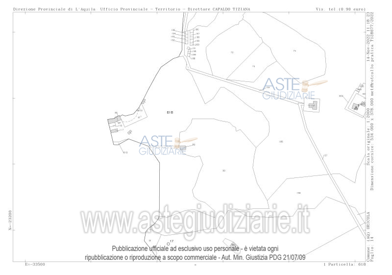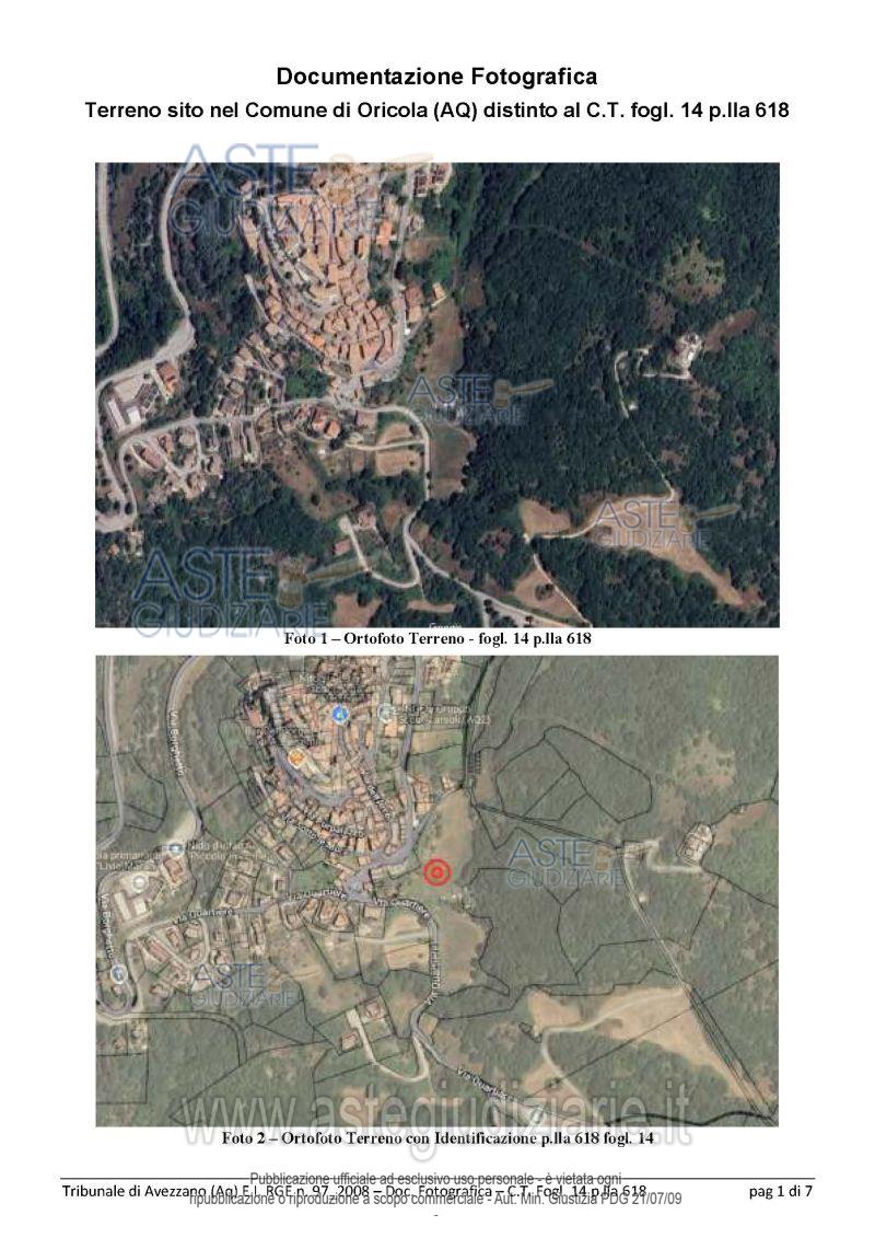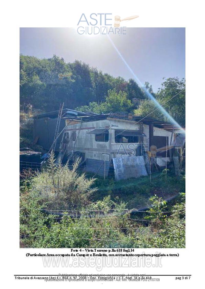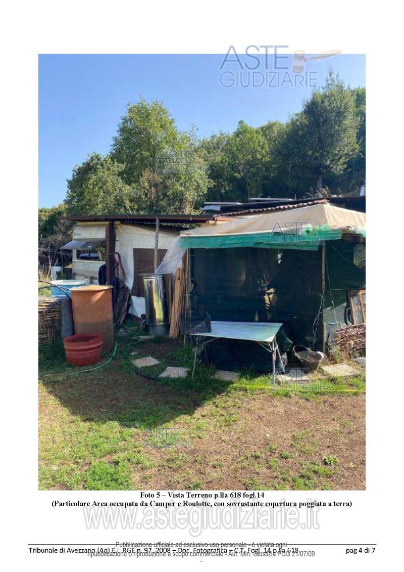 Vendita all'asta Senza incanto, con gara telematica asincrona - LOTTO 9: Terreno censito al fg. 14, p.lla 618, seminativo, classe 3, mq. 20.602,00, ricadente per il 72% circa in Zona E1 (agricola di rispetto ambientale), per il 15% circa in zona destinata a parcheggi, per l'8% circa in aree per istruzione ed interesse comune e per il restante 5% circa in zona B1 (completamento intensivo). Prezzo base € 41.846,40 (offerta minima € 31.384,80). Data inizio operazioni di vendita: 30/10/2025 ore 15:00. Professionista delegato alla vendita Avv. Roberto Walter Berardini - Email "roberto.berardini@virgilio.it"; Cell. 3490608911; Tel. 0863444247. Custode Giudiziario Avv. Roberto Walter Berardini - Email "roberto.berardini@virgilio.it"; Cell. 3490608911; Tel. 0863444247. Rif. Tribunale di Avezzano - Esecuzione immobiliare post legge 80 n. 97/2008