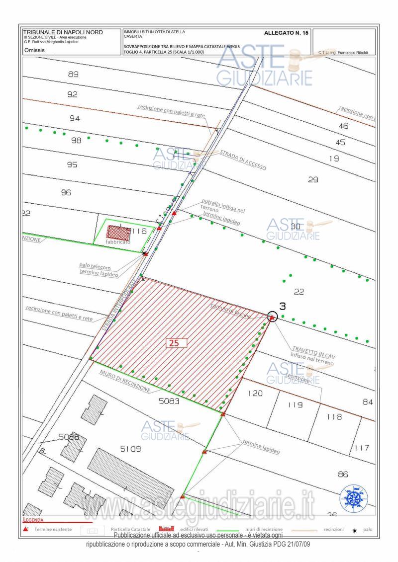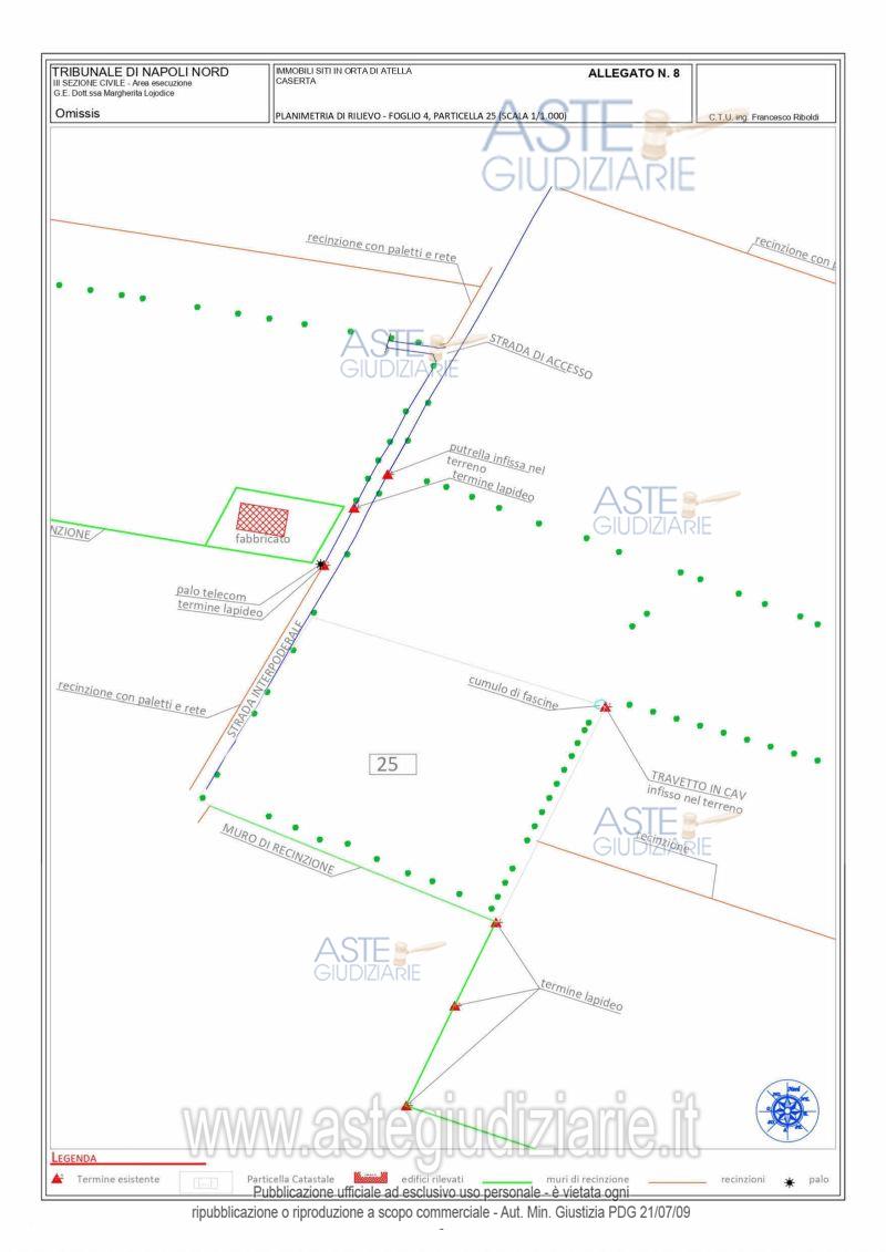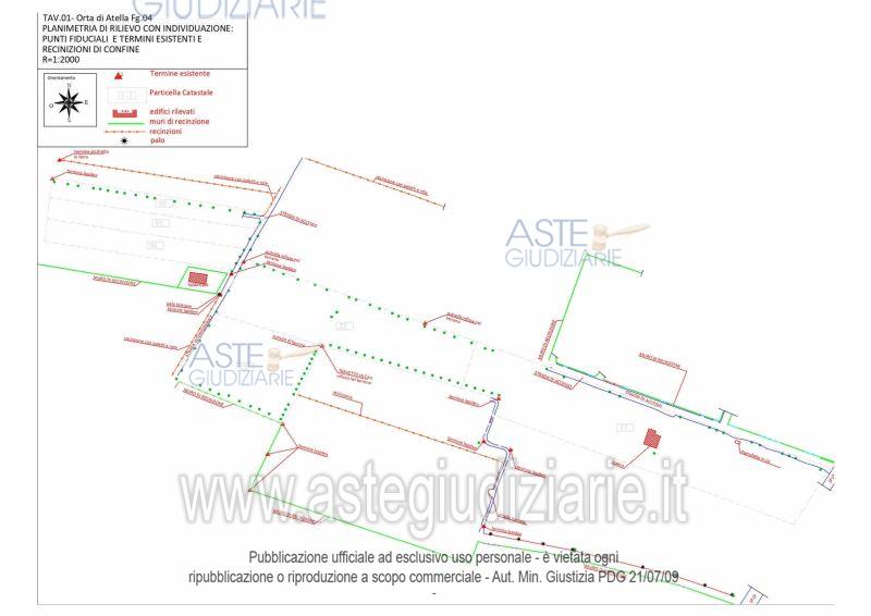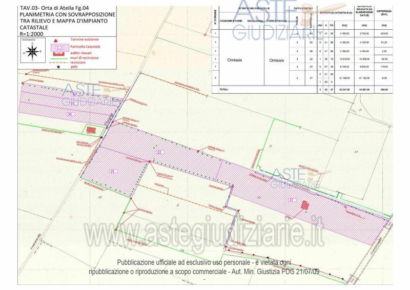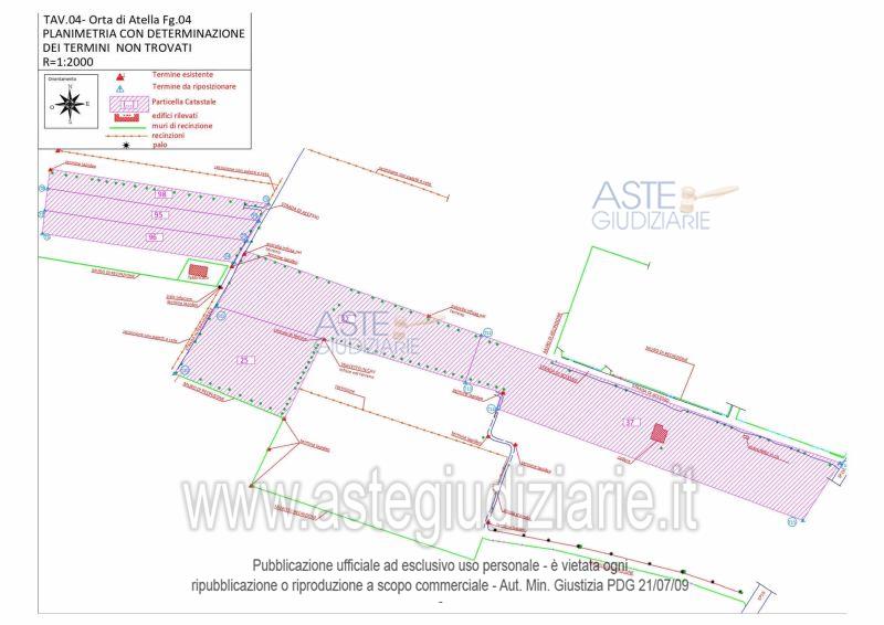 Vendita all'asta Senza incanto, con gara telematica asincrona - LOTTO 55: Piena ed intera proprietà di un terreno ubicato nella zona nord della periferia di Orta di Atella a poca distanza dalla frazione di Casapuzzano. Si tratta, nello specifico, di un terreno caratterizzato da una forma regolare della superficie di circa 8.630,00 mq caratterizzato dalla presenza di un filare di alberi ad alto fusto lungo il perimetro, privo di recinzione che lo separi dal terreno contiguo e sprovvisto di fonti di irrigazione . Prezzo base € 43.560,00 (offerta minima € 32.670,00). Data inizio operazioni di vendita: 19/11/2025 ore 15:00. Professionista delegato alla vendita Avv. Giorgia Viola - Email "avv.giorgiaviola@libero.it"; Tel. 08118858628. Custode Giudiziario Avv. Giorgia Viola - Email "avv.giorgiaviola@libero.it"; Tel. 08118858628. Rif. Tribunale di Napoli Nord - Esecuzione immobiliare post legge 80 n. 627/2015
