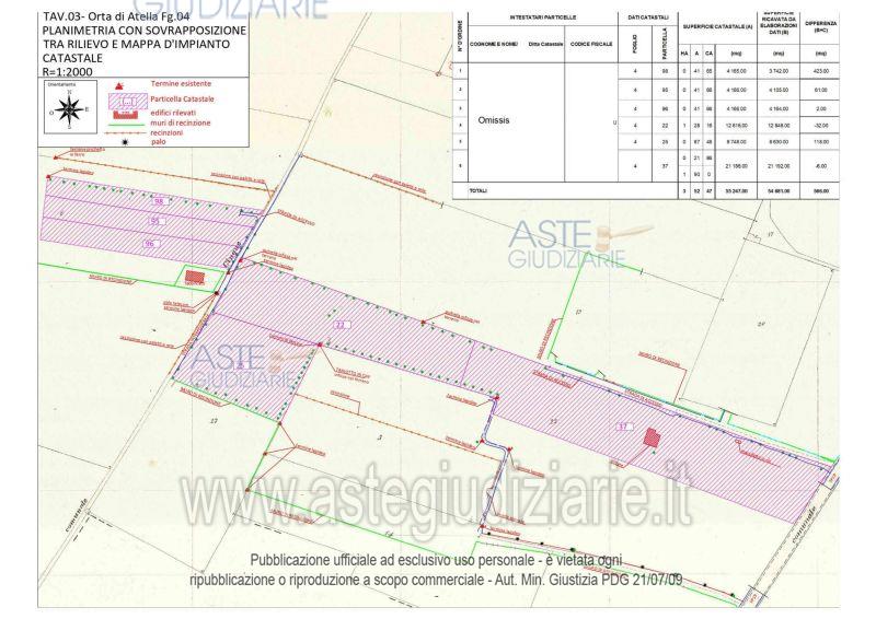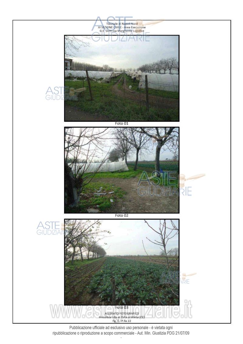 Vendita all'asta Senza incanto, con gara telematica asincrona - LOTTO 56: Piena ed intera proprietà di tre terreni di natura agricola ubicato nella zona nord della periferia di Orta di Atella a poca distanza dalla frazione di Casapuzzano. Nello specifico, i terreni sono tra loro attigui e indivisi, presentano una forma regolare e misurano complessivamente circa 12.000,00 mq. Prezzo base € 65.840,00 (offerta minima € 49.380,00). Data inizio operazioni di vendita: 19/11/2025 ore 15:00. Professionista delegato alla vendita Avv. Giorgia Viola - Email "avv.giorgiaviola@libero.it"; Tel. 08118858628. Custode Giudiziario Avv. Giorgia Viola - Email "avv.giorgiaviola@libero.it"; Tel. 08118858628. Rif. Tribunale di Napoli Nord - Esecuzione immobiliare post legge 80 n. 627/2015