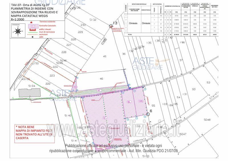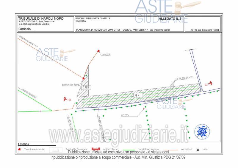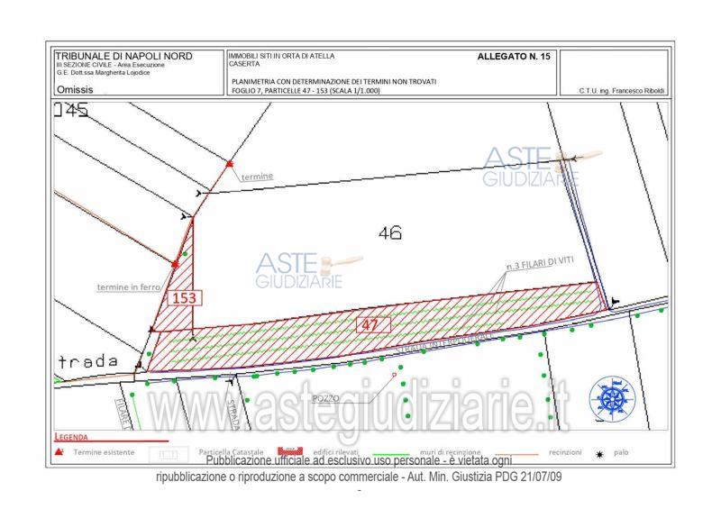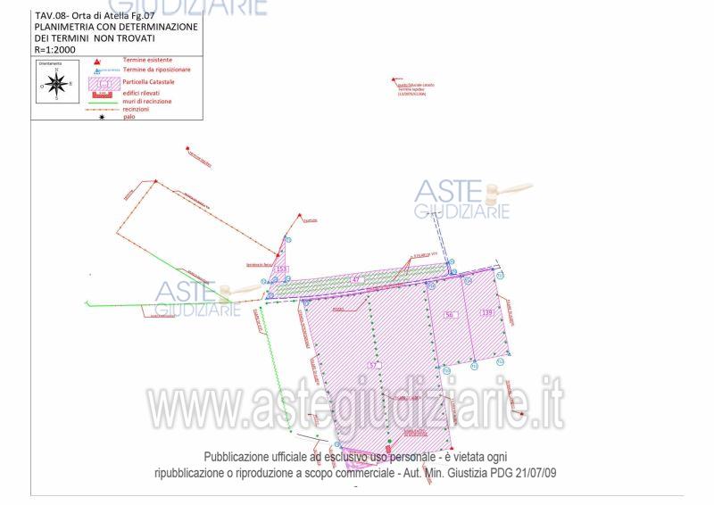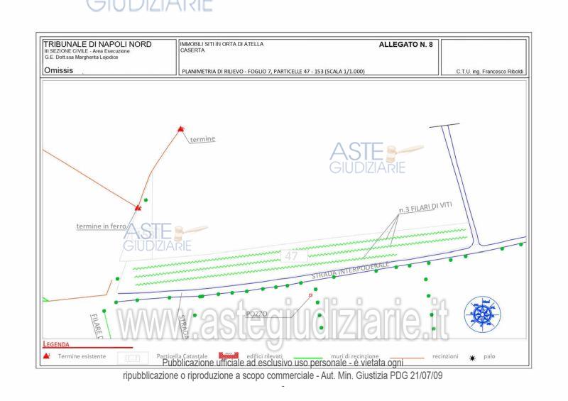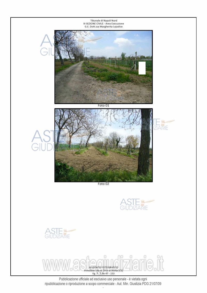 Vendita all'asta Senza incanto, con gara telematica asincrona - LOTTO 58: Piena ed intera proprietà di due terreni destinati a colture seminative ubicati nella zona nord della periferia di Orta di Atella a poca distanza dalla frazione di Casapuzzano. Nello specifico, i terreni presentano una forma regolare, sono tra loro attigui e sono collegati alla strada interpoderale che costeggia la particella 47 sul fronte sud da una stradina in terra battuta. Risultano, inoltre, privi di fonti di irrigazione.La misura complessiva è di circa 4.465,00 mq. Prezzo base € 23.600,00 (offerta minima € 17.700,00). Data inizio operazioni di vendita: 19/11/2025 ore 15:00. Professionista delegato alla vendita Avv. Giorgia Viola - Email "avv.giorgiaviola@libero.it"; Tel. 08118858628. Custode Giudiziario Avv. Giorgia Viola - Email "avv.giorgiaviola@libero.it"; Tel. 08118858628. Rif. Tribunale di Napoli Nord - Esecuzione immobiliare post legge 80 n. 627/2015