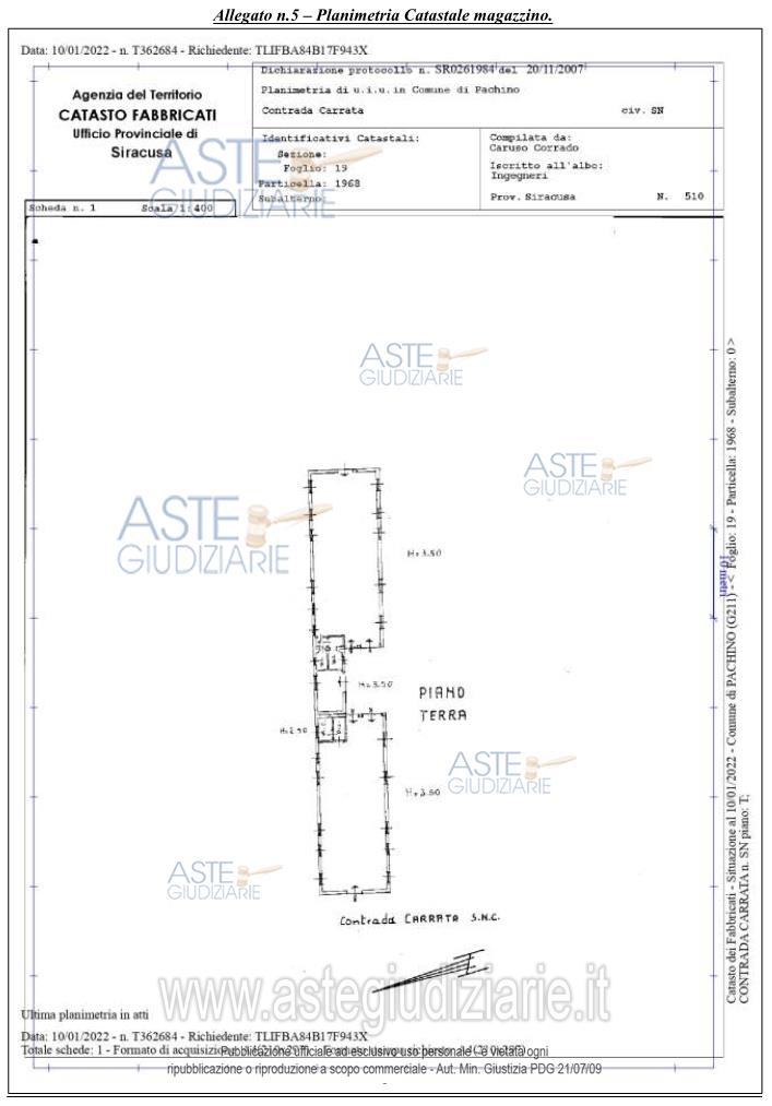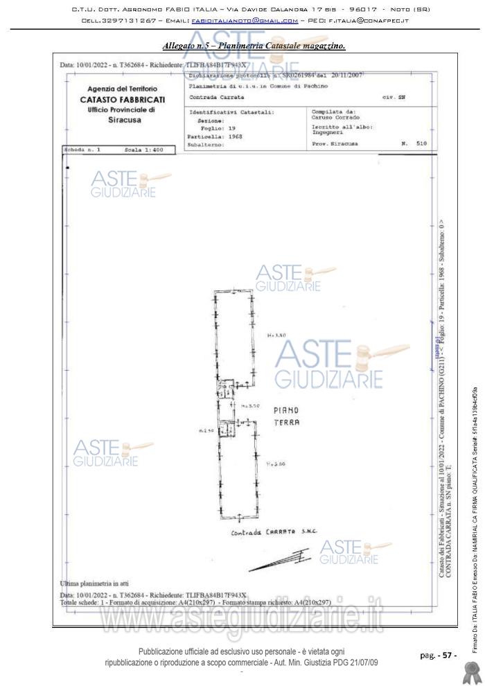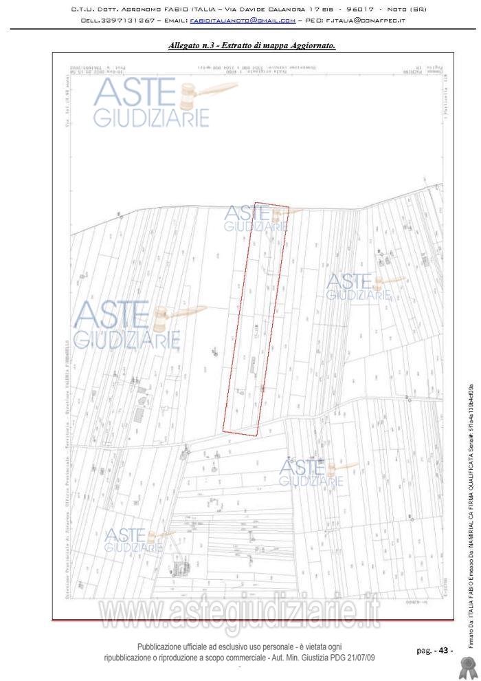 Vendita all'asta Senza incanto, con gara telematica sincrona mista - LOTTO UNICO: Terreno Agricolo di ettari 01.49.27, magazzino di mq.346,00 e costruzione non catastata. Prezzo base € 40.105,00 (offerta minima € 30.079,00). Data vendita 20/11/2025 ore 10:00. Professionista delegato alla vendita Avv. Cesare Amato - Email "cesareamato@stlegaleamato.it"; Cell. 3396500766; Tel. 093130212. Custode Giudiziario Avv. Cesare Amato - Email "cesareamato@stlegaleamato.it"; Cell. 3396500766; Tel. 093130212. Rif. Tribunale di Siracusa - Esecuzione immobiliare post legge 80 n. 166/2021