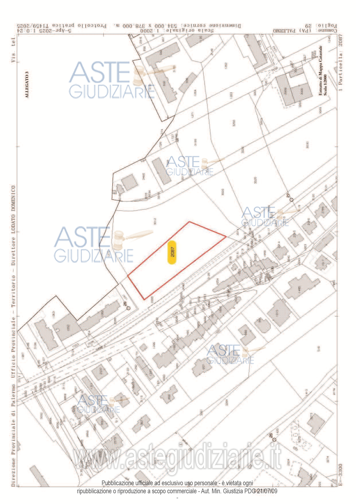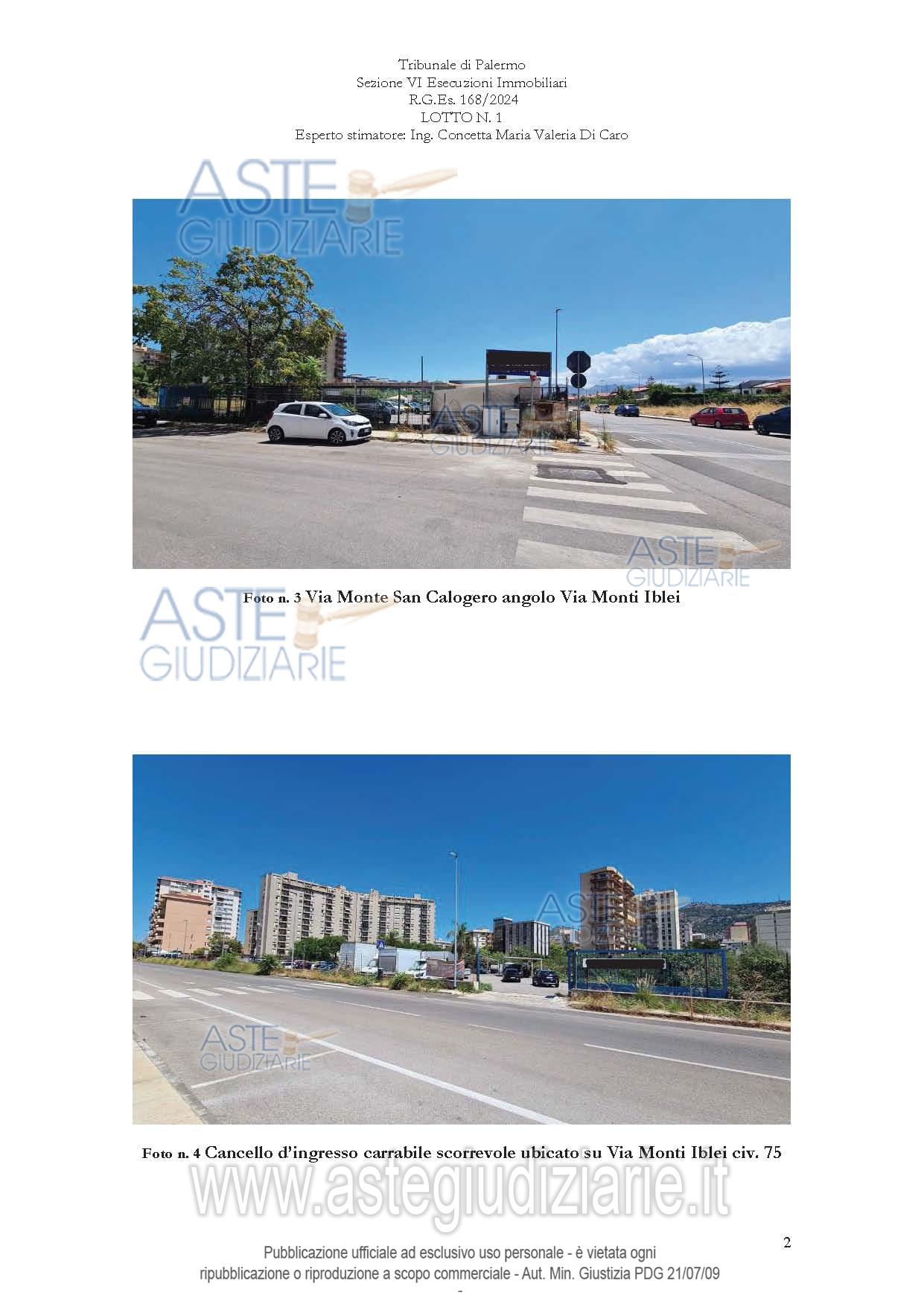 Vendita all'asta Senza incanto, con gara telematica sincrona mista - LOTTO 1: Piena proprietà di un lotto di terreno, ubicato in Palermo ad angolo tra la Via Monte San Calogero civ. 32 e la Via Monti Iblei civ. 75/M., censito al C.T. del Comune di Palermo, al fg. 29, p.lla 2087 (ex 193/a), qualità mandarineto, classe 2, superficie mq 4.070,00, reddito dominicale € 166,06, reddito agrario € 54,65. Prezzo base € 135.500,00 (offerta minima € 102.000,00). Data vendita 11/06/2026 ore 09:00. Professionista delegato alla vendita Avv. Vincenzo Di Lorenzo - Email "dilorenzostudiolegale@gmail.com"; Tel. 3383049781. Custode Giudiziario Avv. Vincenzo Di Lorenzo - Email "dilorenzostudiolegale@gmail.com"; Tel. 3383049781. Rif. Tribunale di Palermo - Espropriazione immobiliare (cartabia) n. 168/2024