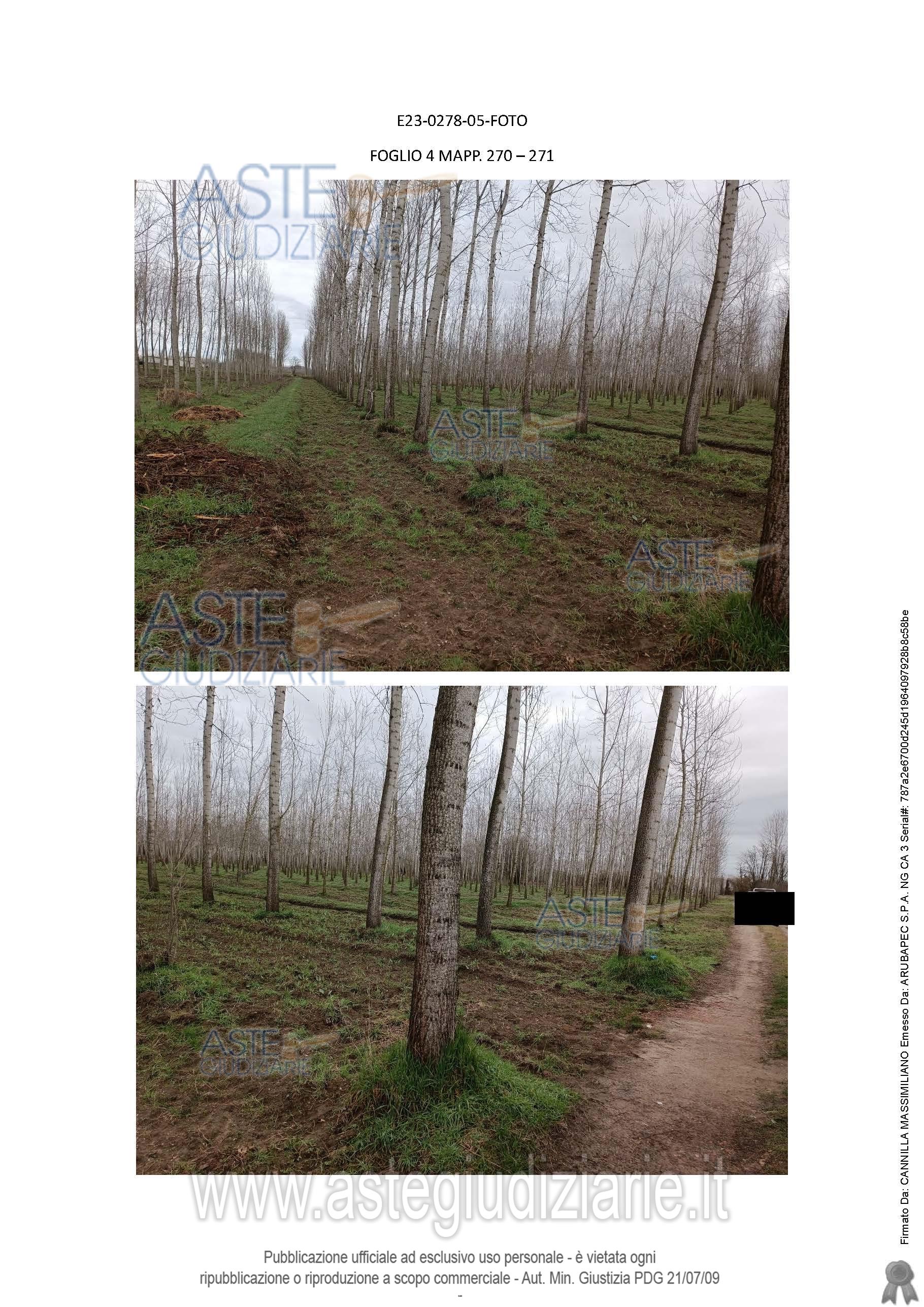 Vendita all'asta Senza incanto, con gara telematica asincrona - LOTTO 5: Appezzamenti di terreno agricolo, con accesso da Via Marinino, censiti a Catasto Terreni come segue:foglio 2, mappale 121, di are 69.13, R.D. Euro 117,82, R.A. Euro 42,84;foglio 2, mappale 128, di are 22.94, R.D. Euro 26,66, R.A. Eu-ro 14,22. Prezzo base € 4.057,92 (offerta minima € 3.043,44). Data inizio operazioni di vendita: 26/05/2026 ore 10:00. Giudice Francesca Paola Claris Appiani. Professionista delegato alla vendita Not. Luisa Cellerino - Email "lcellerino@notariato.it". Custode Giudiziario Istituto Vendite Giudiziarie Di Vigevano - Email "immobiliarivigevano@ifir.it"; Tel. 0381691137. Rif. Tribunale di Pavia - Espropriazione immobiliare (cartabia) n. 278/2023