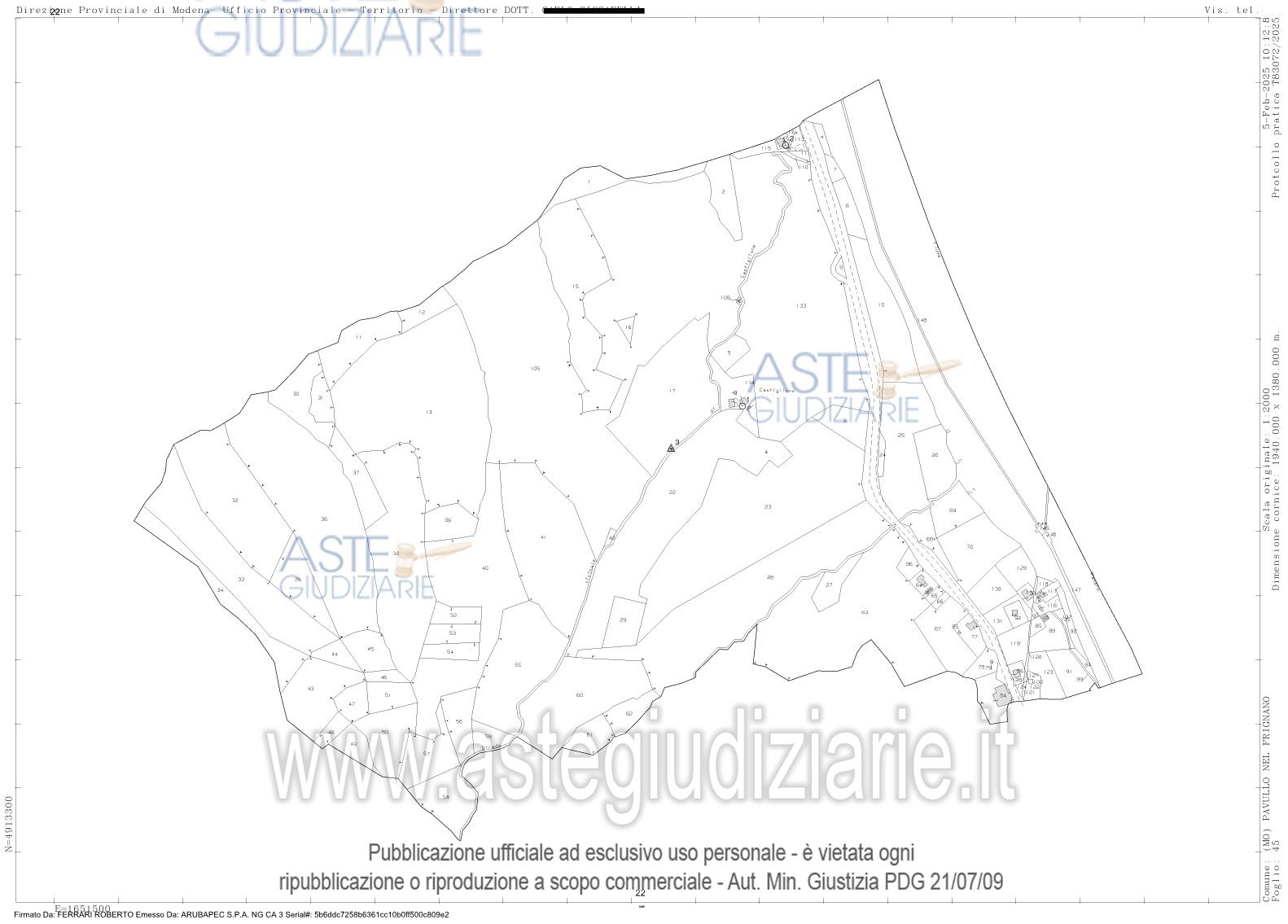 Vendita all'asta Senza incanto, con gara telematica asincrona - LOTTO 2: Appezzamenti di terreno agricolo senza sovrastanti fabbricati, distribuiti in n. 6 fogli e circa 56 mappali Catasto Terreni tra le vie Strada Vicinale, Strada Vicinale delle Borre, Rio Castagneto, Rio delle Lamuzze. I terreni sono suddivisi in seminativo, seminativo arborato, bosco ceduo, pascolo, castagneto frutto, incolto produttivo, prato, per un totale di ha = 76.13.76. Prezzo base € 263.000,00 (offerta minima € 197.250,00). Data inizio operazioni di vendita: 28/10/2025 ore 12:00. Professionista delegato alla vendita Avv. Sonia Bulgarelli - Email "avvbulgarellisonia@gmail.com"; Cell. 3384271941; Tel. 0598341405. Custode Giudiziario Alex Manelli - Email "visiteimmobili@ivgmodena.it"; Tel. 059847301. Rif. Tribunale di Modena - Espropriazione immobiliare (cartabia) n. 103/2024