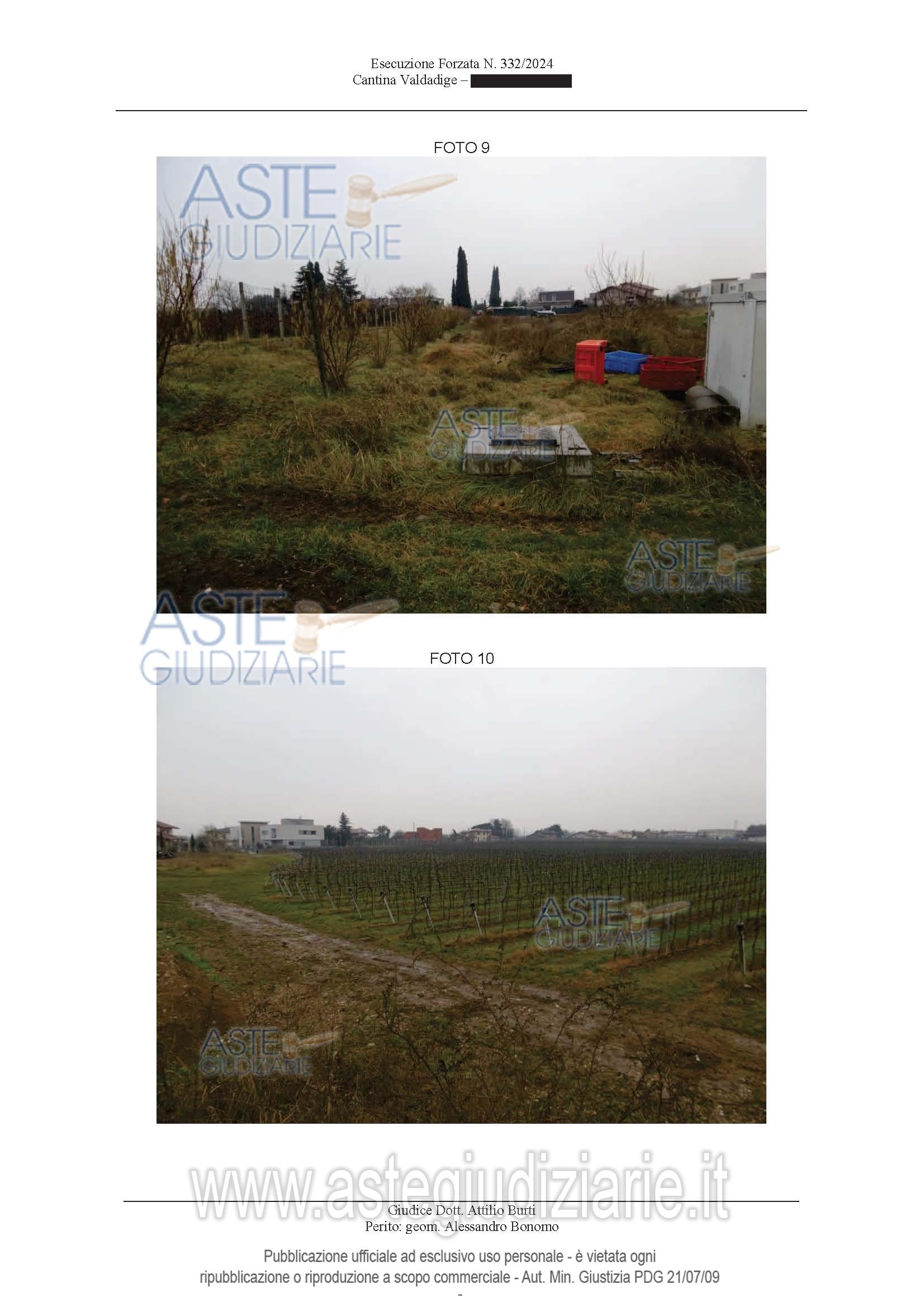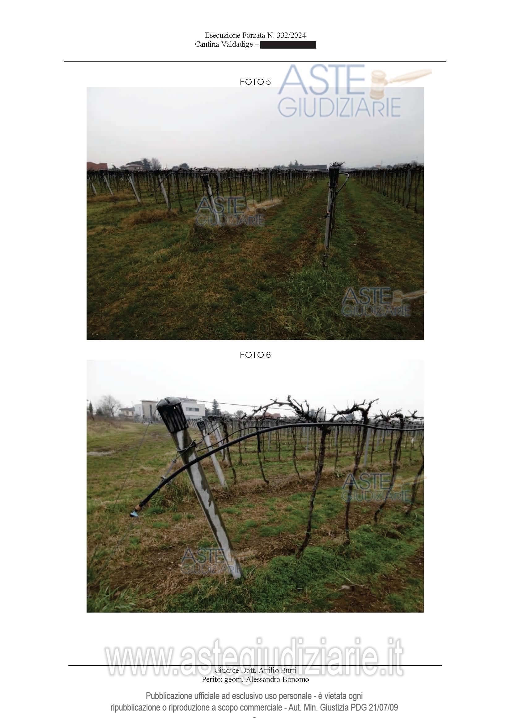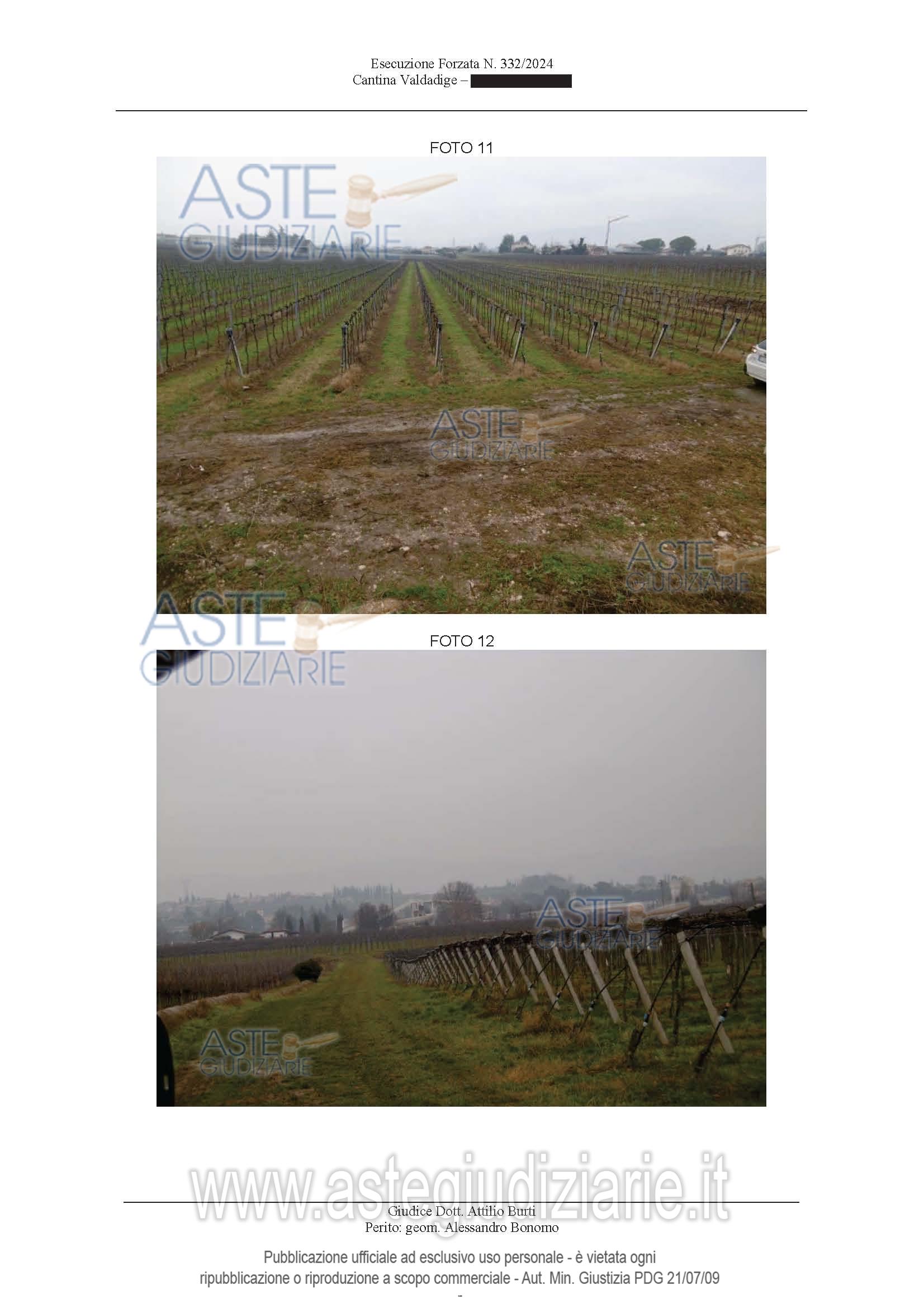 Vendita all'asta Senza incanto, con gara telematica sincrona mista - LOTTO UNICO: Pescantina(VR) accesso via Pigno, piena proprietà terreni agricoli parte vigneto e parte aree urbane, sup.24.660 mq. Si precisa che i mn 697,699 e 718 sono vigneto PinotGrigio 17.934 mq, a dimora 2017 iscritto DOC DelleVenezieBianco-PinotGrigio e IGT Verona,Trevenezie e Veneto. Da verifiche in loco e foto aeree, i mn 716,689 e parte 681 sono vigneto ca. 750 mq e formano corpo unico al vigneto principale. Le restanti aree sono improduttive o destinate a servizi agricoli, i mn 672 674 e 675 sono aree urbane. Prezzo base € 247.500,00 (offerta minima € 185.625,00). Data vendita 28/05/2026 ore 14:30. Giudice Francesco Fontana. Professionista delegato alla vendita Avv. Roberta Garzatti - Email "notes@notariato.it"; Tel. 0458006661. Custode Giudiziario Avv. Roberta Garzatti - Email "avv.robertagarzatti@gmail.com"; Tel. 3479815664. Rif. Tribunale di Verona - Espropriazione immobiliare (cartabia) n. 332/2024