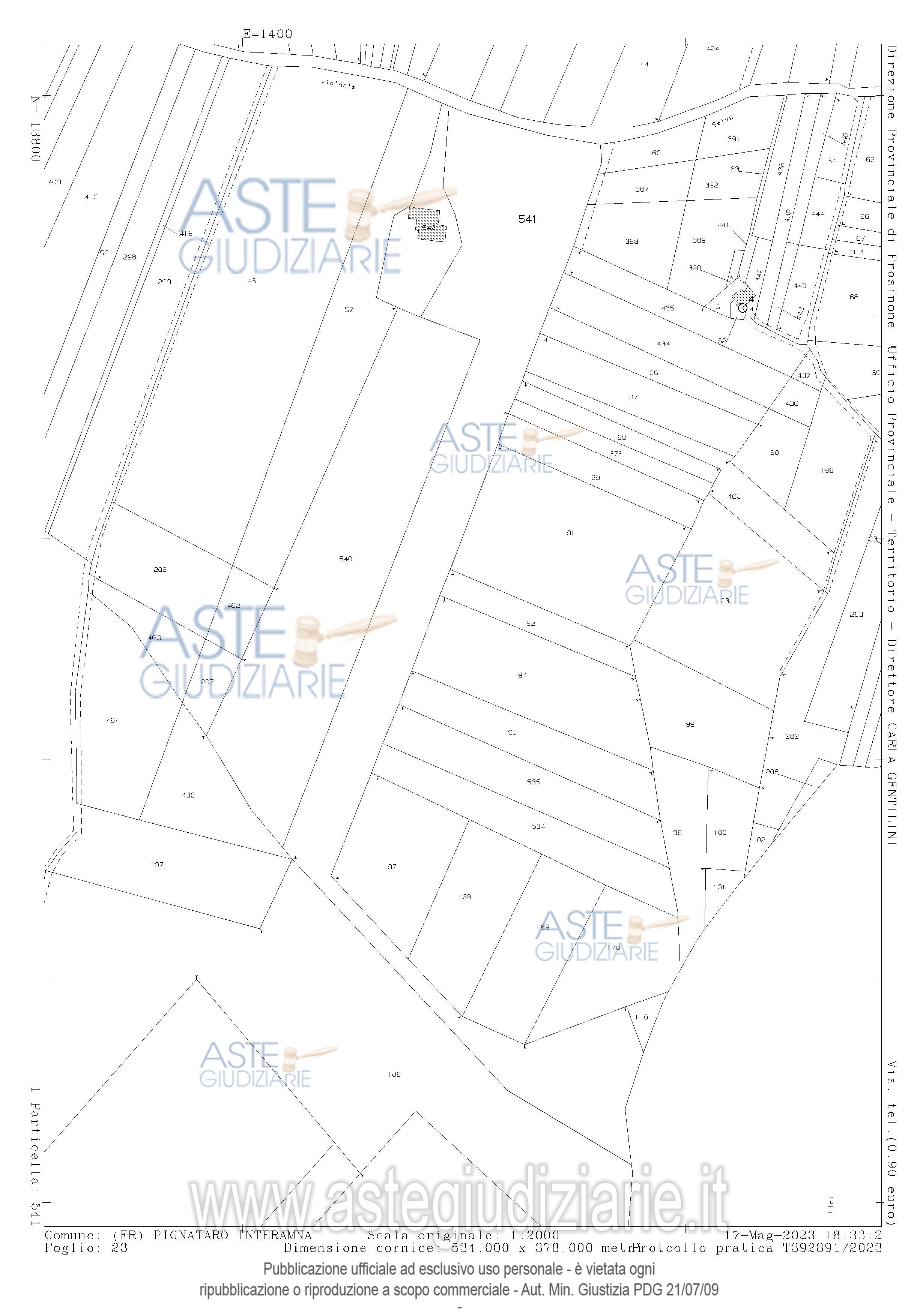 Vendita all'asta Senza incanto - LOTTO UNICO: Lotto unico: terreno in Pignataro Interamna (FR), via vicinale Selva, località Casatomola distinto in NCT del Comune medesimo al foglio 23 particelle 540 - Qualità Seminativo Cl.1 - Superficie (ha are ca) 1.04.76 Reddito agrario € 56,81 e terreno in Pignataro Interamna (FR), via vicinale Selva, località Casatomola distinto in NCT del Comune medesimo al foglio 23 particelle 541 - Qualità Seminativo Cl.1 - Superficie (ha are ca) 1.56.77 Reddito agrario € 85,01 . Prezzo base € 20.800,00 (offerta minima € 15.600,00). Data vendita 14/05/2026 ore 09:30. Professionista delegato alla vendita Avv. Chiara Ranaldi - Email "avv.chiararanaldi@libero.it"; Cell. 3482911486. Custode Giudiziario Avv. Chiara Ranaldi - Email "avv.chiararanaldi@libero.it"; Cell. 3482911486. Rif. Tribunale di Cassino - Esecuzione immobiliare post legge 80 n. 54/2015