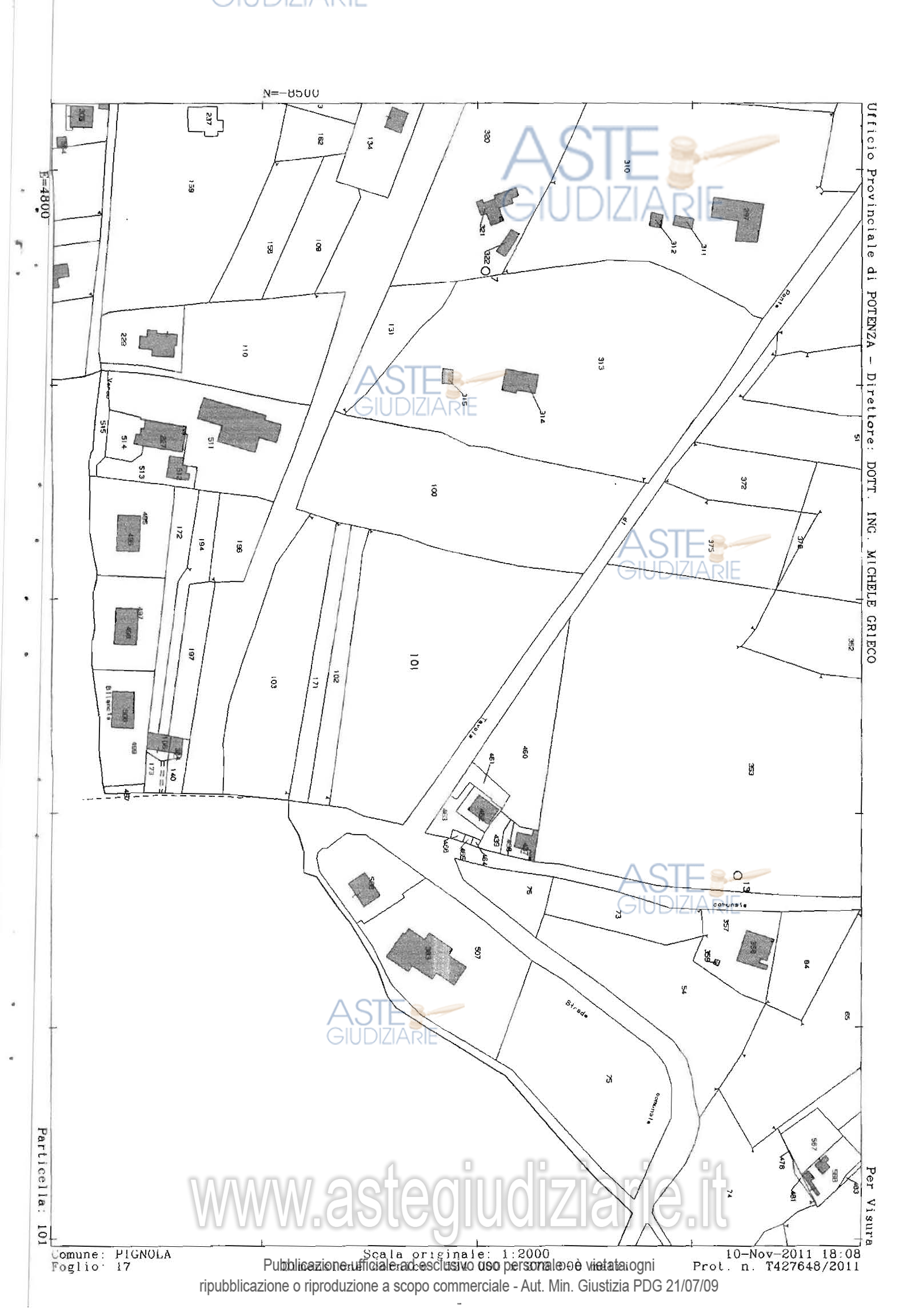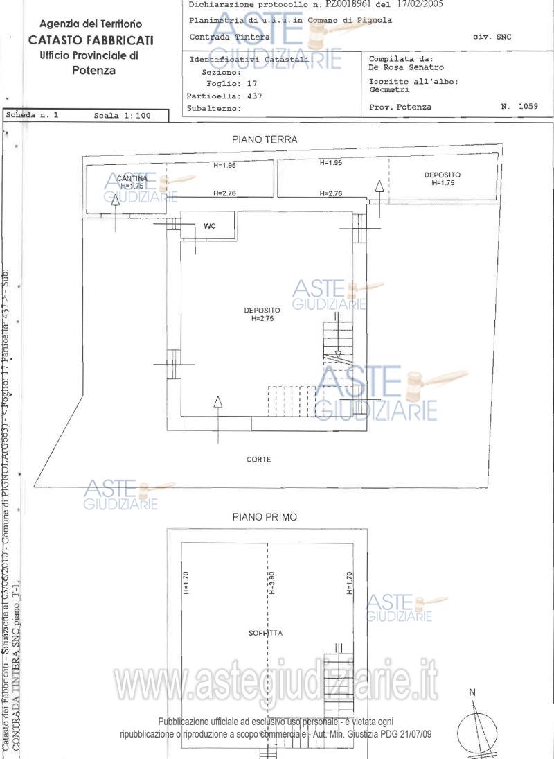 Vendita all'asta Senza incanto - LOTTO 3: Piena proprietà quota 1/1 di fabbricati e terreni siti nel Comune di Pignola (PZ), alla c.da Ponte delle Tavole riportati:al catasto fabbricati:fabbricato al Foglio 17 p.lla 437, cat. C/2, cl. 4, mq 99,al catasto terreni:Terreno seminativo irriguo al Foglio 17 p.lla 438, classe 3, ca 53,Terreno seminativo irriguo al Foglio 17 p.lla 439, classe 3, ca 51,. Prezzo base € 13.824,00 (offerta minima € 10.368,00). Data vendita 24/03/2026 ore 16:30. Professionista delegato alla vendita Avv. Antonio Casulli - Email "avv.antonio.casulli@gmail.com"; Cell. 3356647447; Tel. 0971443408. Custode Giudiziario Avv. Antonio Casulli - Email "avv.antonio.casulli@gmail.com"; Cell. 3356647447; Tel. 0971443408. Rif. Tribunale di Potenza - Esecuzione immobiliare post legge 80 n. 83/2006