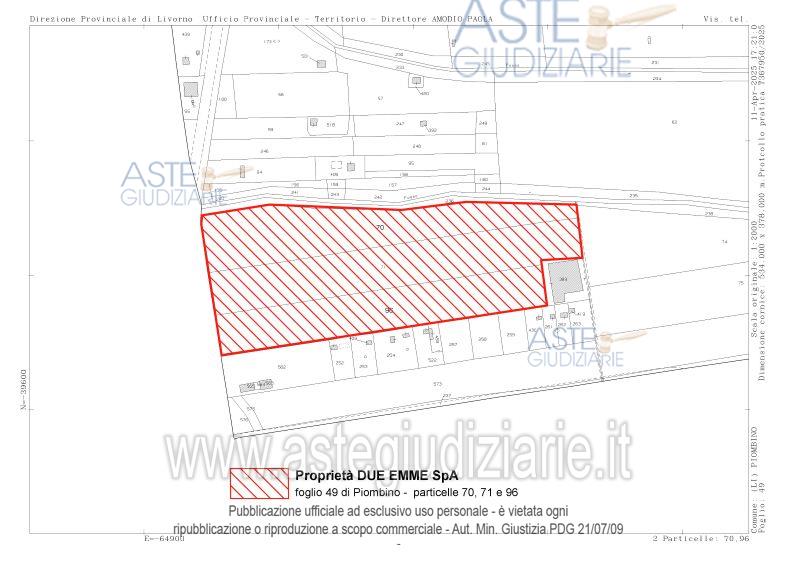 Vendita all'asta Senza incanto, con gara telematica asincrona - LOTTO UNICO: Appezzamento di terreno (a potenzialità edificatoria) con una superficie catastale complessivapari a mq 24.166. Prezzo base € 610.000,00 (offerta minima € 457.500,00). Data inizio operazioni di vendita: 09/06/2026 ore 12:00. Giudice Franco Pastorelli. Custode Giudiziario Dott. Fabio Serini - Email "f.serini@studioserini.com"; Tel. 0565827092. Curatore Dott. Fabio Serini. Rif. Tribunale di Livorno - Fallimentare (nuovo rito) n. 44/2019