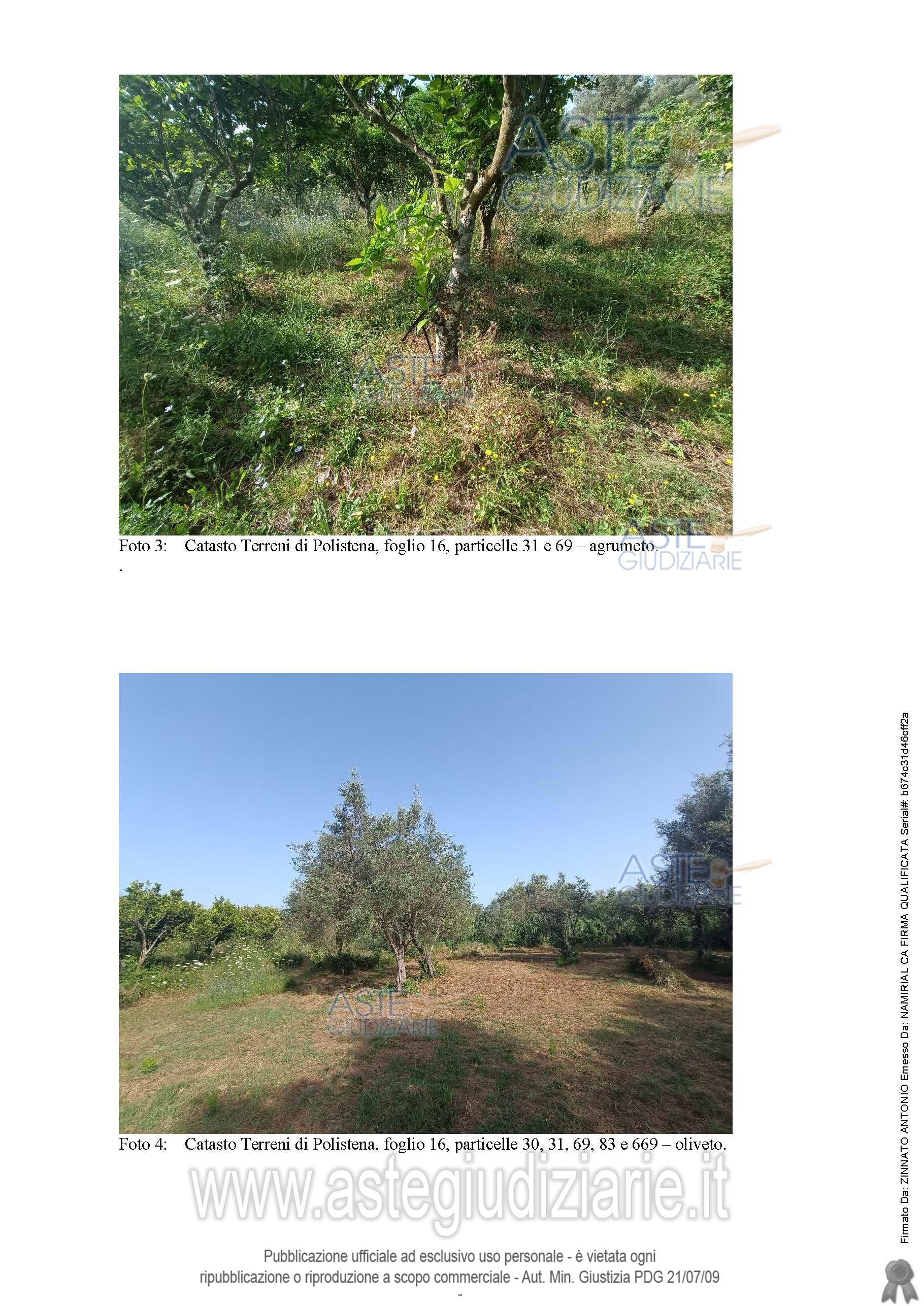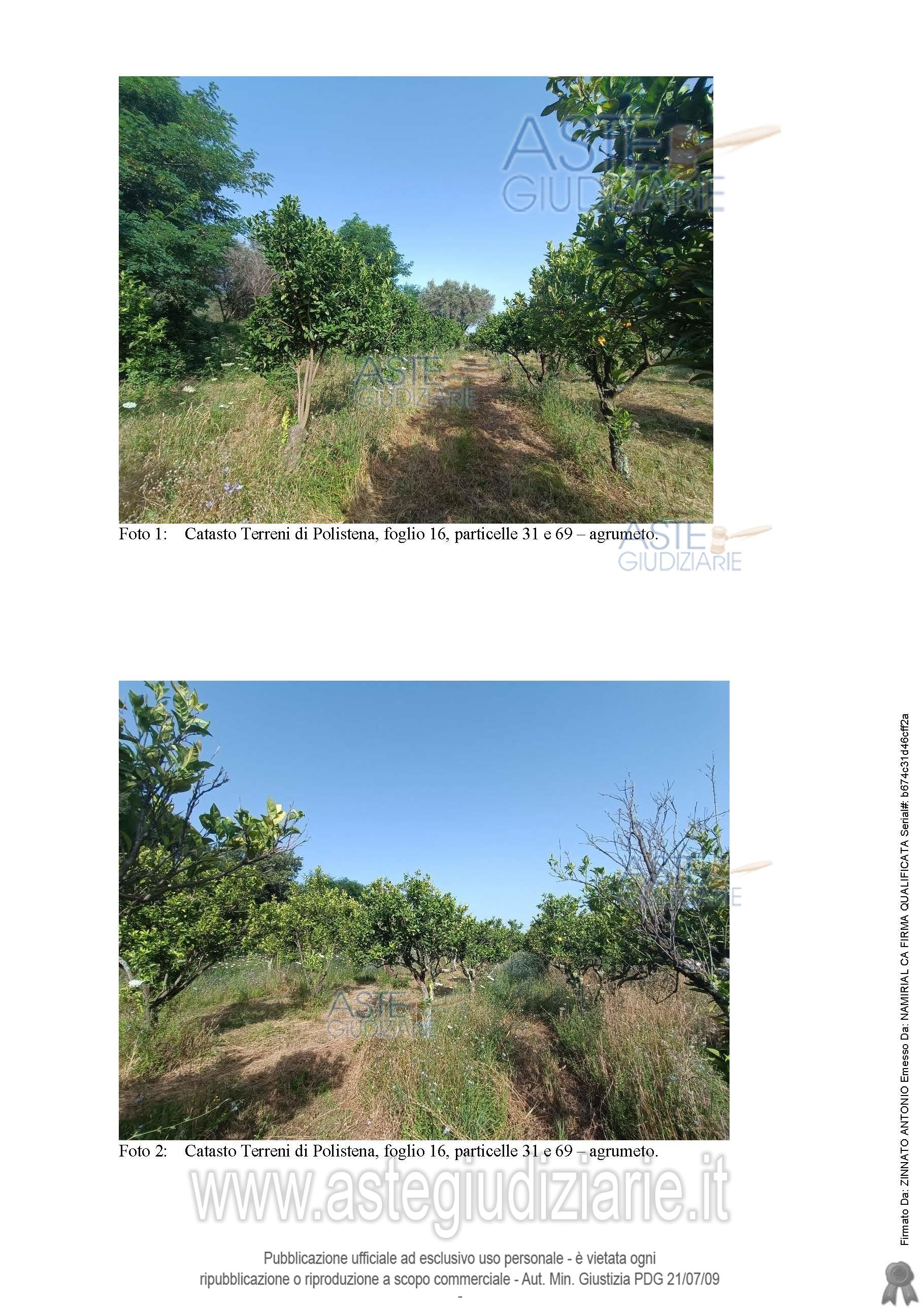 Vendita all'asta Senza incanto, con gara telematica asincrona - LOTTO 1: diritti pari alla piena proprietà dell’intero su un fondo rustico di ettari 2.78.70, coltivato in parte ad olivo ed in parte ad agrumi, identificato nel Catasto Terreni al foglio 16 con le particelle 30, 31 69 e 83 e nel Catasto Fabbricati al foglio 16 con la particella 669. Prezzo base € 72.250,00 (offerta minima € 54.187,50). Data inizio operazioni di vendita: 29/05/2026 ore 10:00. Giudice Dott. Alessandra Piccione. Professionista delegato alla vendita Avv. Marianna Schiavone - Email "mariannaschiavone@libero.it"; Tel. 3337592856. Custode Giudiziario Avv. Marianna Schiavone - Email "mariannaschiavone@libero.it"; Tel. 3337592856. Rif. Tribunale di Palmi - Esecuzione immobiliare post legge 80 n. 4/2023
