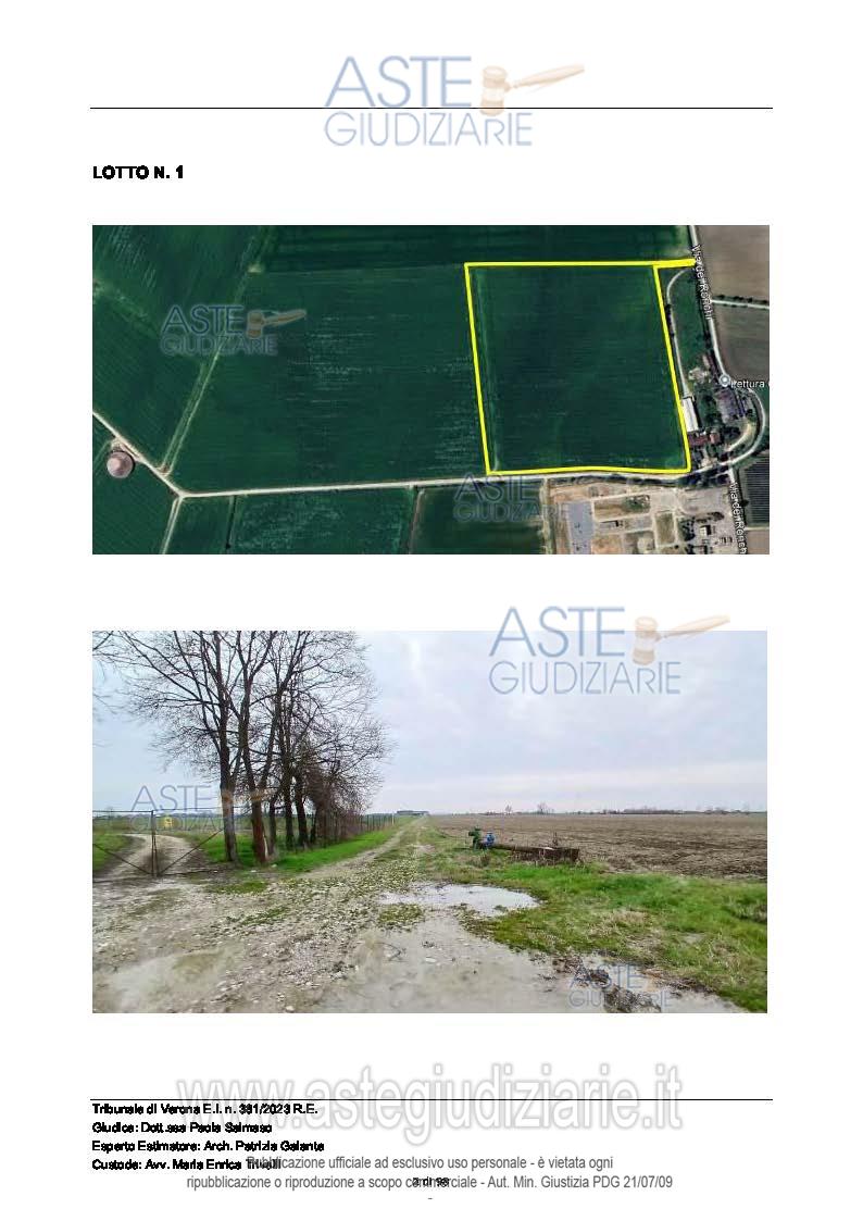 Vendita all'asta Senza incanto, con gara telematica sincrona mista - LOTTO 1: In Comune di Povegliano Veronese (VR) , Località Ronchi, piena proprietà di fondo rustico della superficie catastale complessiva pari a 63.157 mq. Prezzo base € 237.000,00 (offerta minima € 177.750,00). Data vendita 04/02/2026 ore 14:30. Giudice Dott. Paola Salmaso. Professionista delegato alla vendita Not. Giovanni Calvelli - Email "segreteria@notaiveronesiassociati.it"; Tel. 0458530137. Custode Giudiziario Avv. Maria Enrica Trivelli - Email "mariaenrica.trivelli@gmail.com"; Tel. 045592599. Rif. Tribunale di Verona - Espropriazione immobiliare (cartabia) n. 381/2023