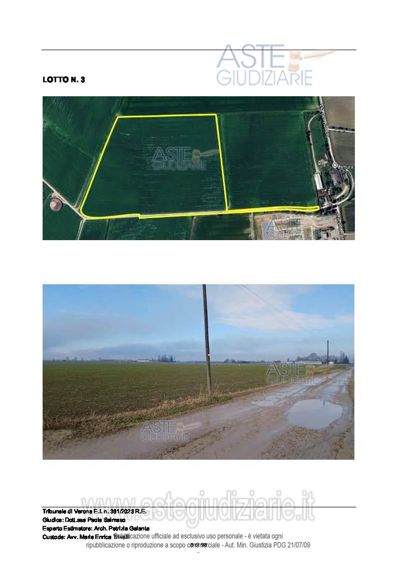 Vendita all'asta Senza incanto, con gara telematica sincrona mista - LOTTO 3: In Comune di Povegliano Veronese (VR) , Località Ronchi, piena proprietà di fondo rustico della superficie catastale complessiva pari a 99.758 mq. Prezzo base € 347.000,00 (offerta minima € 260.250,00). Data vendita 04/02/2026 ore 14:30. Giudice Dott. Paola Salmaso. Professionista delegato alla vendita Not. Giovanni Calvelli - Email "segreteria@notaiveronesiassociati.it"; Tel. 0458530137. Custode Giudiziario Avv. Maria Enrica Trivelli - Email "mariaenrica.trivelli@gmail.com"; Tel. 045592599. Rif. Tribunale di Verona - Espropriazione immobiliare (cartabia) n. 381/2023